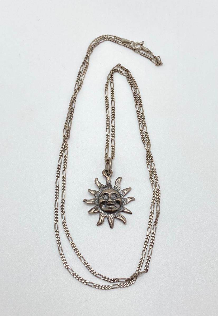 LOT 101: Sterling Sun Pendant Necklace - 30"