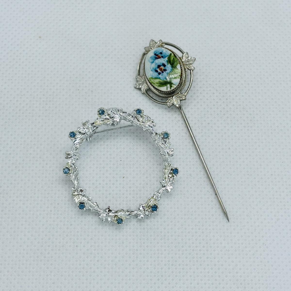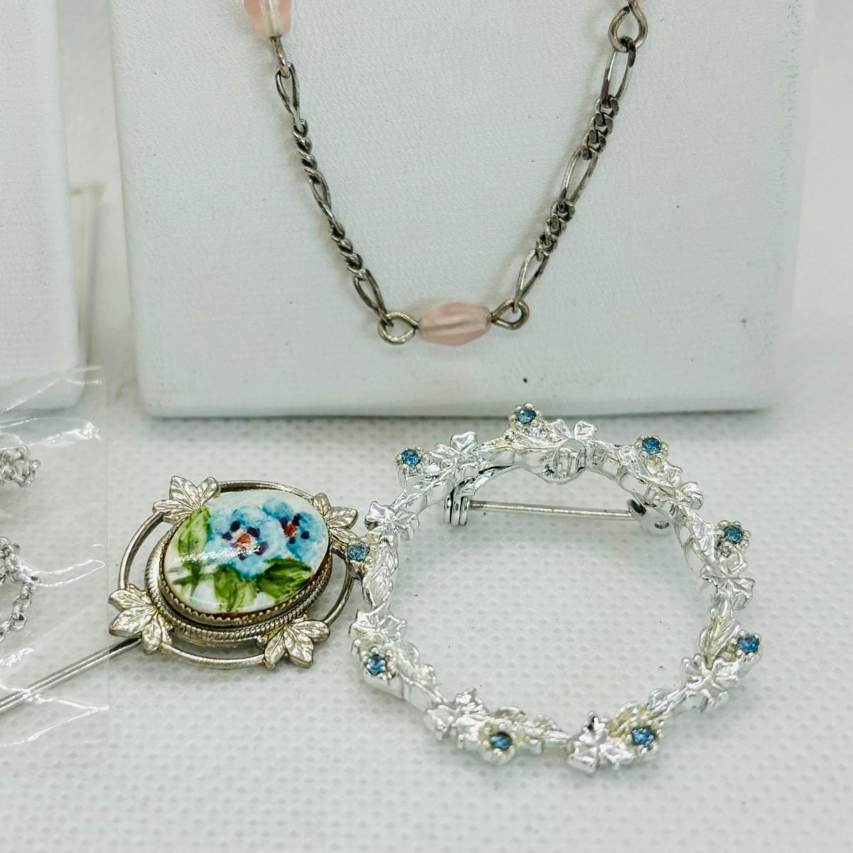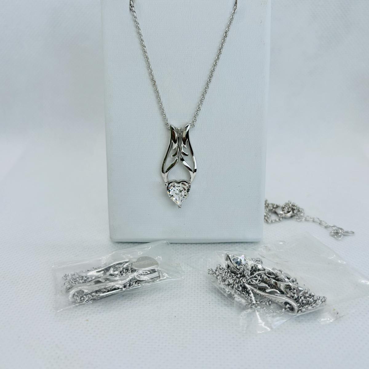 LOT 113: Silver Tone Collection Rhinestone Heart Necklace, Brooch, Stick Pin &n More