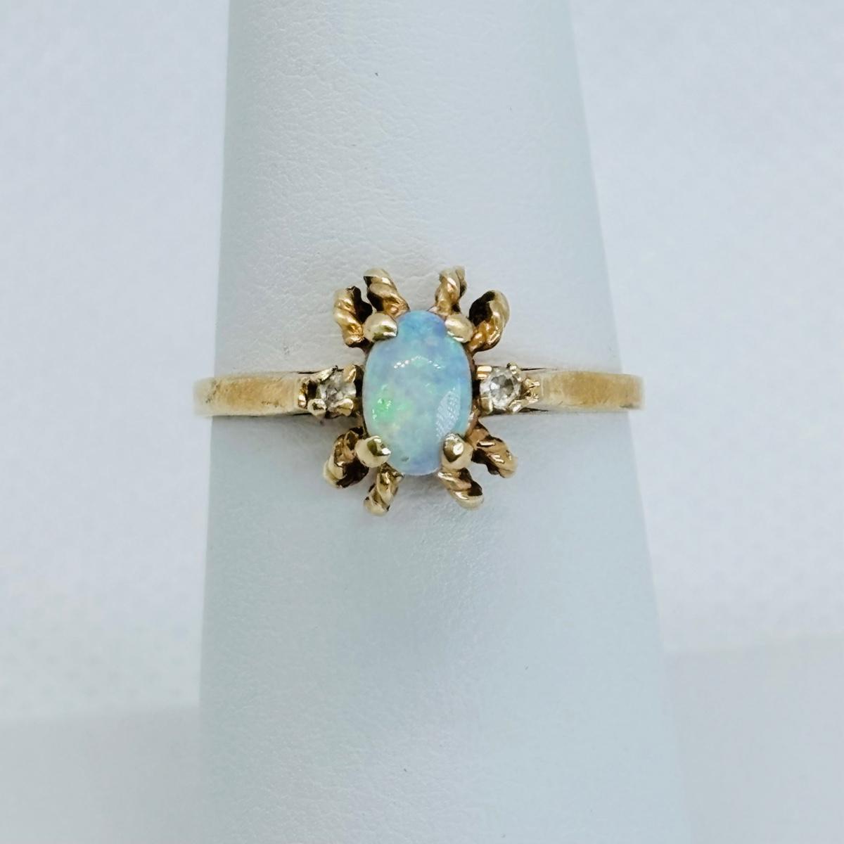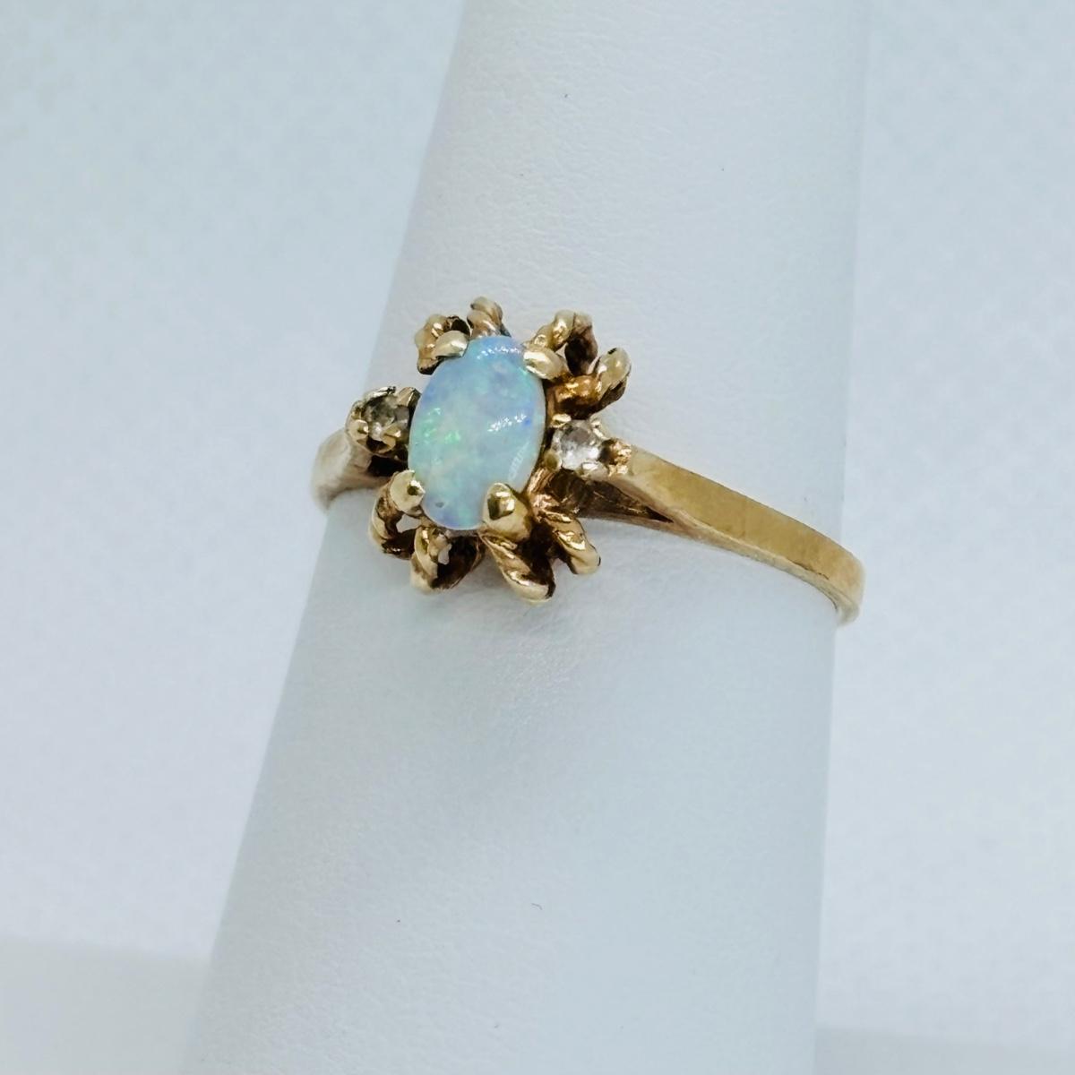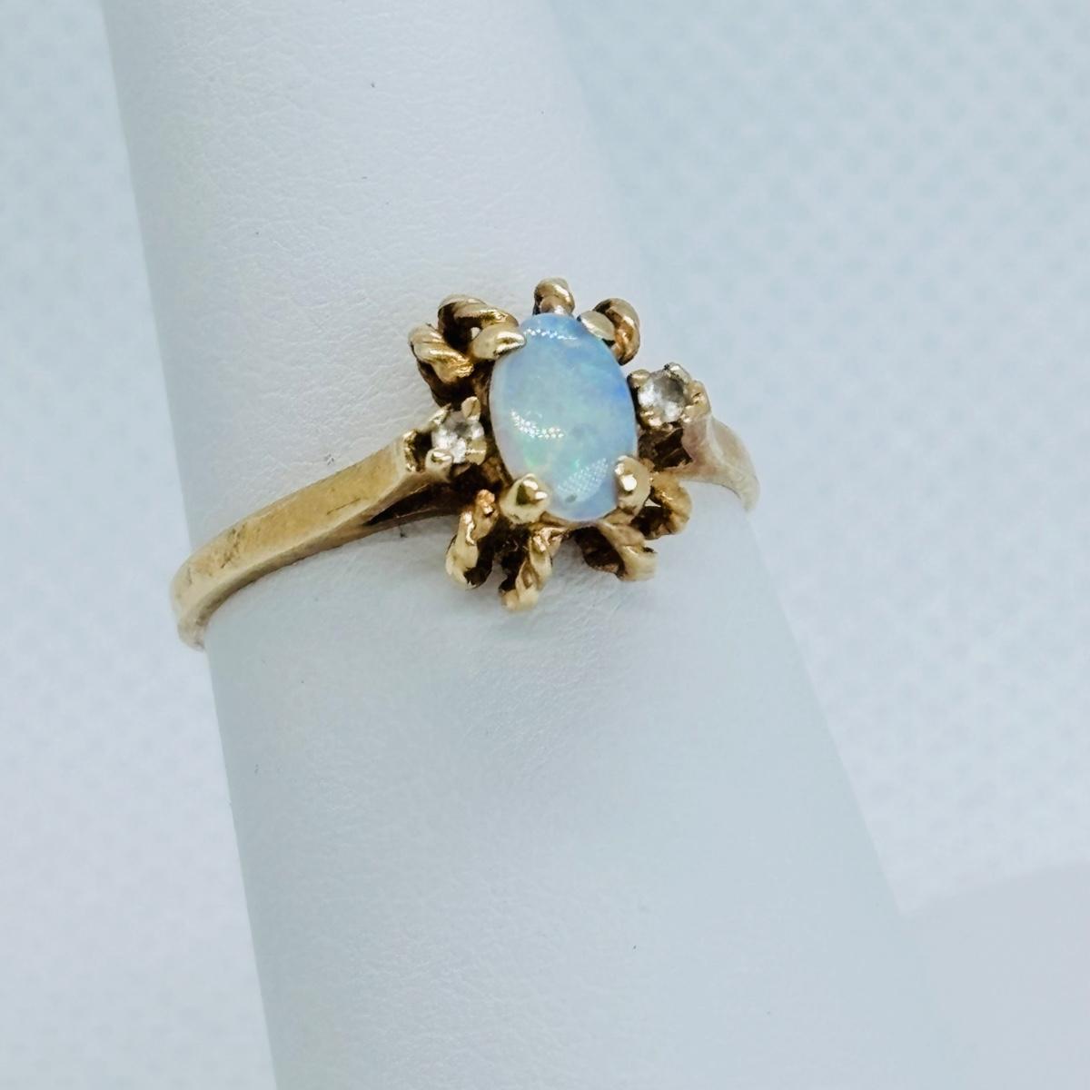 LOT 116: Opal w/Diamond Chips Ring, 10K, Tw 2g, sz. 6