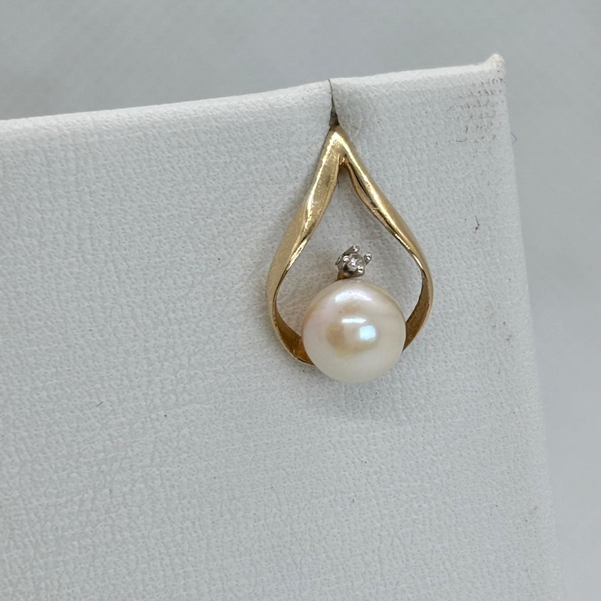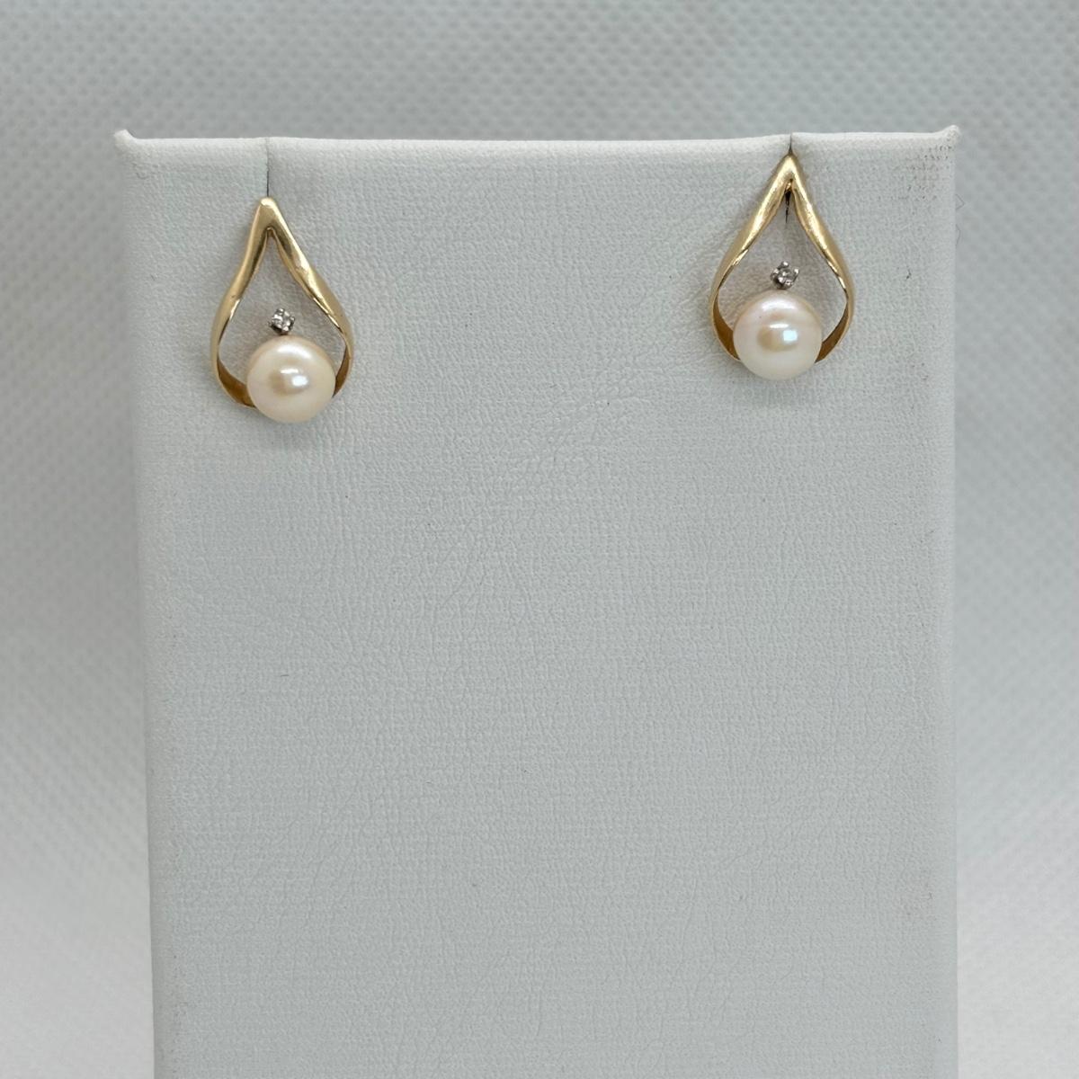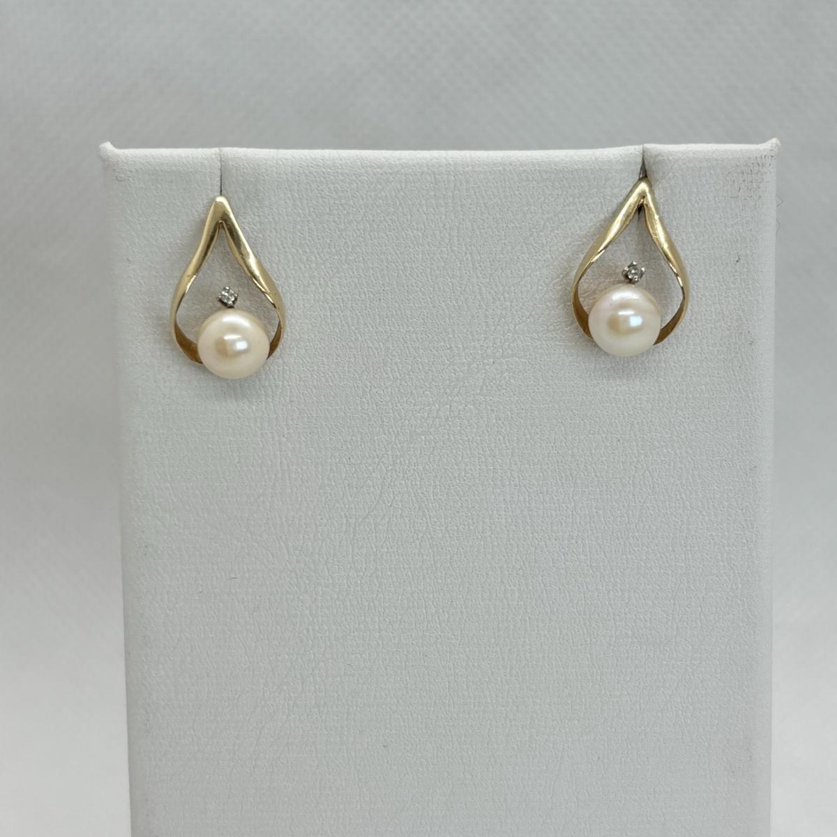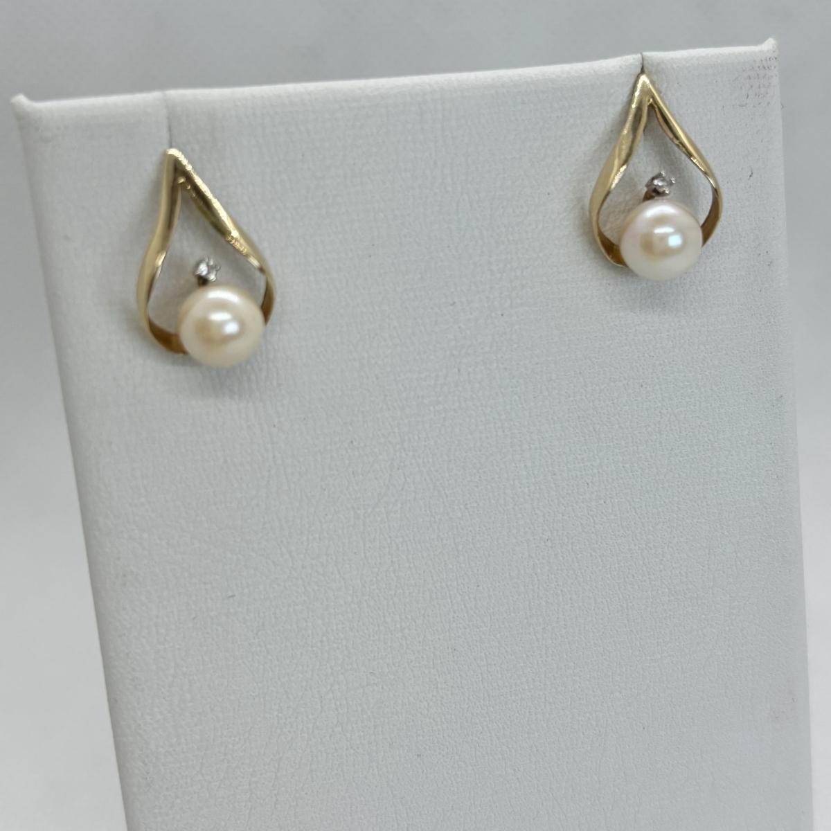 LOT 121: Cultured Pearl & Diamond Pierced Earrings, 14K, Tw 2.0g