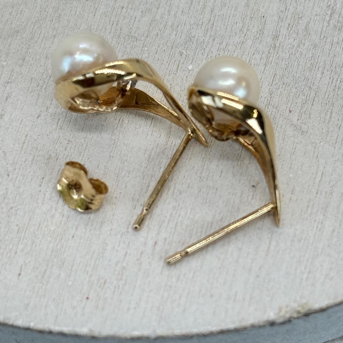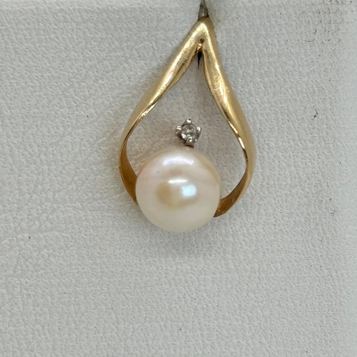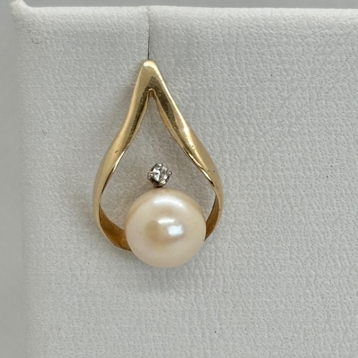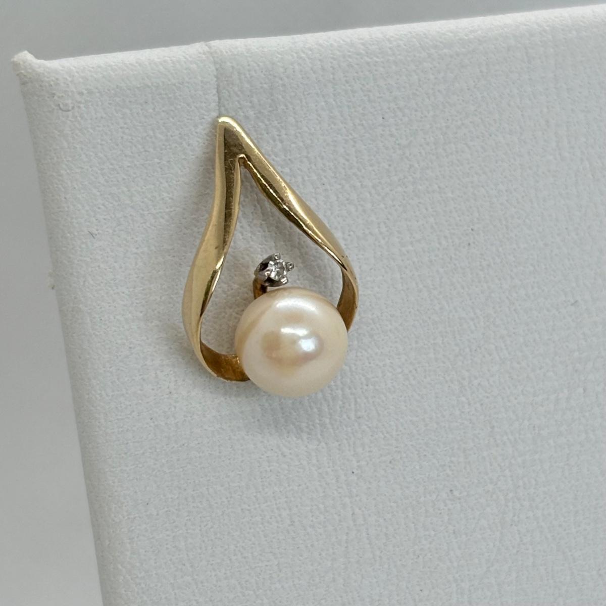 LOT 121: Cultured Pearl & Diamond Pierced Earrings, 14K, Tw 2.0g
