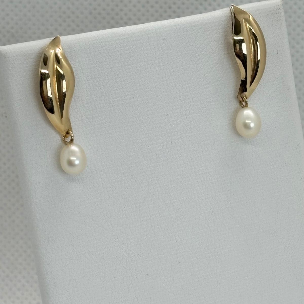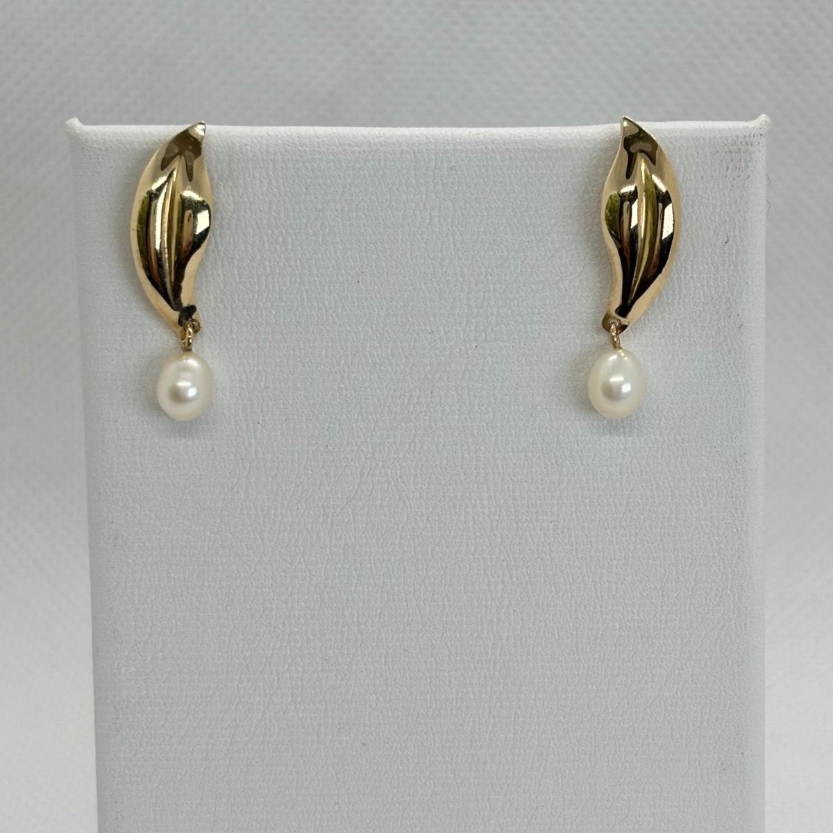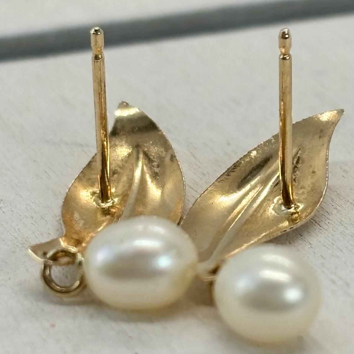 LOT 122: Cultured Pearl & 14K Gold Pierced Earrings, Tw.1.4g