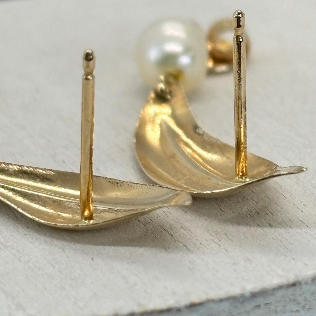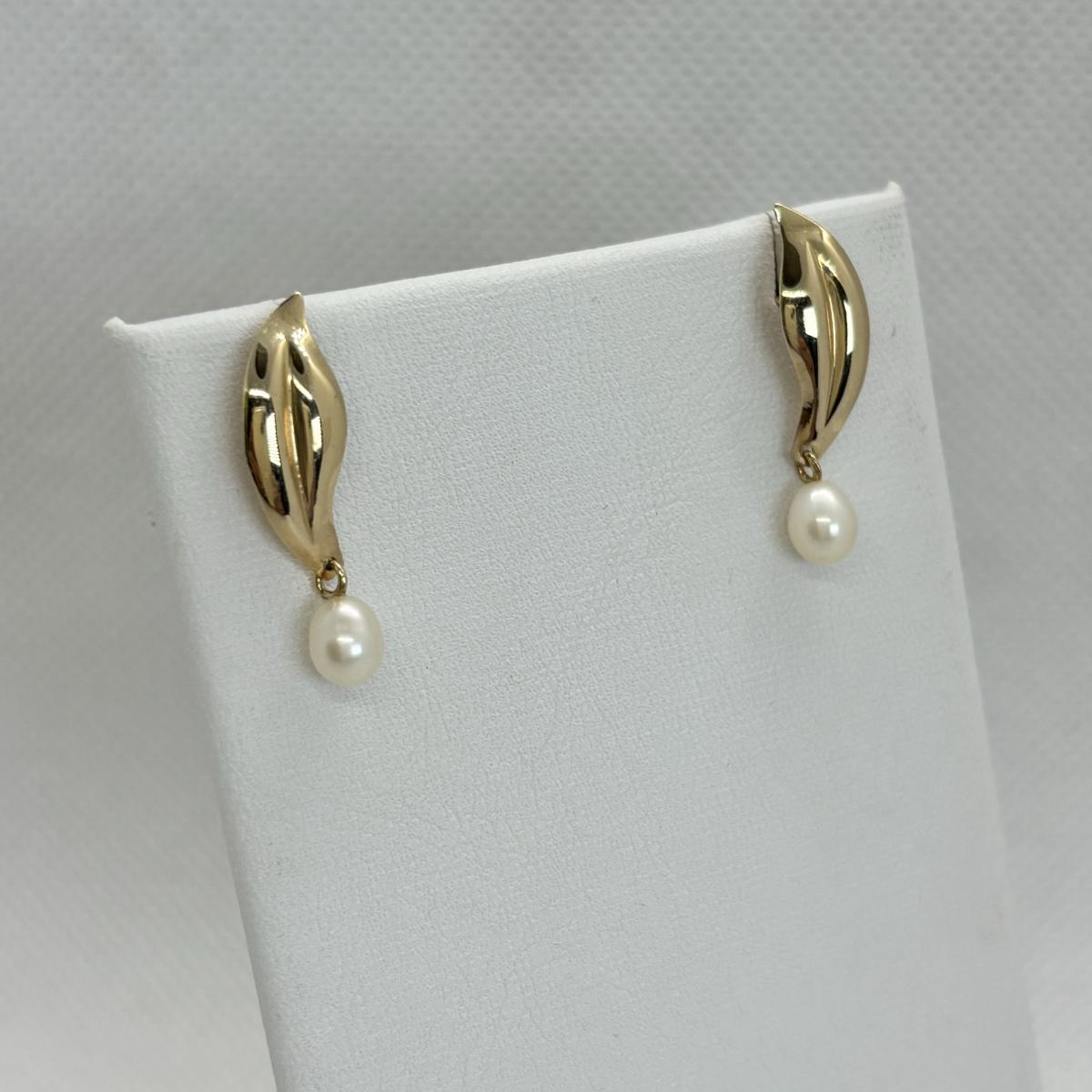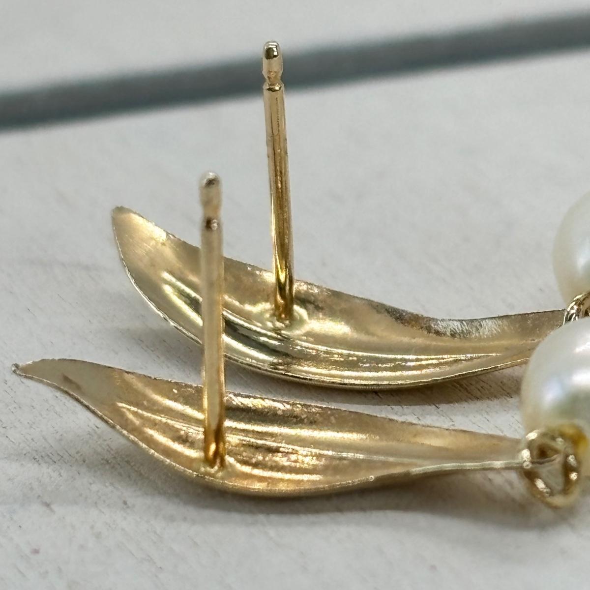 LOT 122: Cultured Pearl & 14K Gold Pierced Earrings, Tw.1.4g