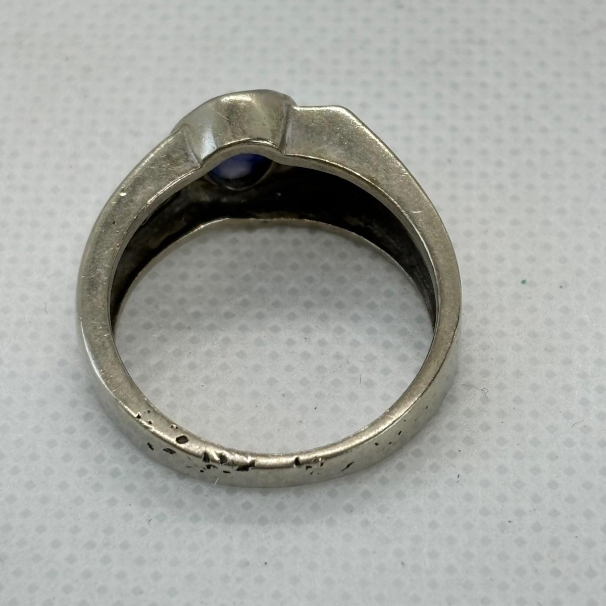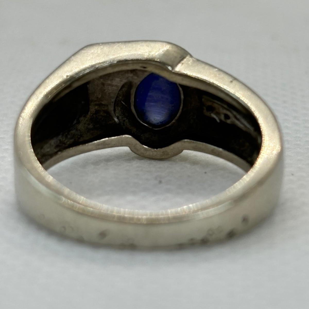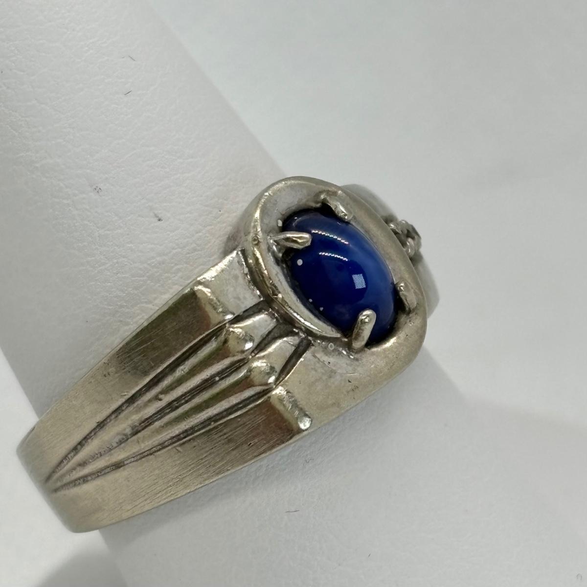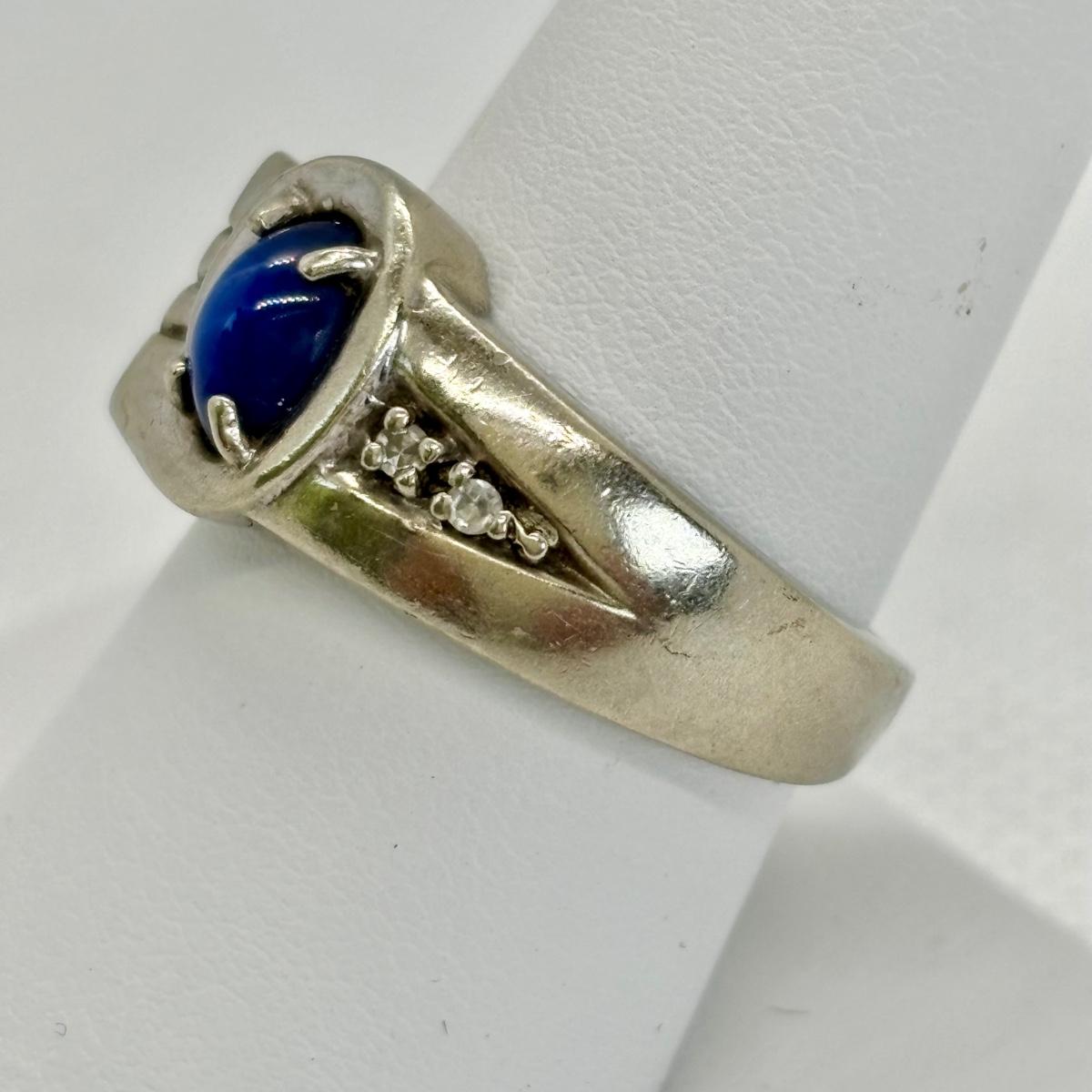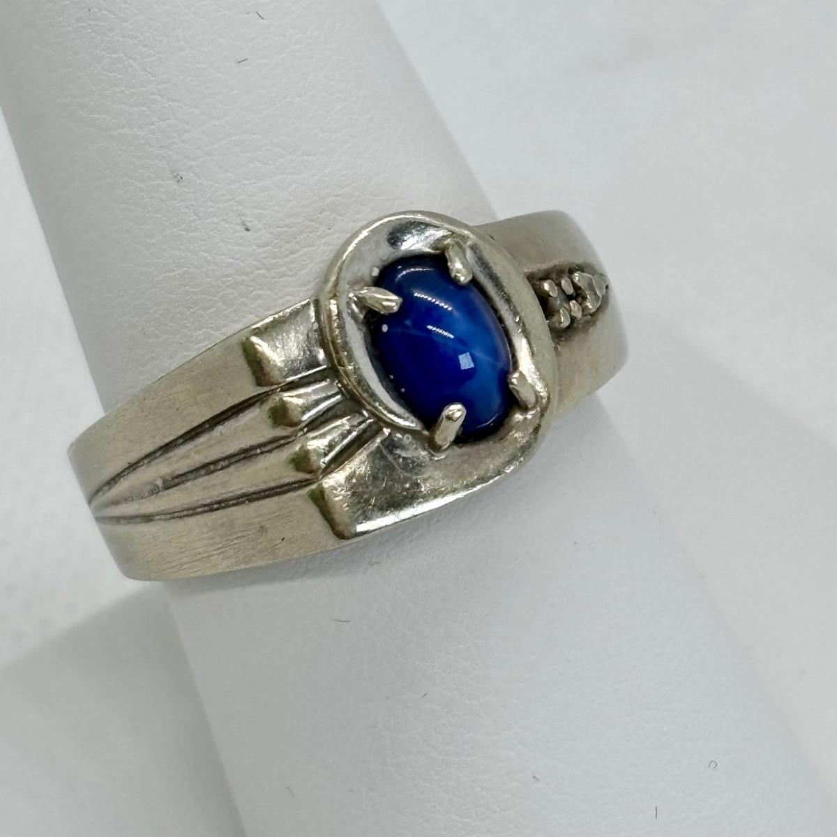 LOT 123: White Gold Blue Star Sapphire Ring w/Diamond Chip Accents, 10K, Tw 6.7g, sz.8.5