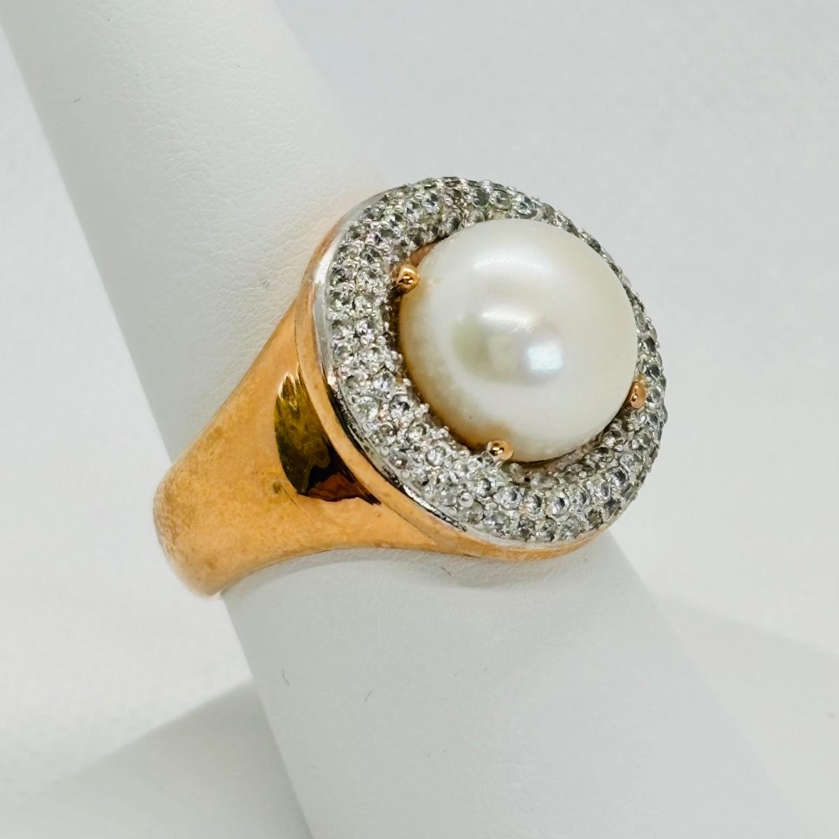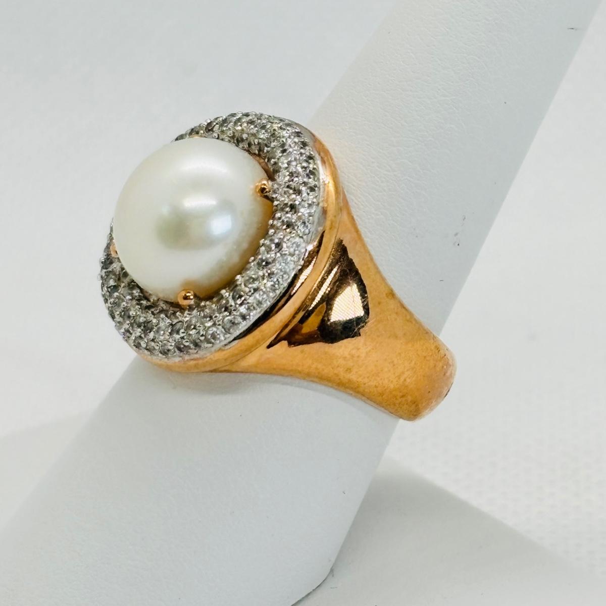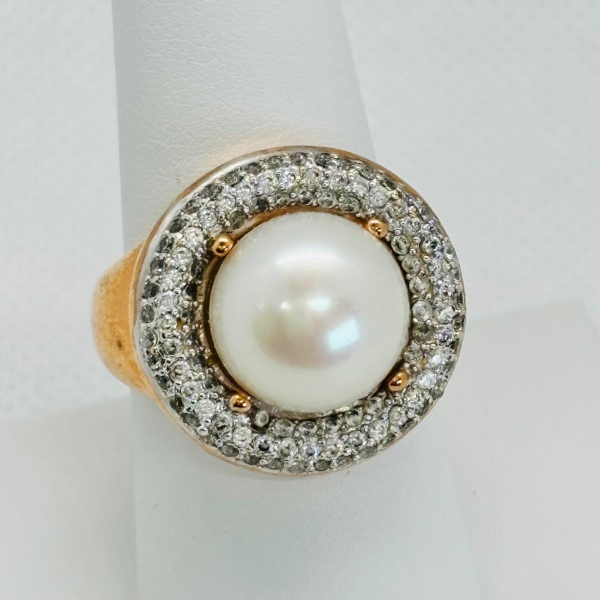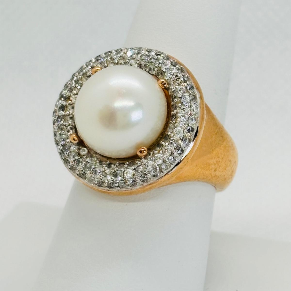 LOT 125: Honora (Italy) Bronze Pearl & CZ Ring sz.8