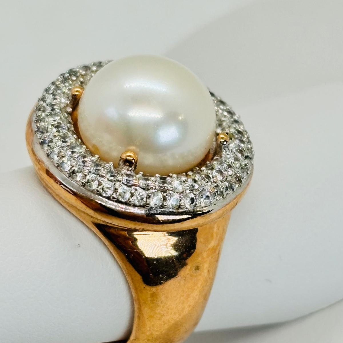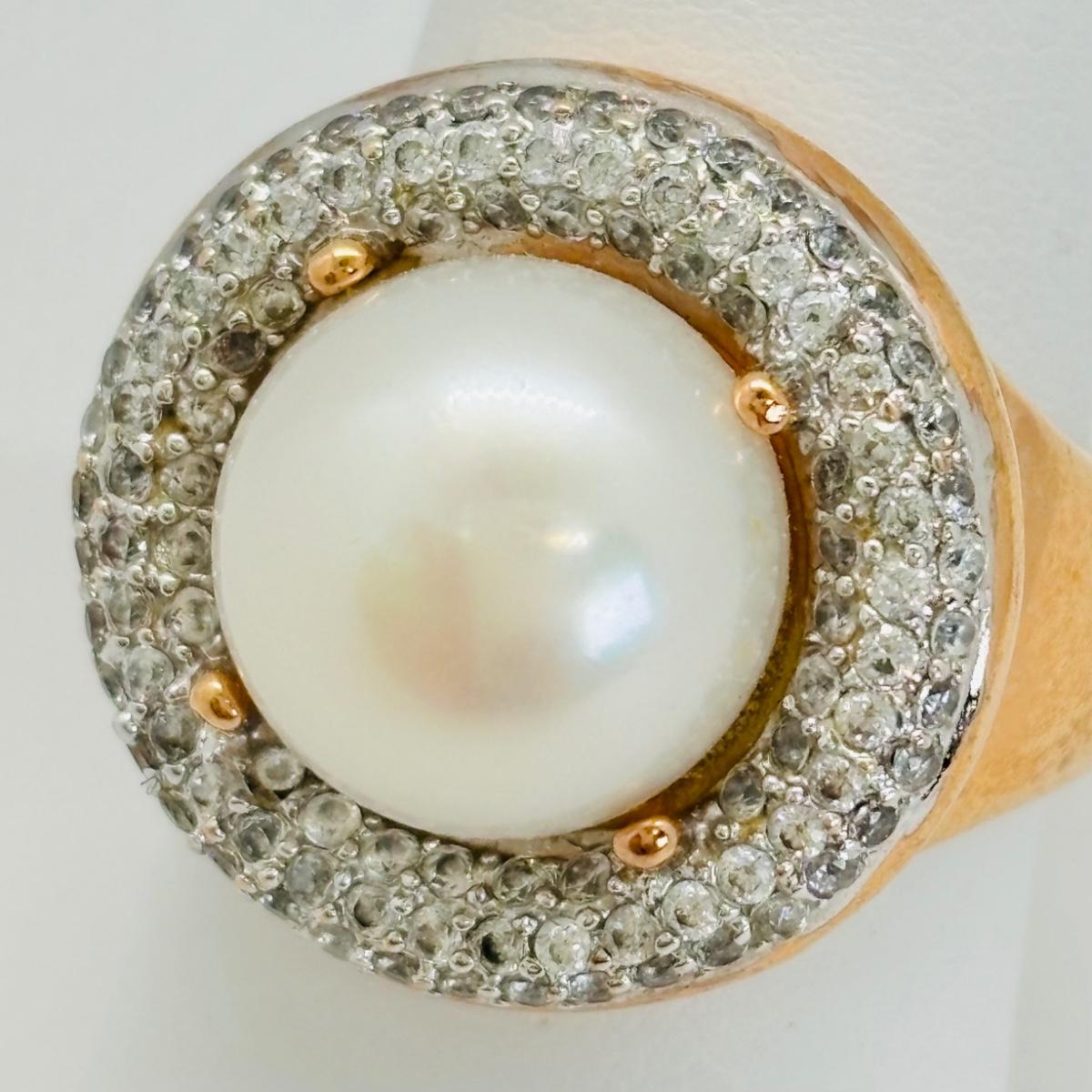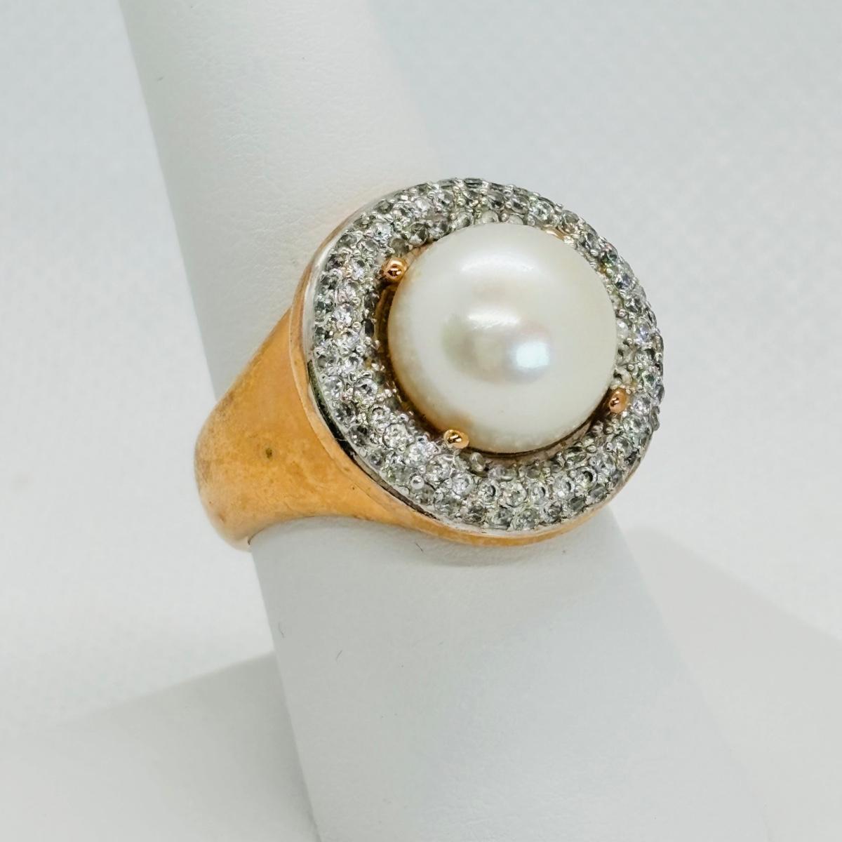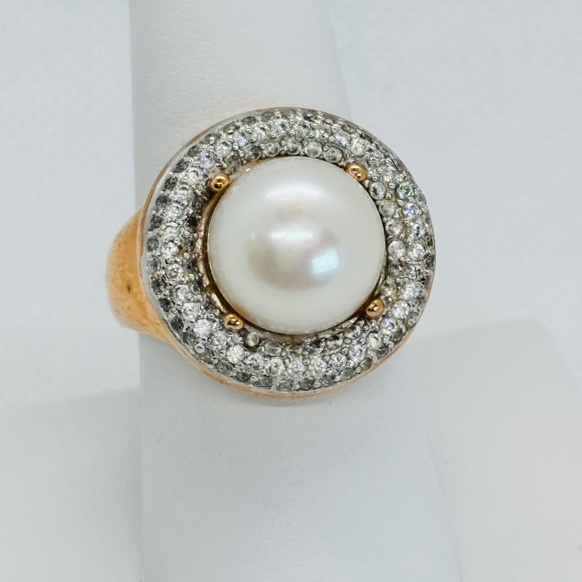 LOT 125: Honora (Italy) Bronze Pearl & CZ Ring sz.8