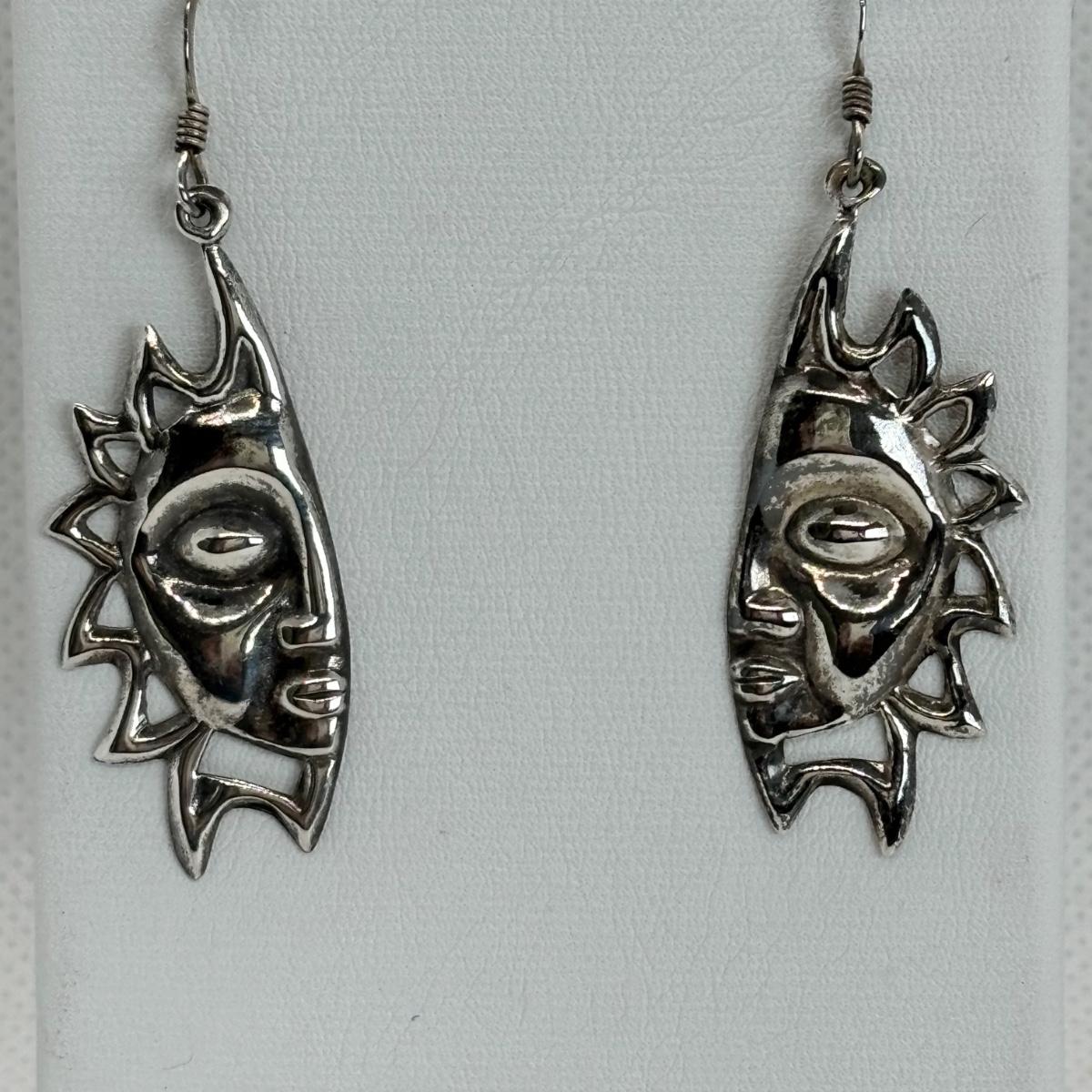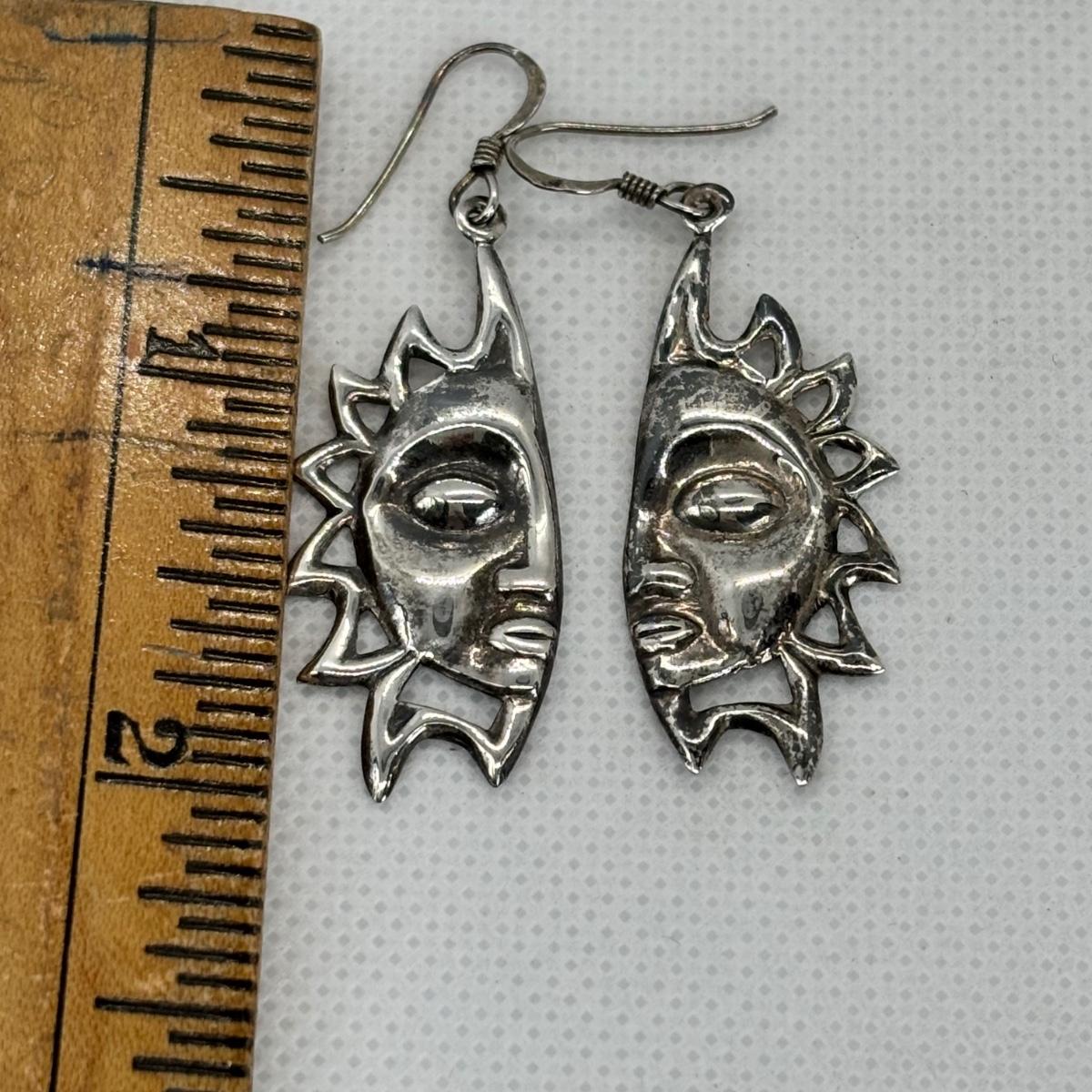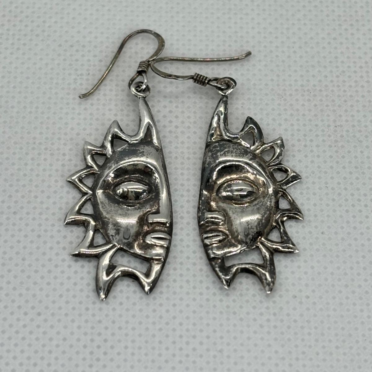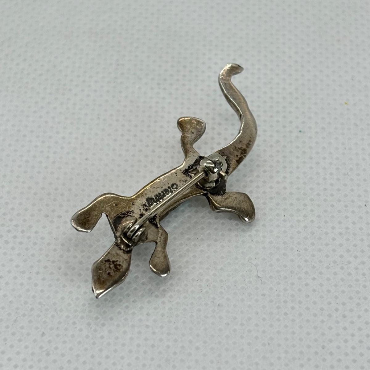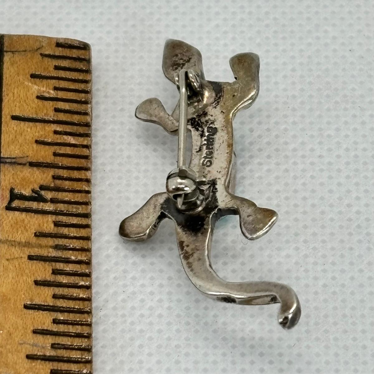 LOT 131: Vintage Sterling Silver & Multi Color Inlay Lizard/Iguana Brooch & 925 Sterling Silver Sun Pierced Earrings