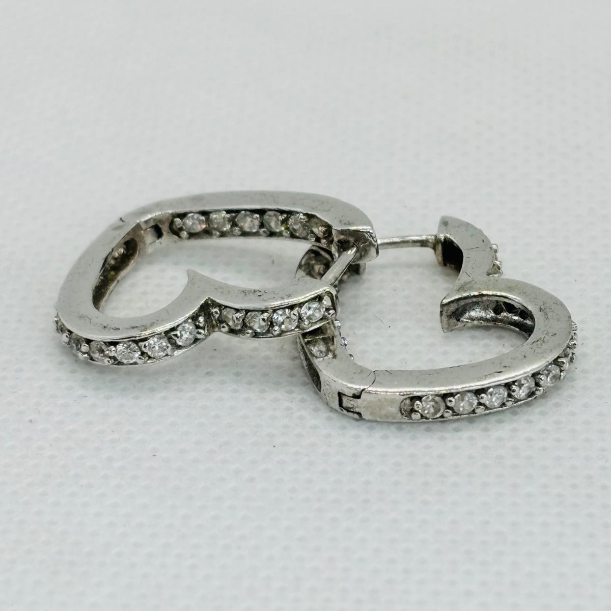 LOT 136: Sterling Silver (925) Channel Set Diamond Heart Shaped Earrings