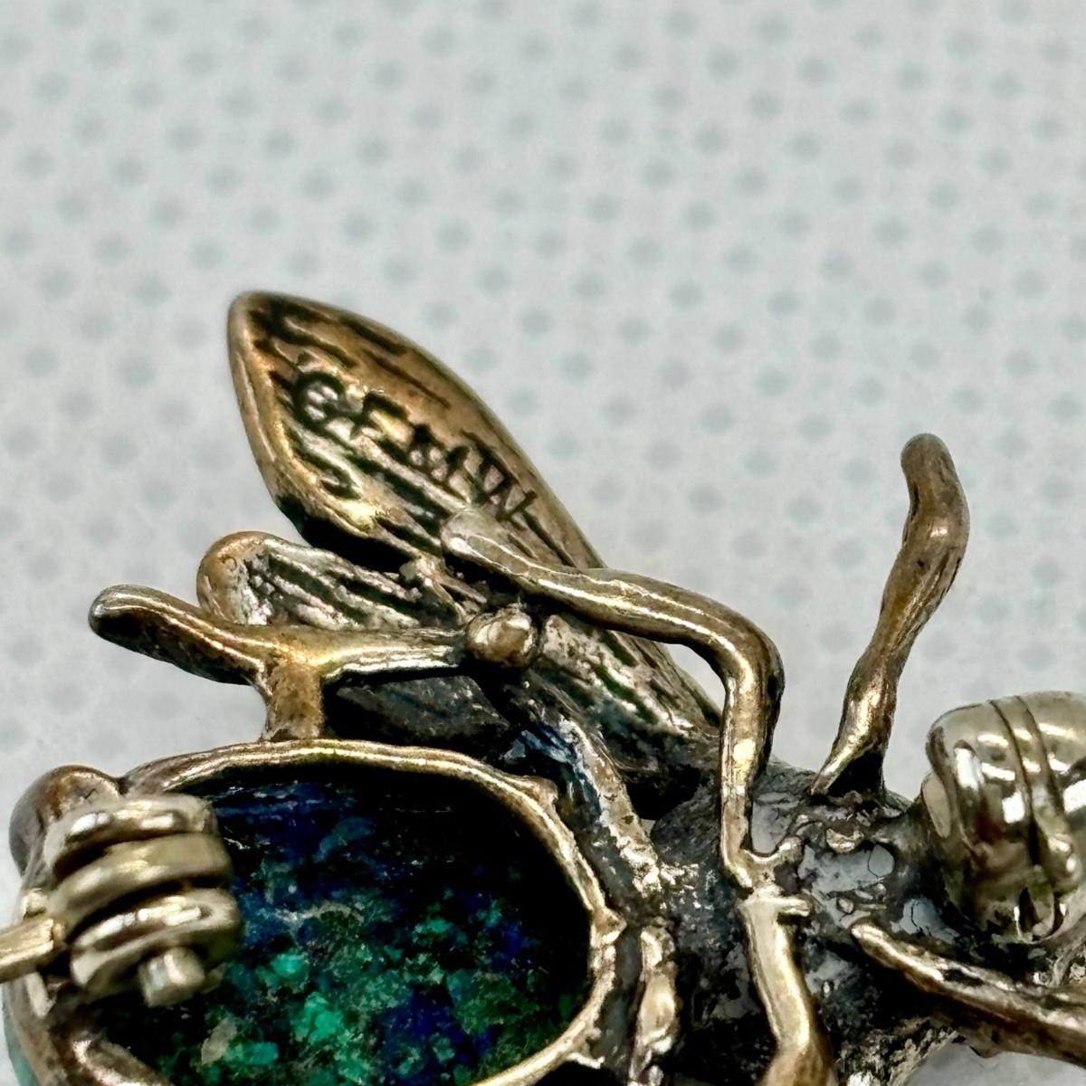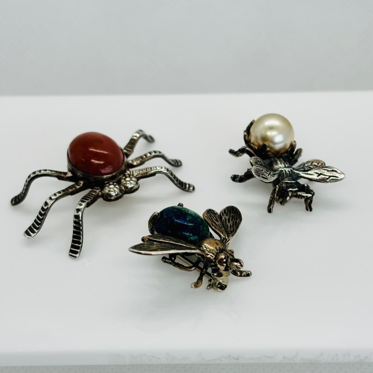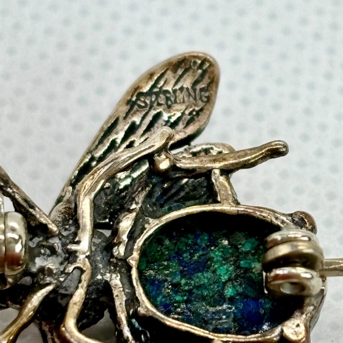 LOT 140: Sterling Insect Collection: Pearl Fly, Chrysocolla Fly & Banded Agate Spider - Tw17.1g