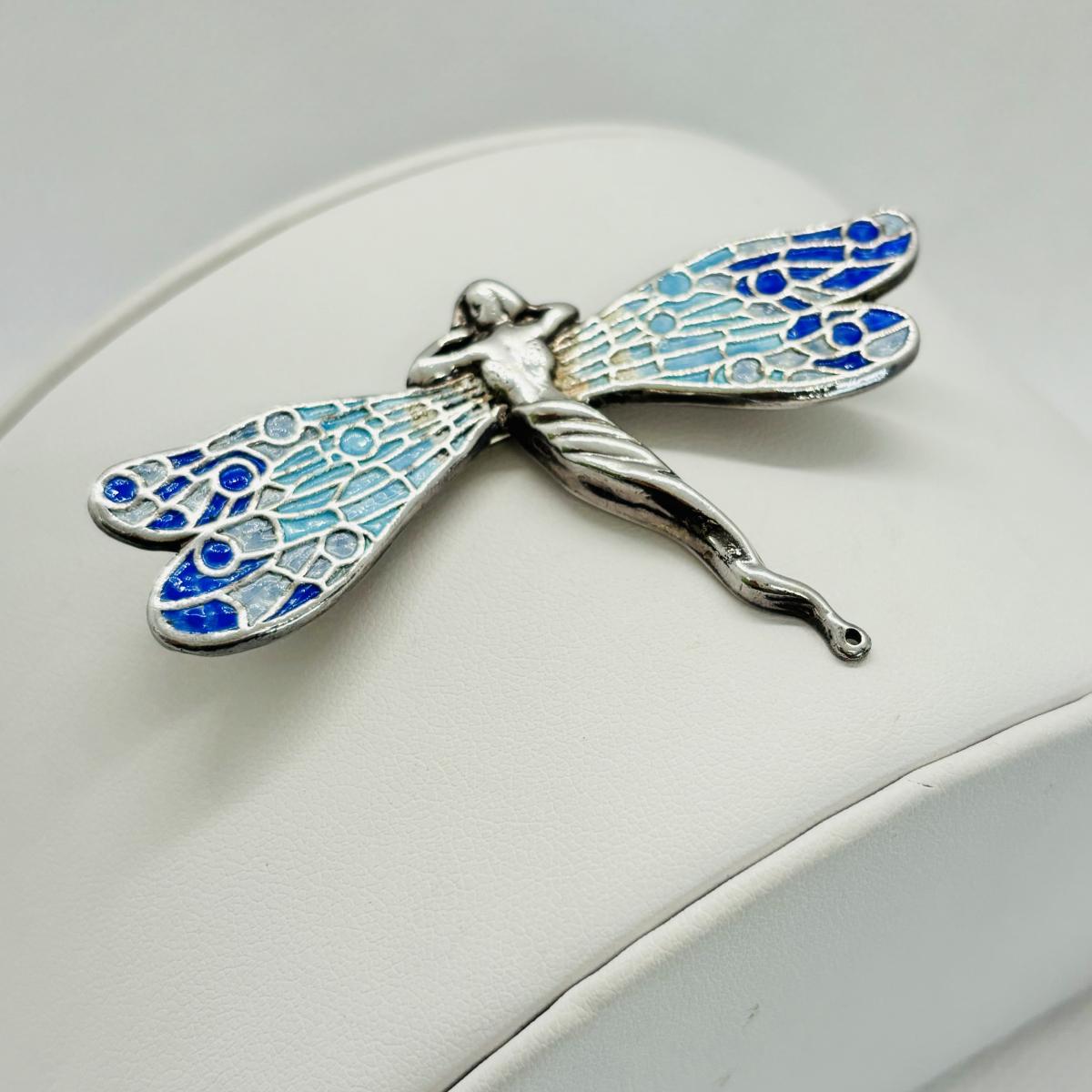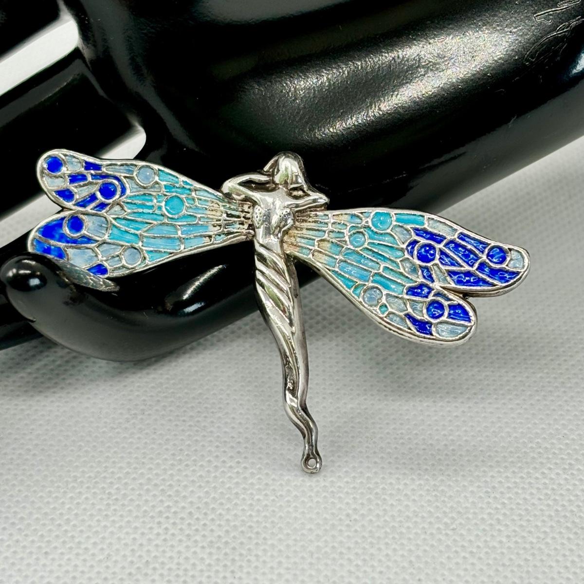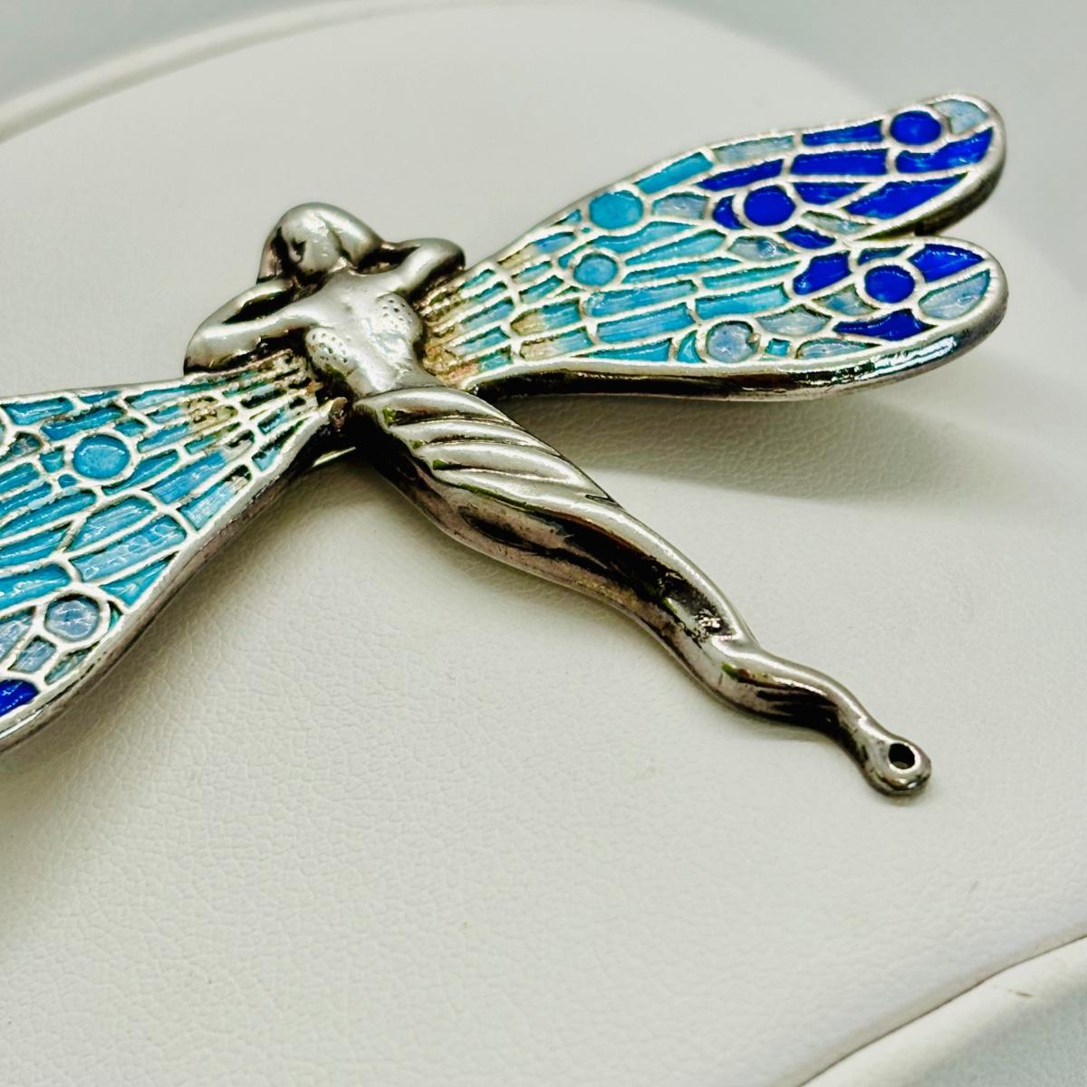 LOT 144: Big Beautiful Art Deco Sterling Silver (925) Enameled Dragon Fly Lady - Tw 14.5g