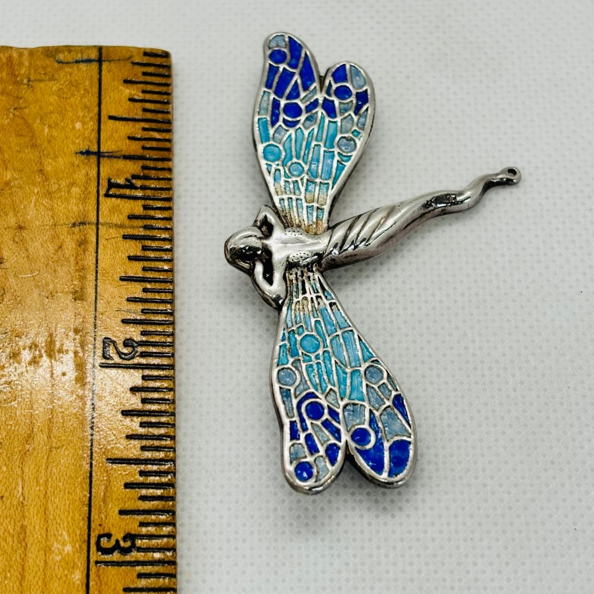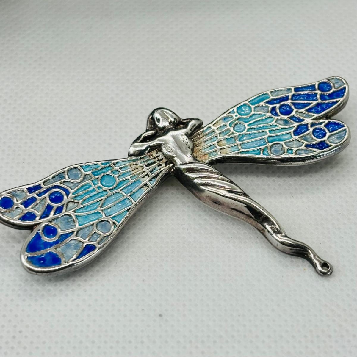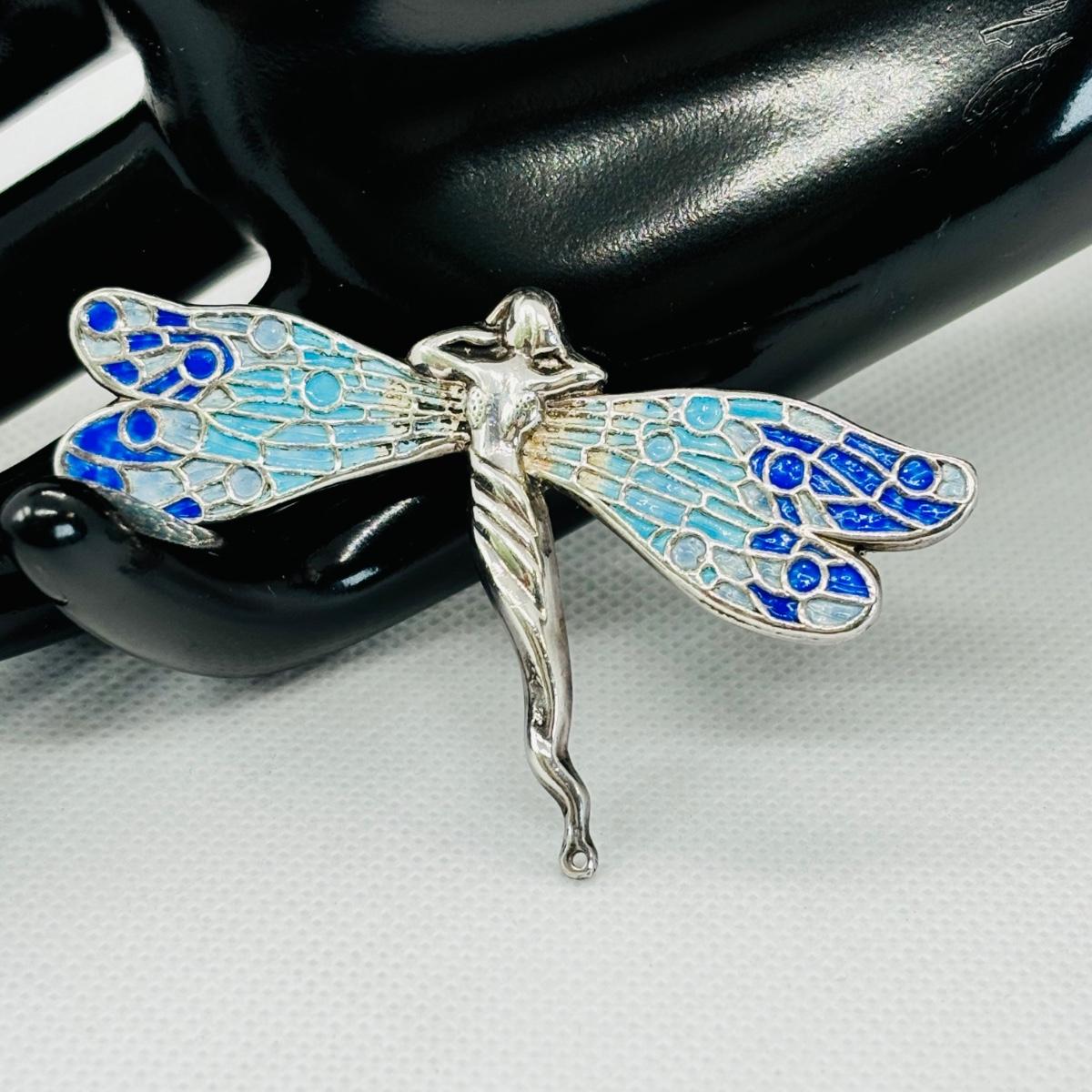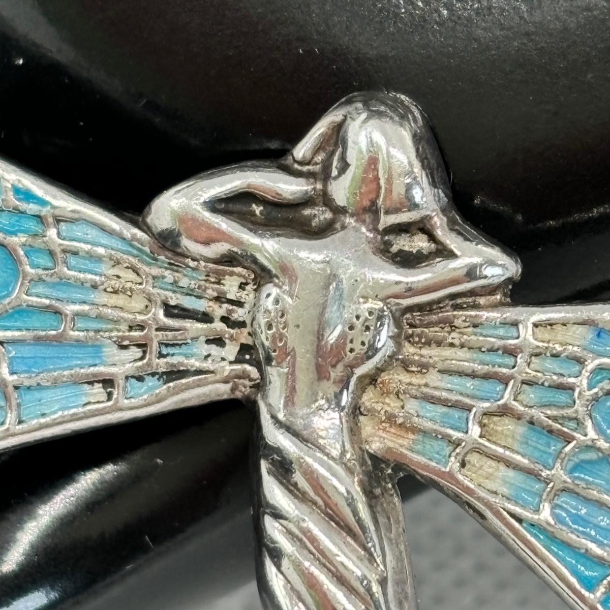 LOT 144: Big Beautiful Art Deco Sterling Silver (925) Enameled Dragon Fly Lady - Tw 14.5g