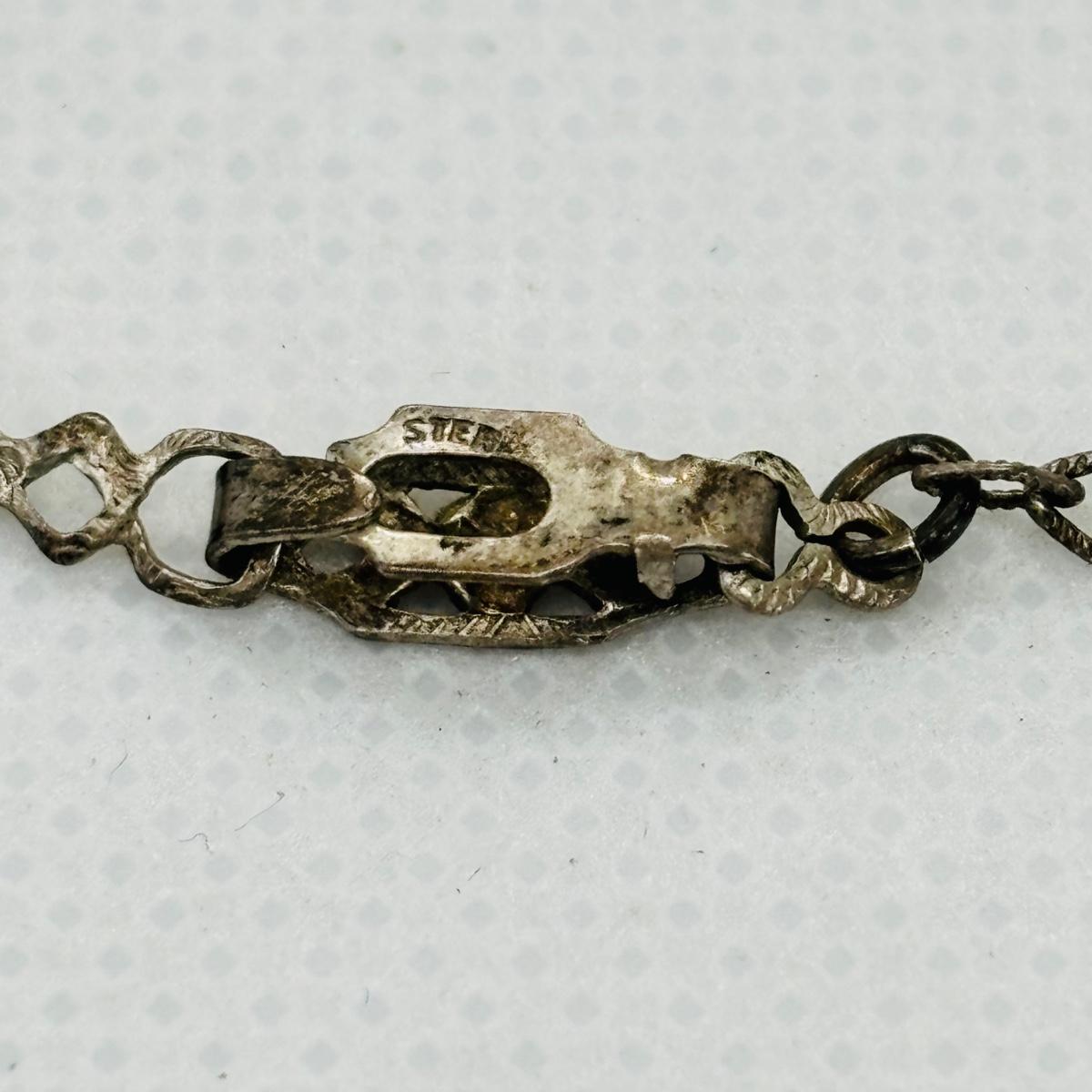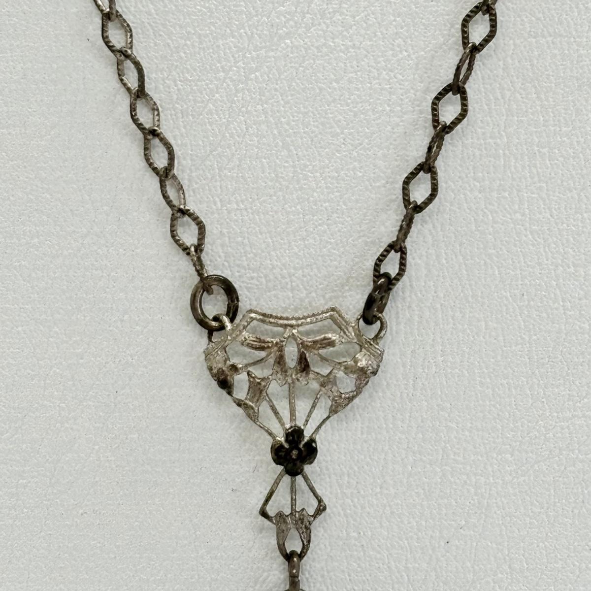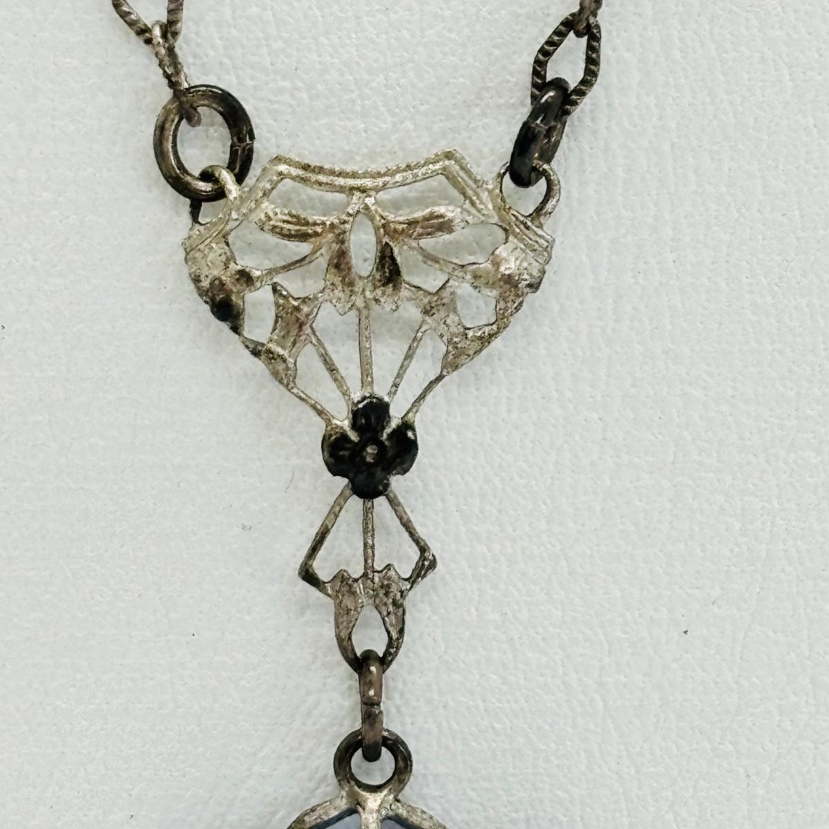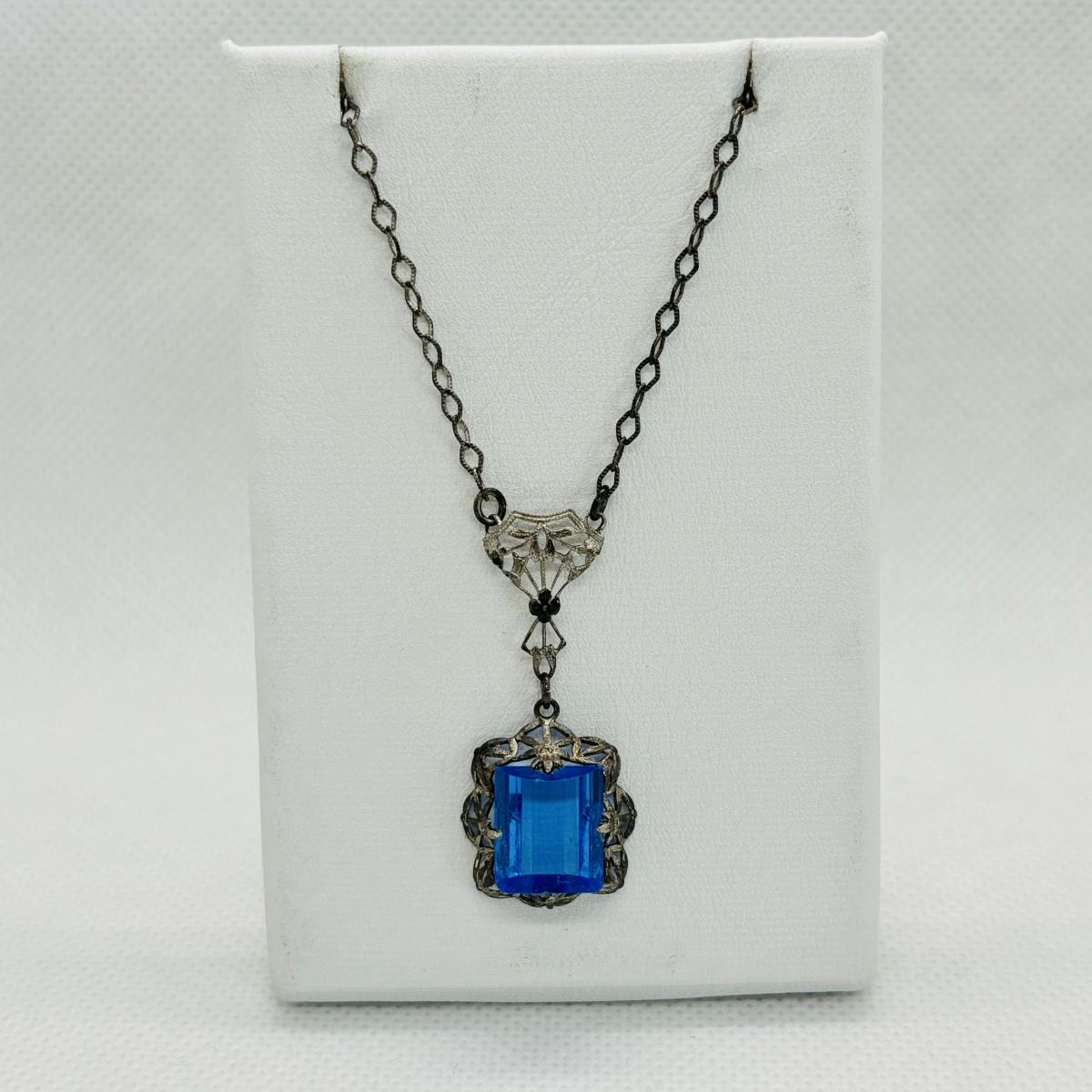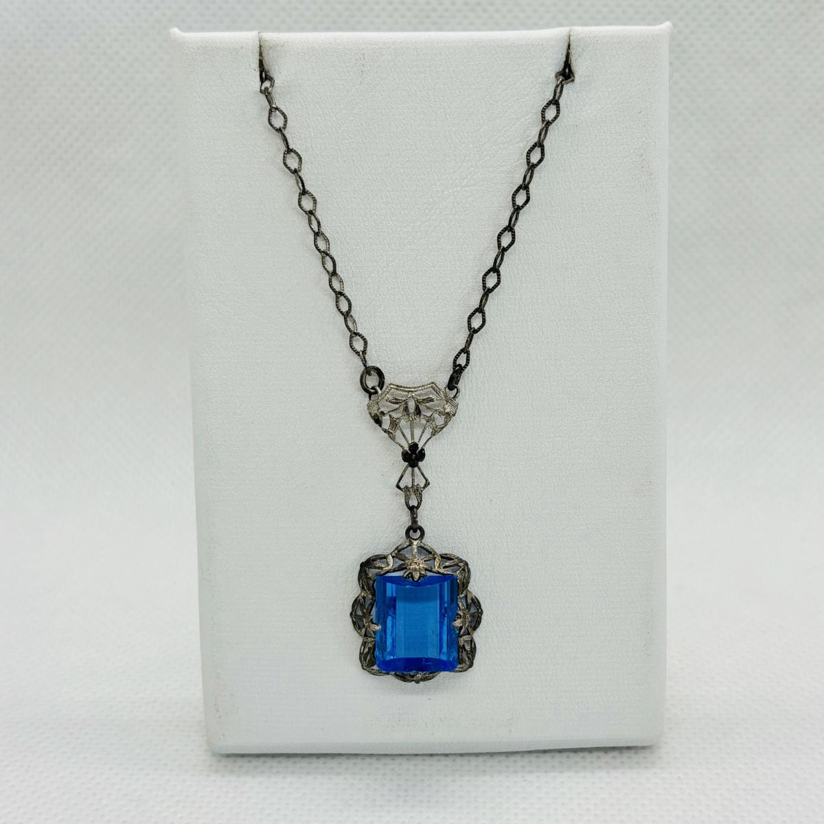 LOT 151: Delicate Art Nouveau Jugendstil Blue Faceted Czech Glass Lavaliere Necklace Marked STER - 15"L