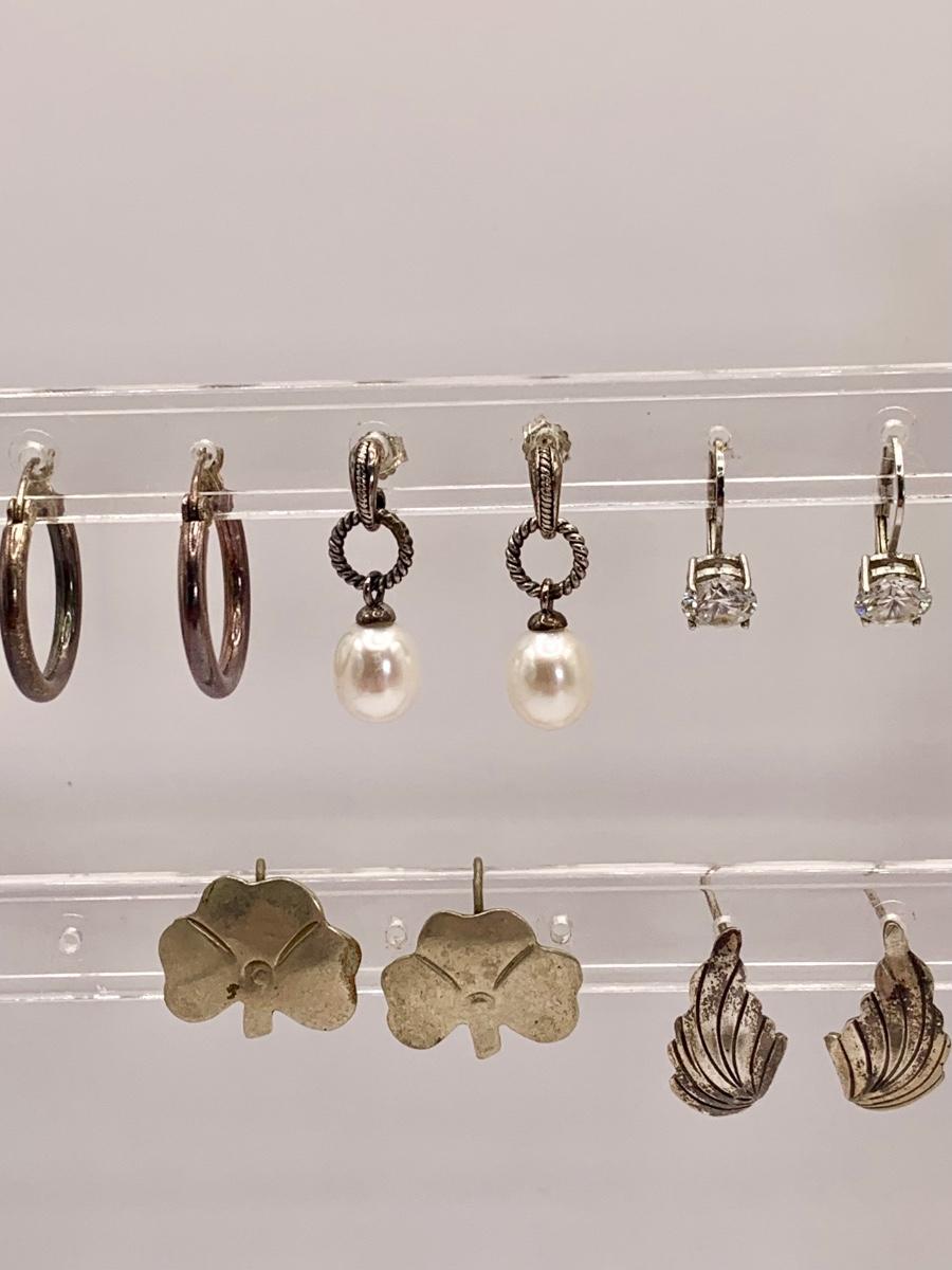 LOT:170: Silver 925 Earring Lot Incuding a Pair of Cultured Pearls and More