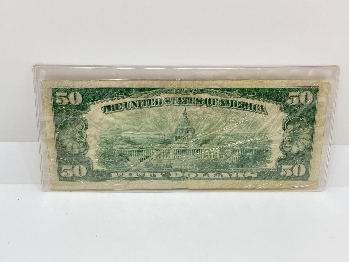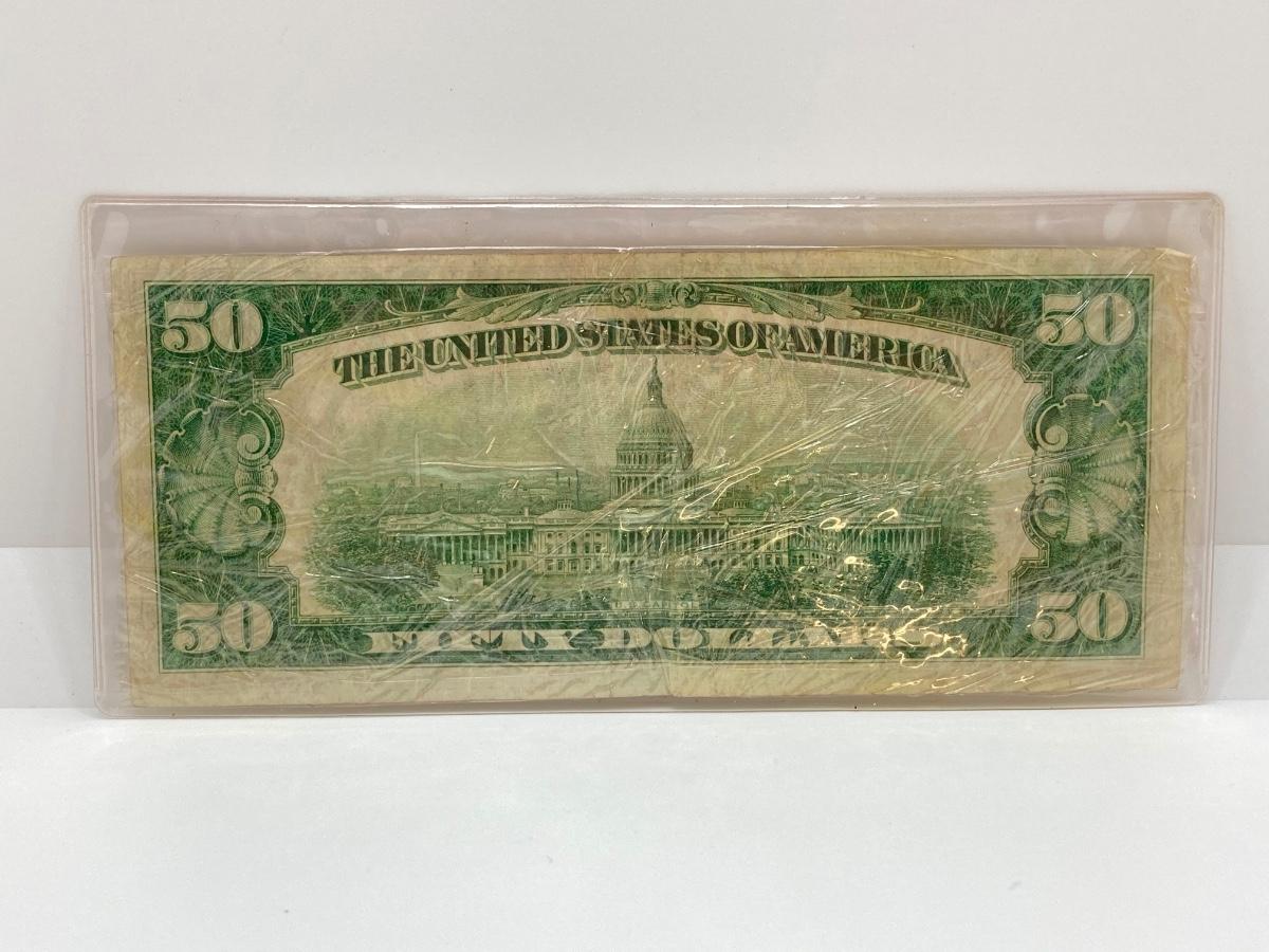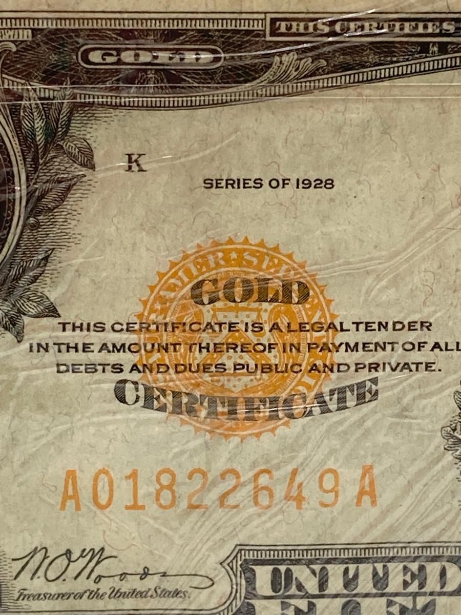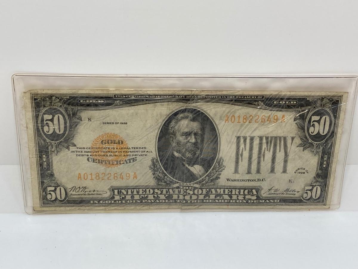 LOT 186: Vintage 1928 Gold Certificate Fifty Dollar Paper Currency