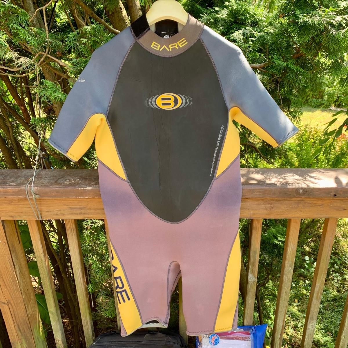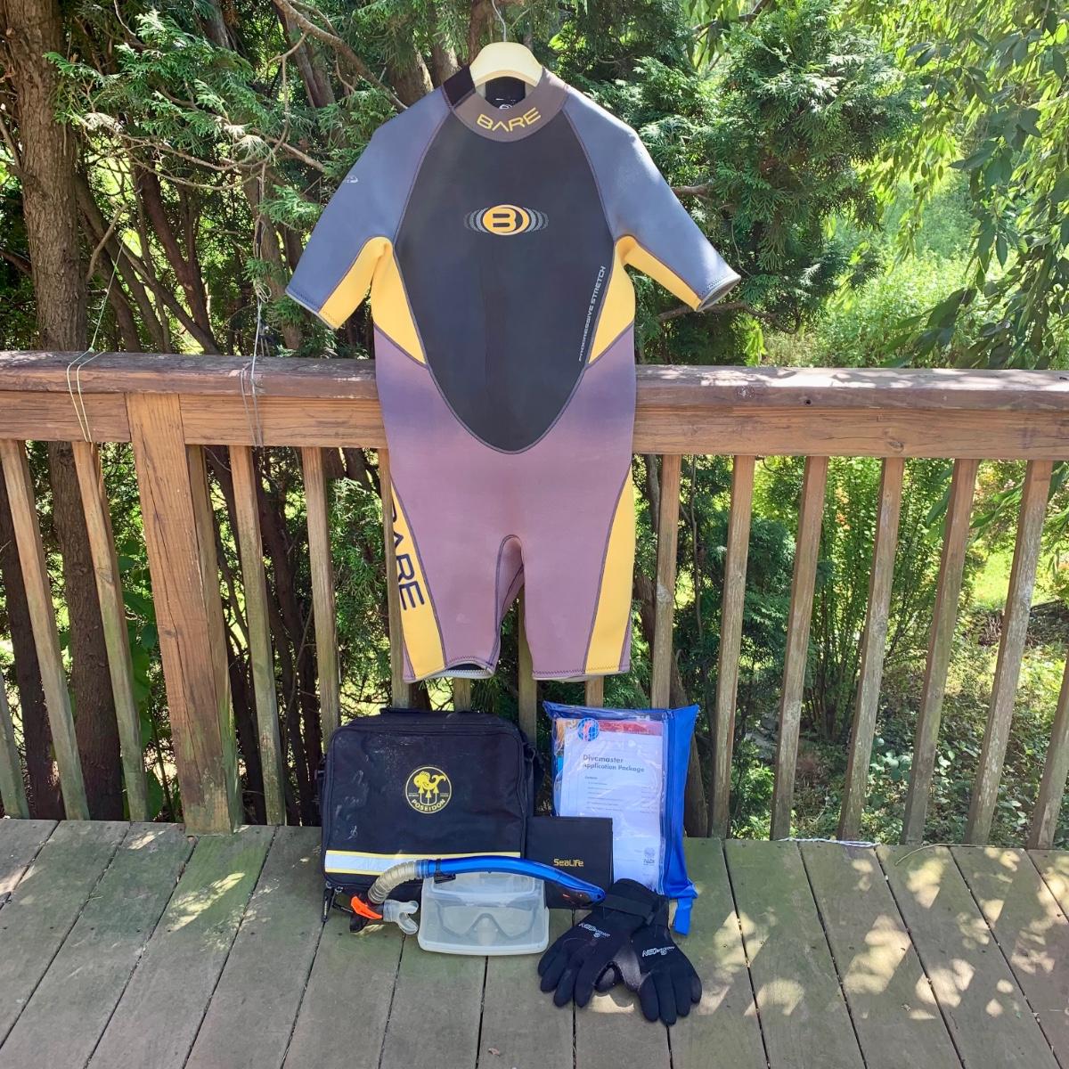 LOT 5 Z: Dive Master Collection: Bare Size Large Dive Suit, Body Gear Snorkel, NeoSport 3MM Gloves, Deep See Tempered Glass Goggles & More