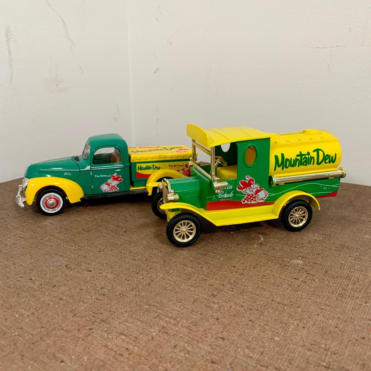 LOT 8 Y: Golden Wheel Diecast Ya-hooo Mountain Dew 1940's Ford Truck & Truck Coin Bank