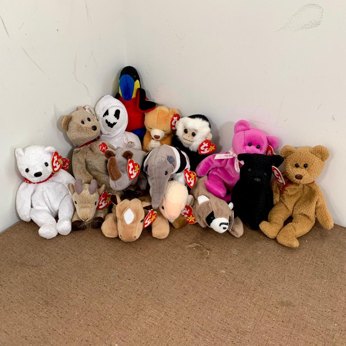 LOT 11 Y: Beanie Babies Collection: Spike the Rhino, Ringo the Racoon, Derby the Horse, & More