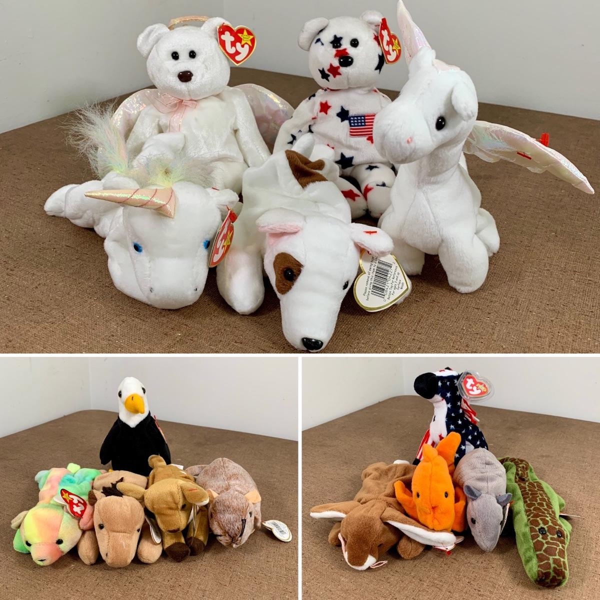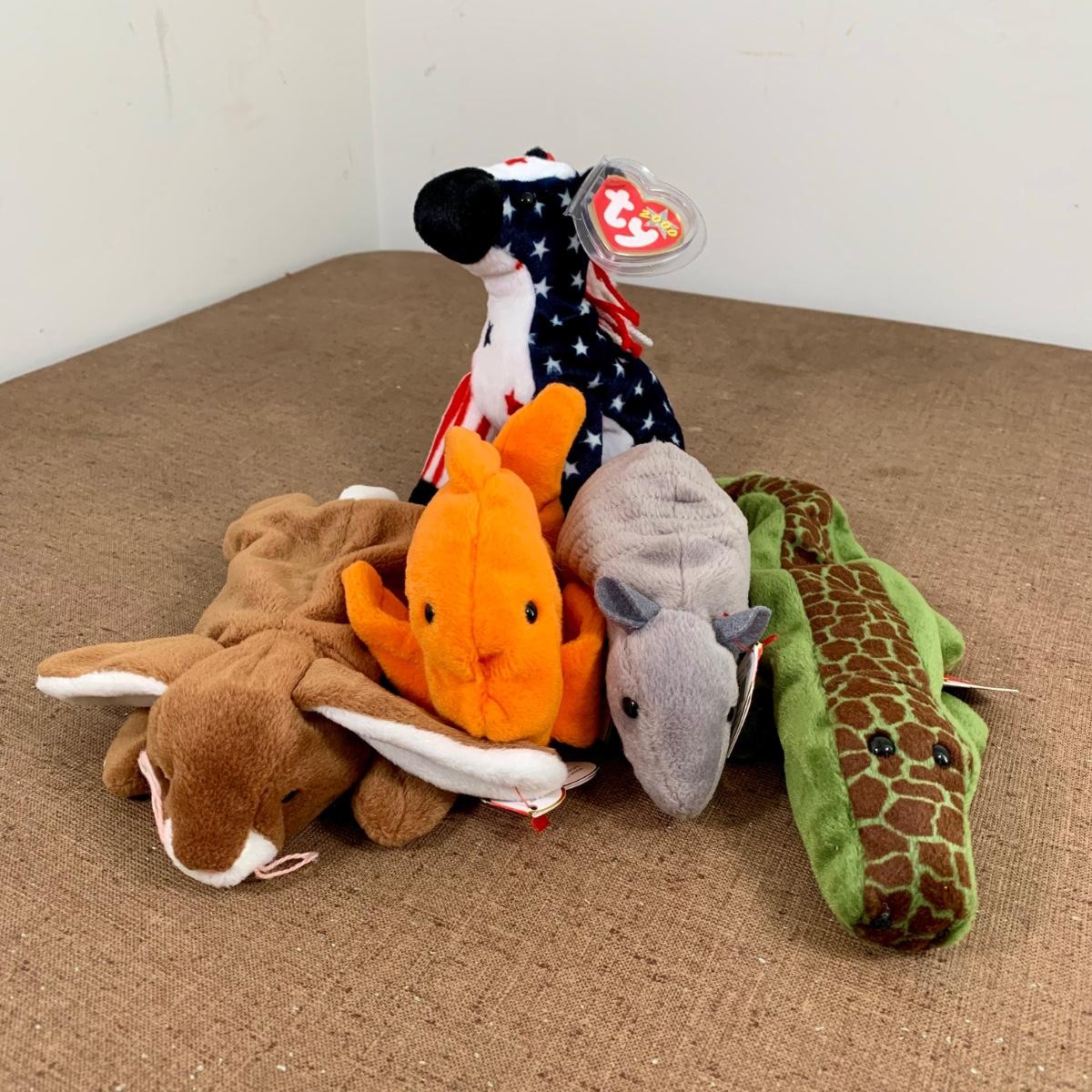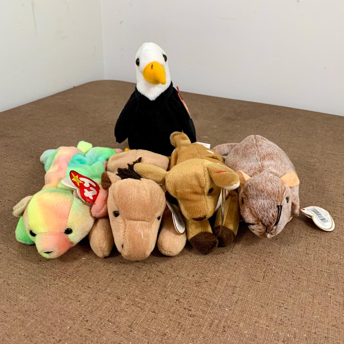 LOT 16 Y: Beanie Babies Collection: Goldie the Goldfish, Baldy the Eagle, Glory the Bear, & More