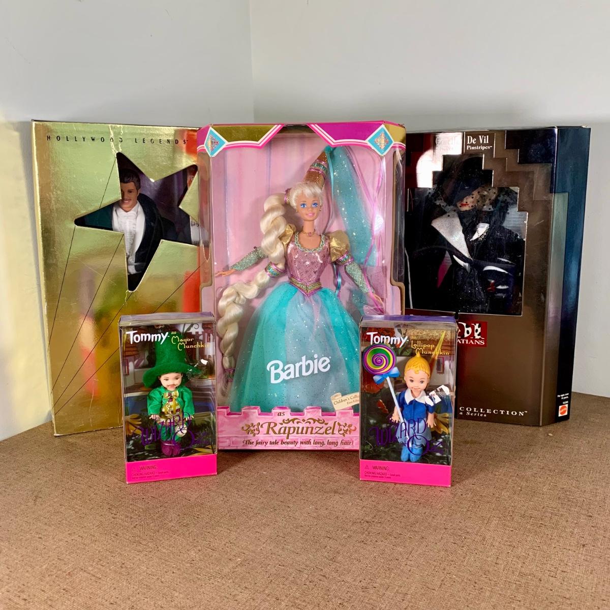 LOT 25 Y: NIP 1996 Cruella De Vil Barbie Model # 16295, 1994 Rhet Butler from Gone With The Wind Ken Model # 12741., 1994 Rapunzel Barbie Model # 13016, & More