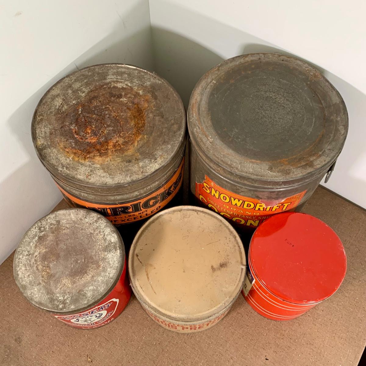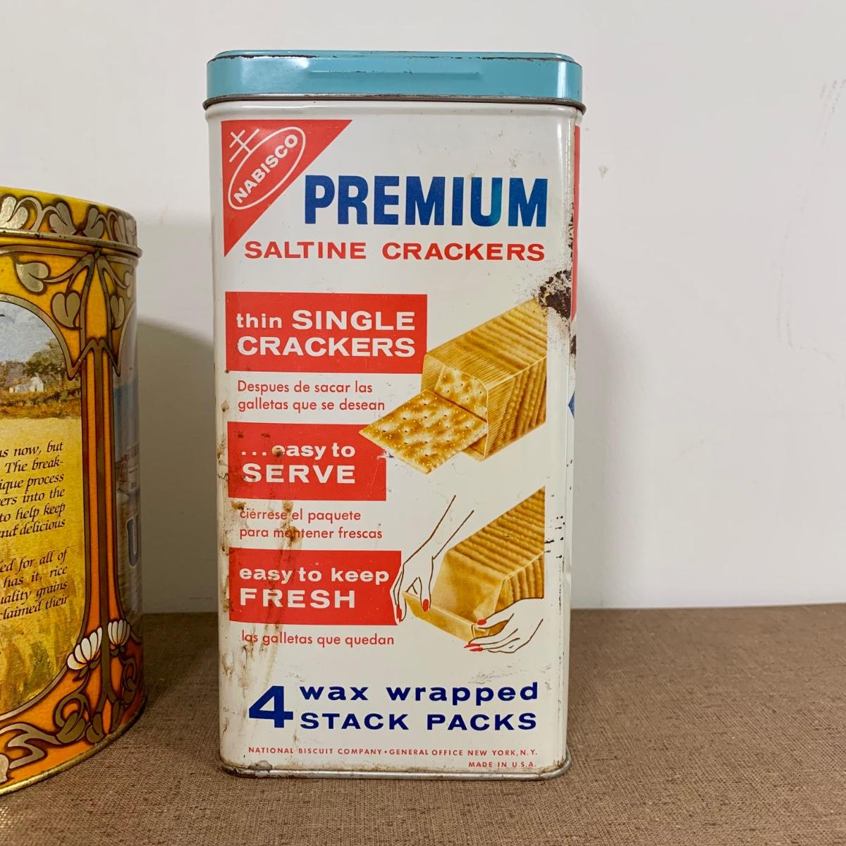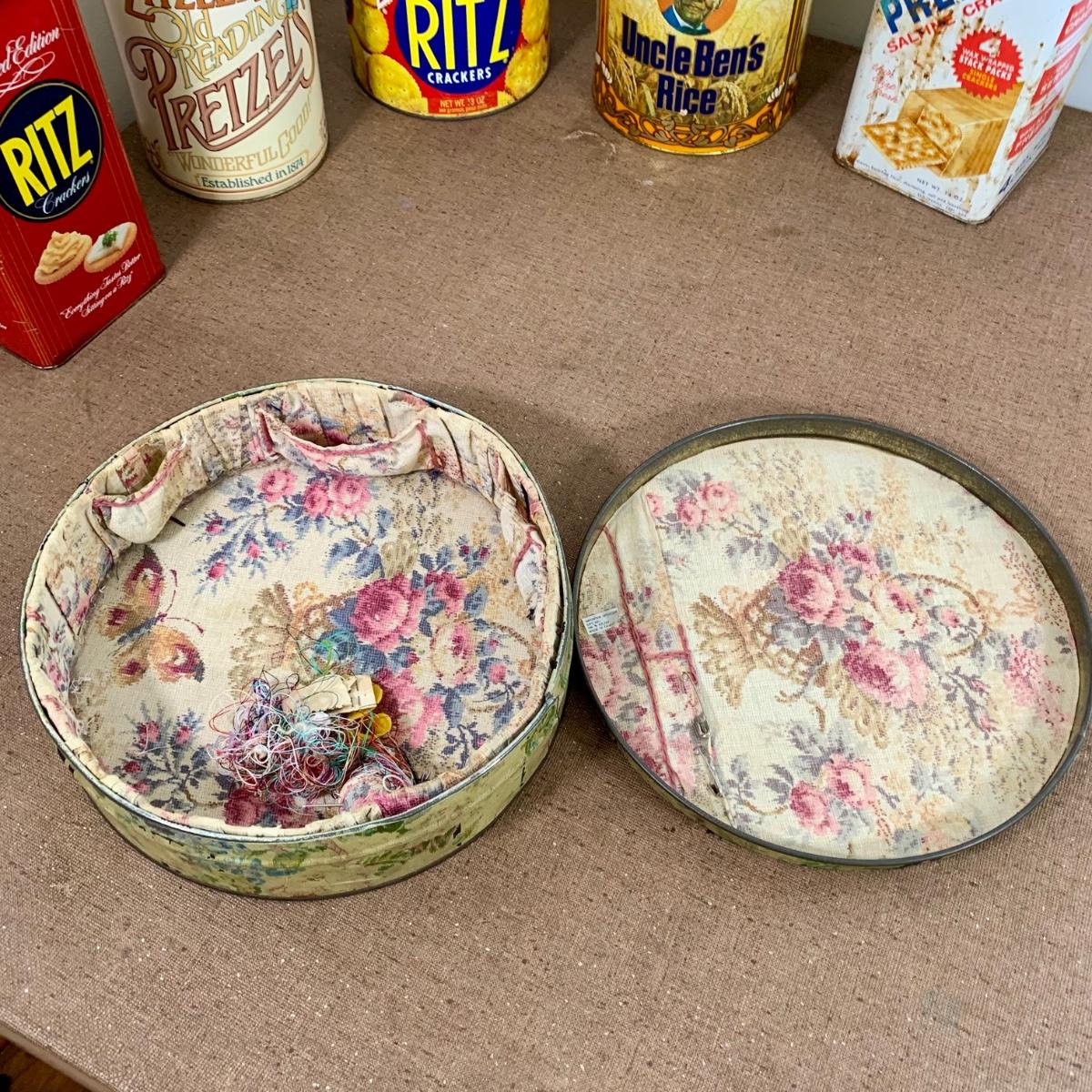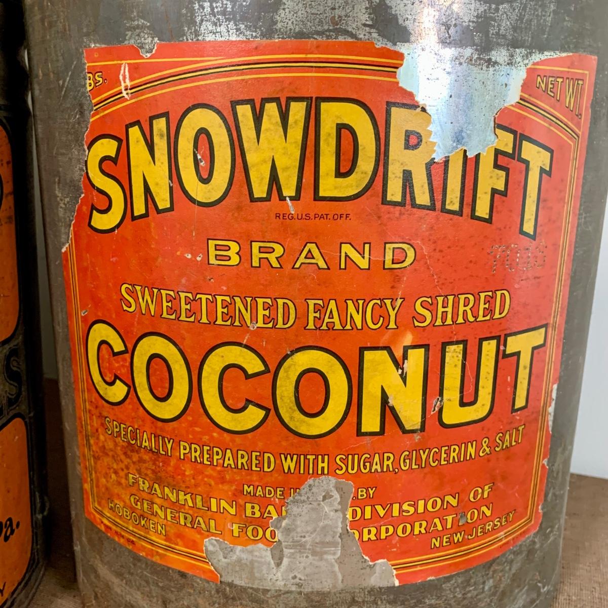 LOT 32 Y: Vintage TIn Collection: Snowdrift Shredded Coconut, Henrick's Thin Butter Pretzels, Musser's Potato Chips, Ritz Crackers, Uncle Bens Rice, & More