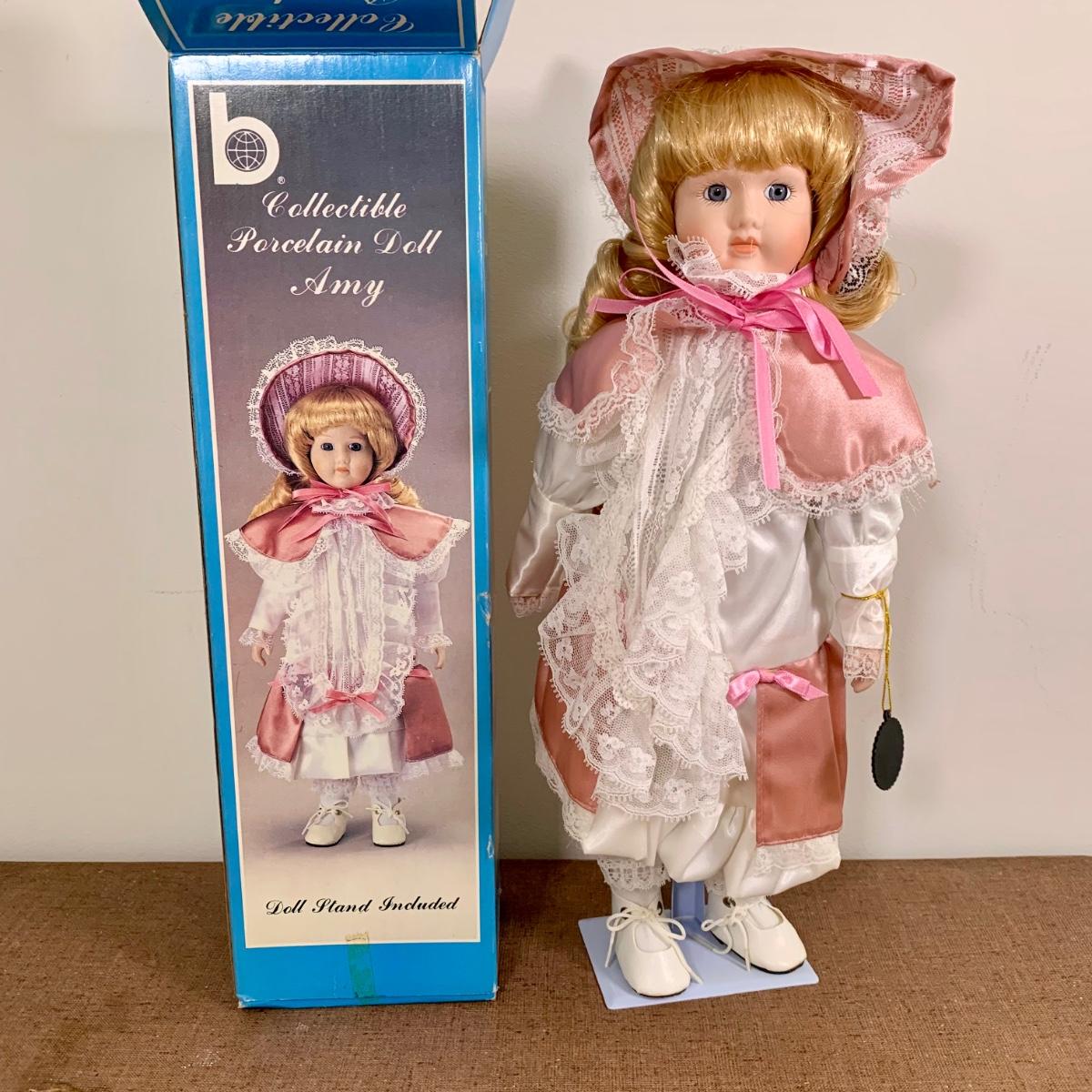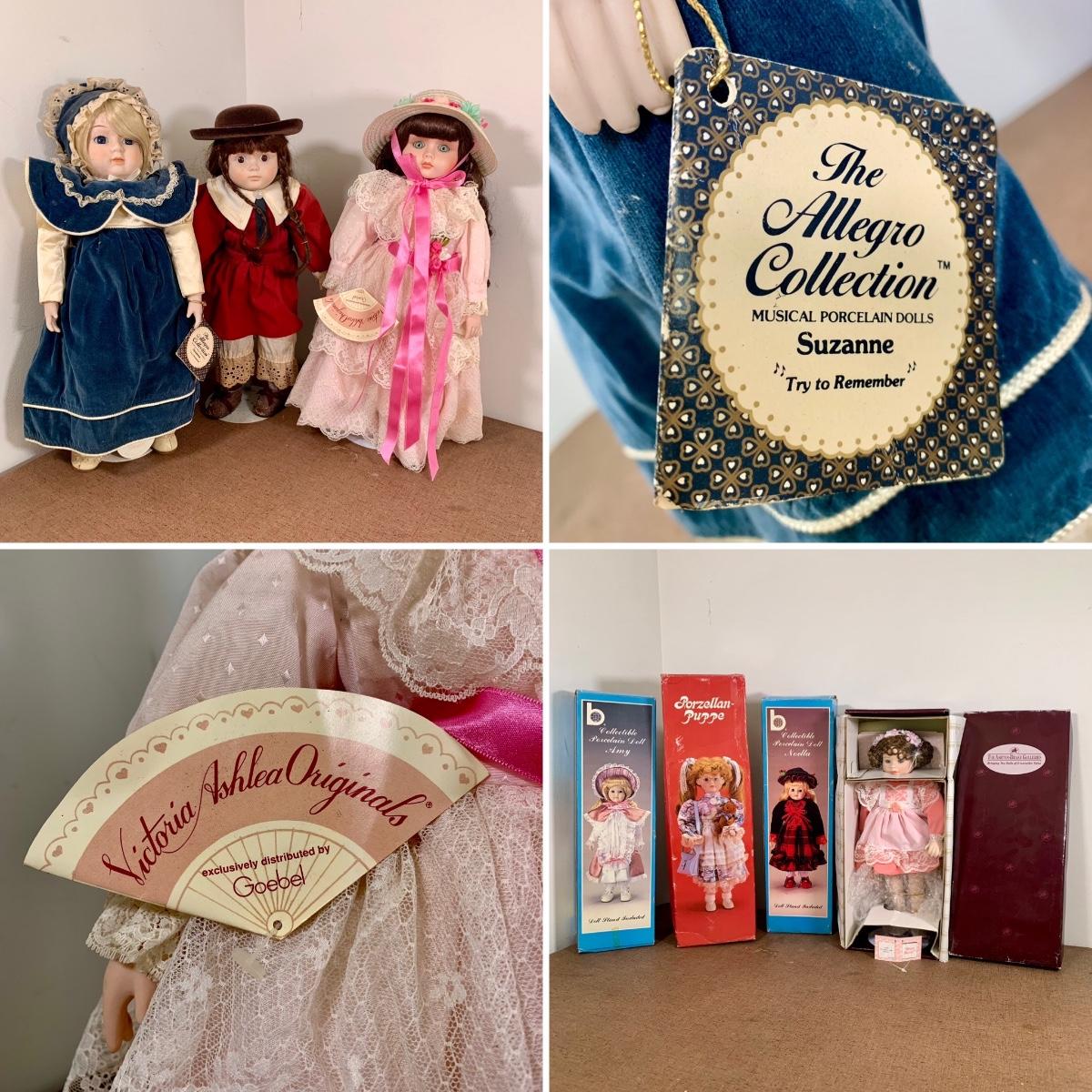 LOT 35 Y: Large Porcelain Doll Collection: Russ Allegro "Suzanne", 1984 Midori Lasan Doll, Goebel Victoria Ashlea Originals Karen Kennedy "Melanie" # 28 of 2000, & More