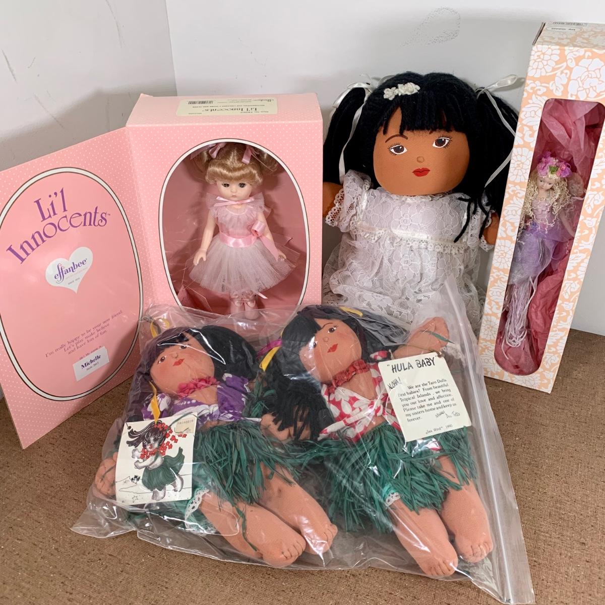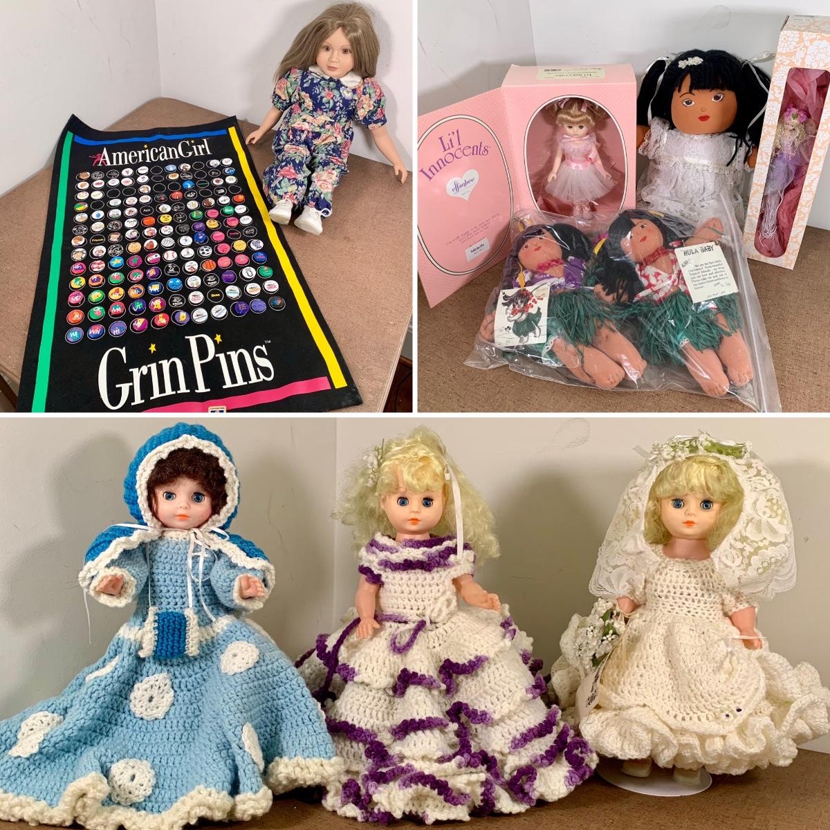 LOT 36 Y: American Girl Grin Pins Collection, My Twin Doll, Hula Babies, Effanbee Li'l Innocents "Michelle" Doll, & More