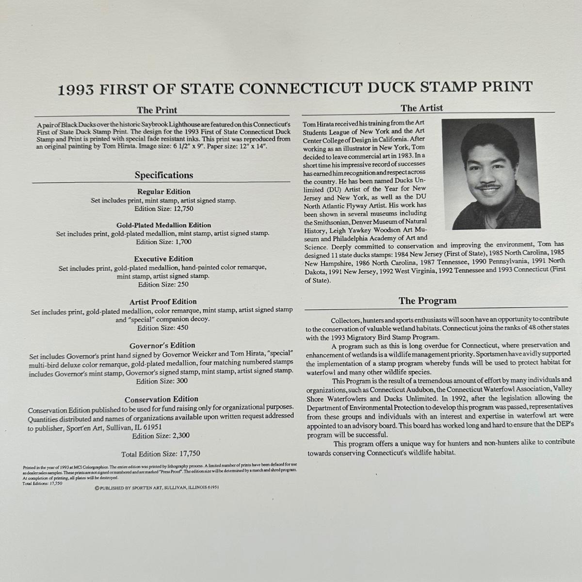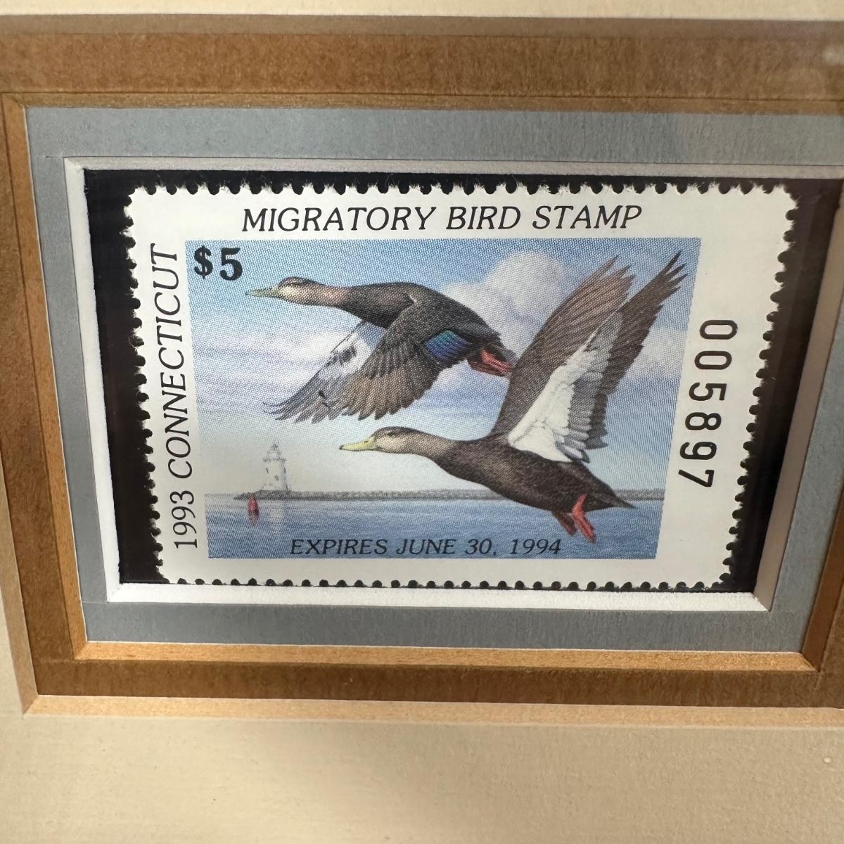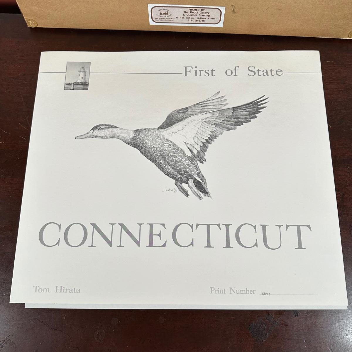LOT 65D: 1993 Connecticut State Duck Stamp Print Tom Hirata With 2 Stamps & More Decor