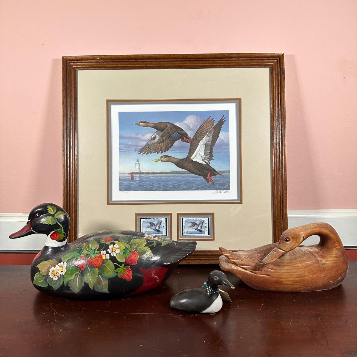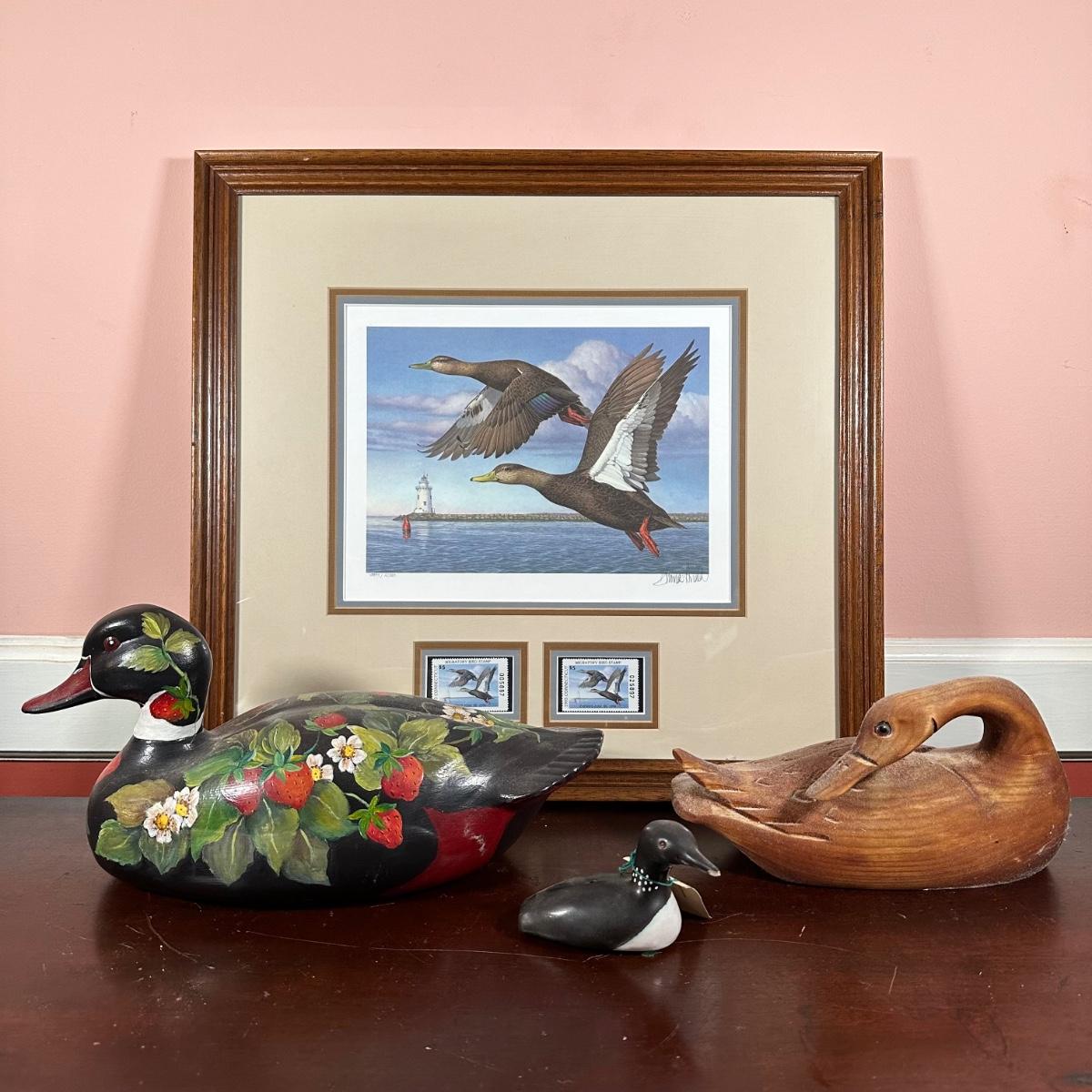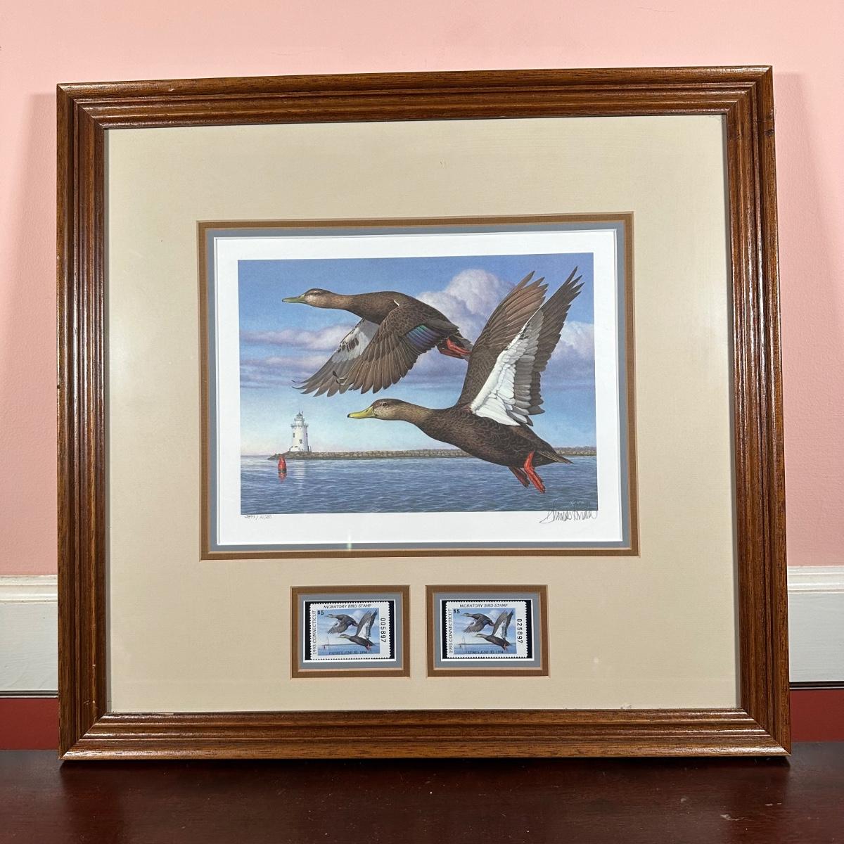 LOT 65D: 1993 Connecticut State Duck Stamp Print Tom Hirata With 2 Stamps & More Decor