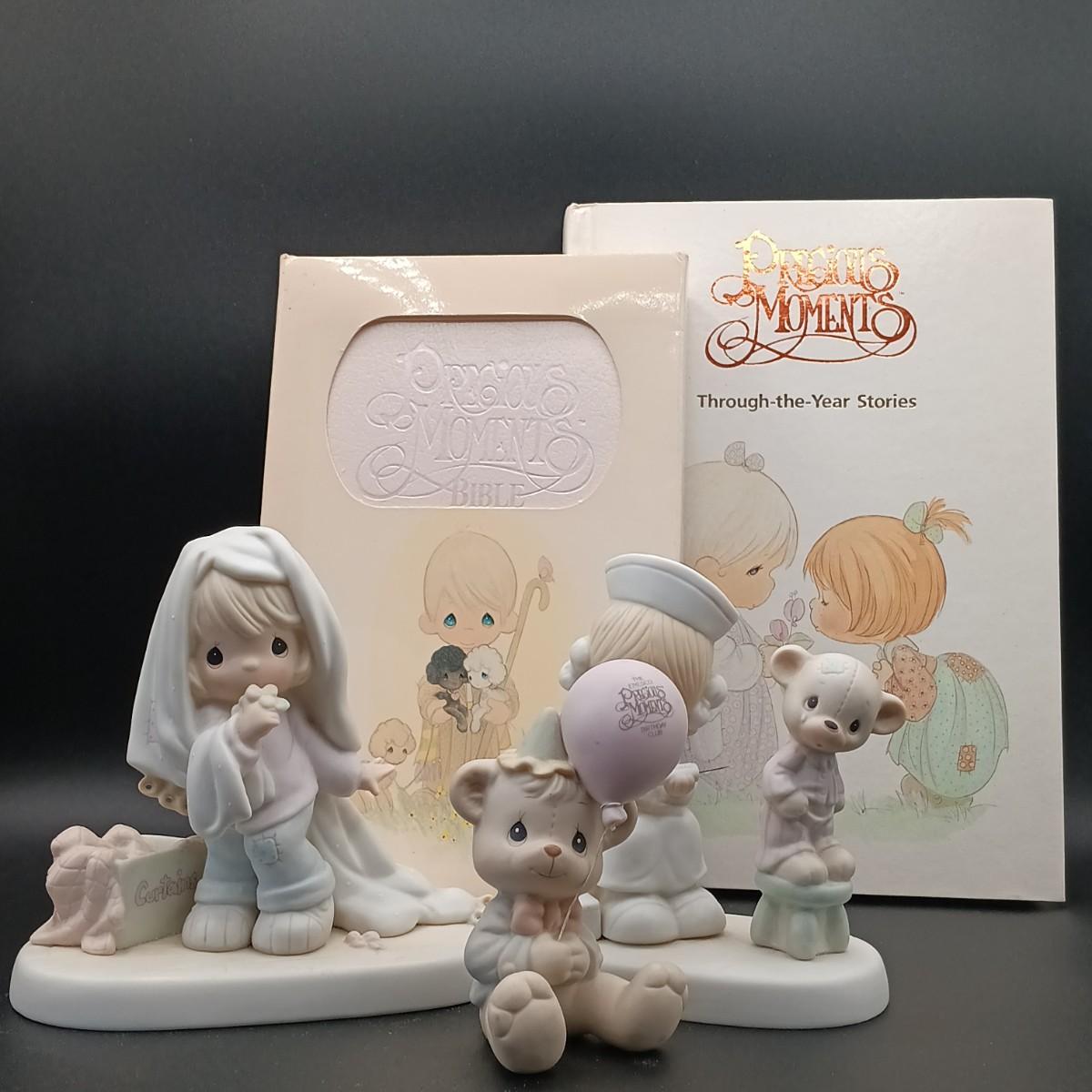 LOT 83Z: Vintage Precious Moments 1985 Bible, 1990 Through the Years Stories & Figurines
