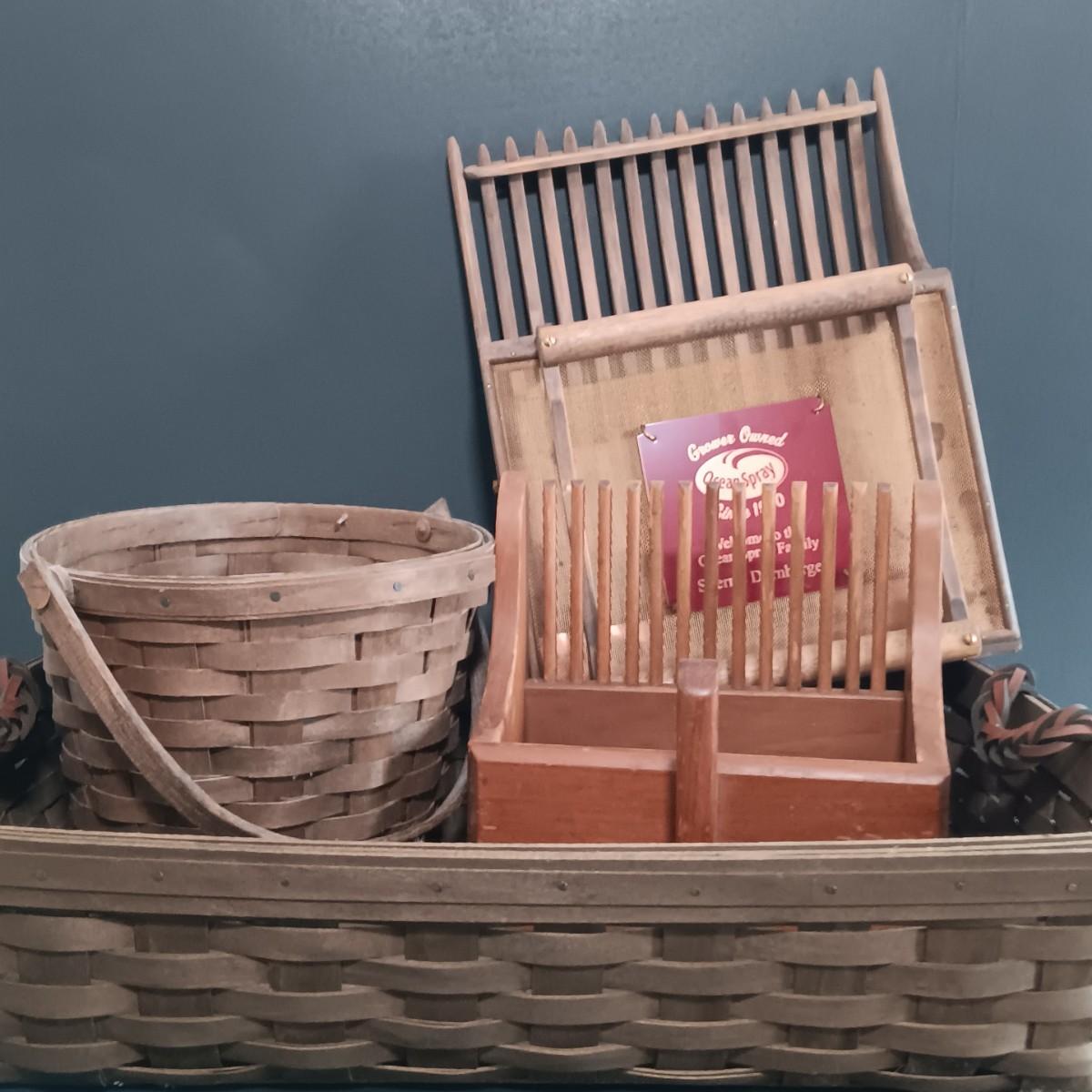 LOT 92Z: Set of Vintage Cranberry / Blueberry Handpickers w/ Fruit Basket & Longaberger Basket