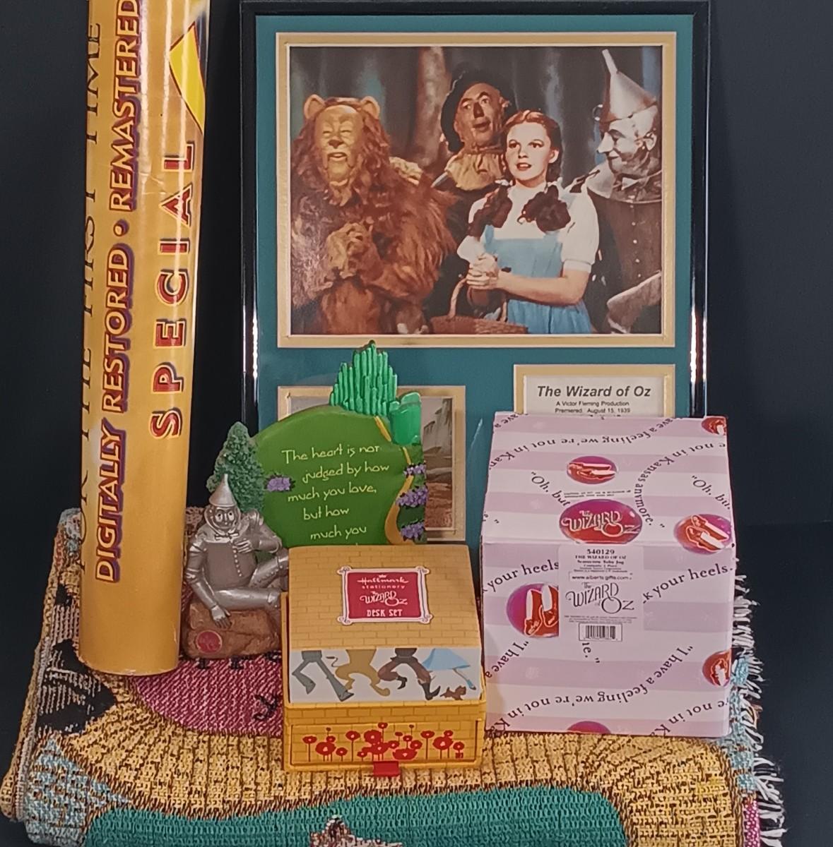 LOT 100Z: Wizard of Oz Framed Print w/ Throw Blanket, Desk Supplies & More