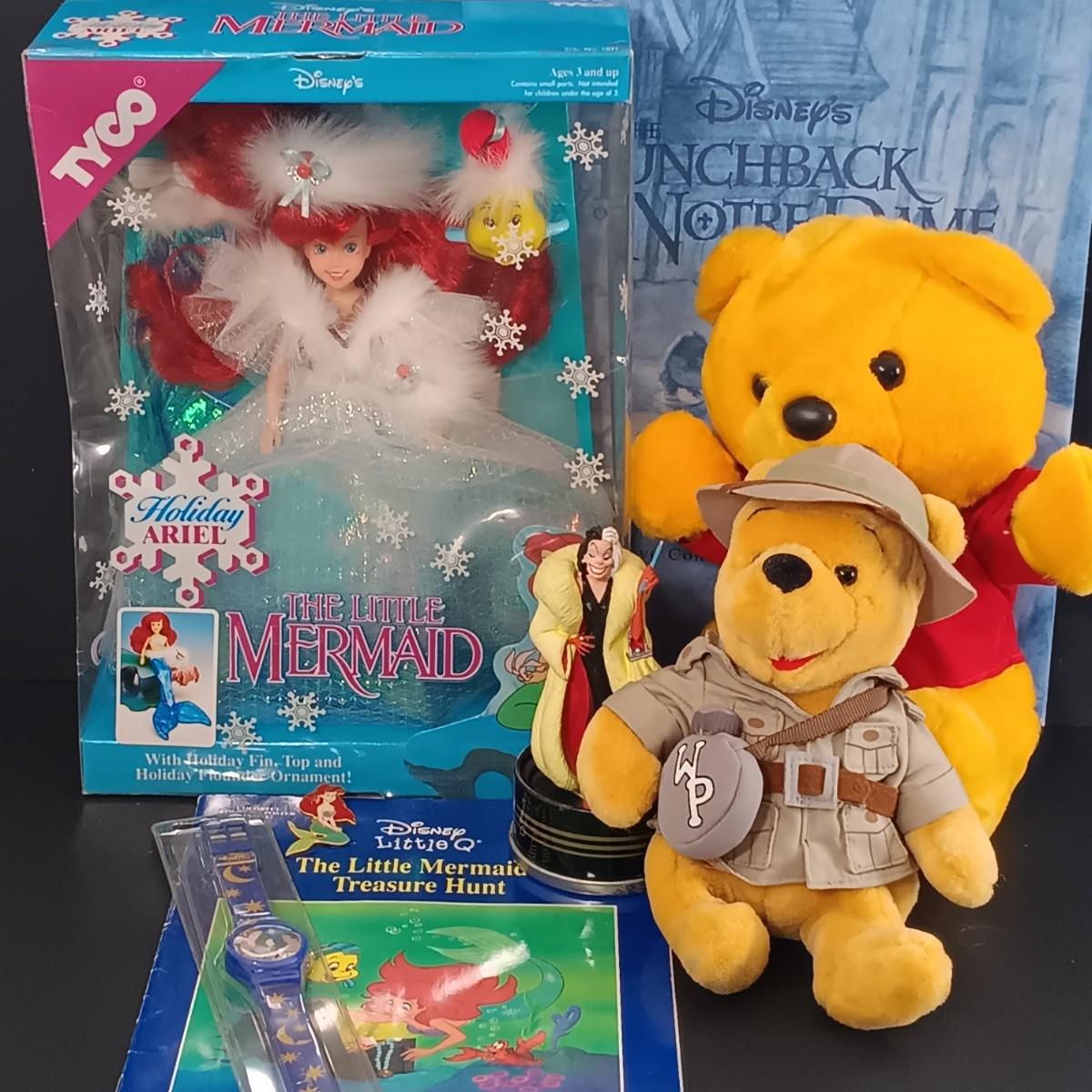 LOT 105Z: Tyco Little Mermaid Holiday Ariel, Disney Store Exclusive Lithograph & More