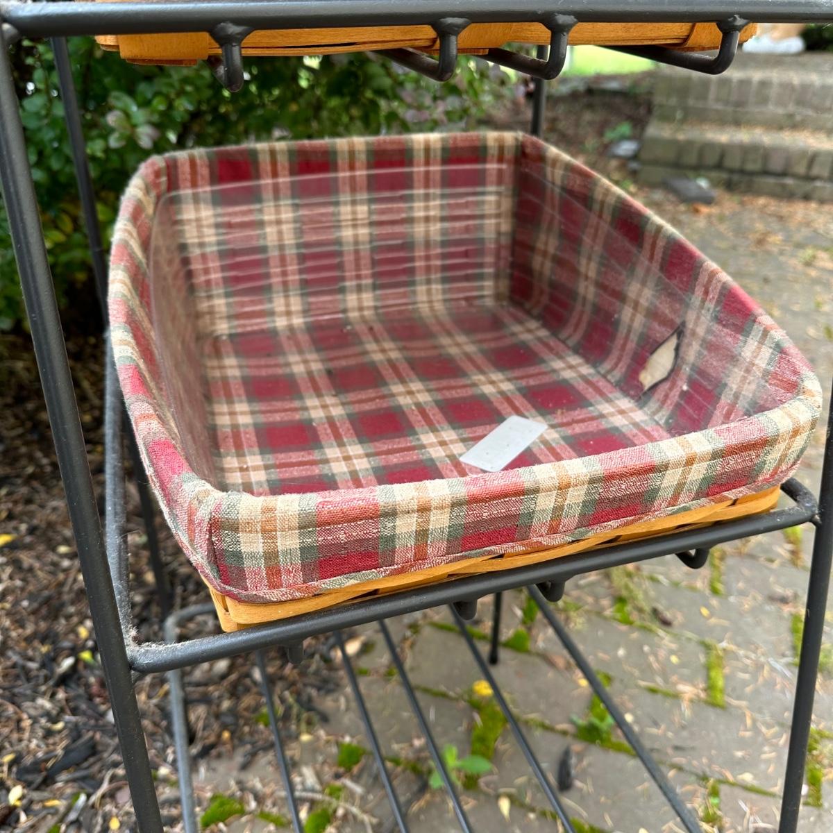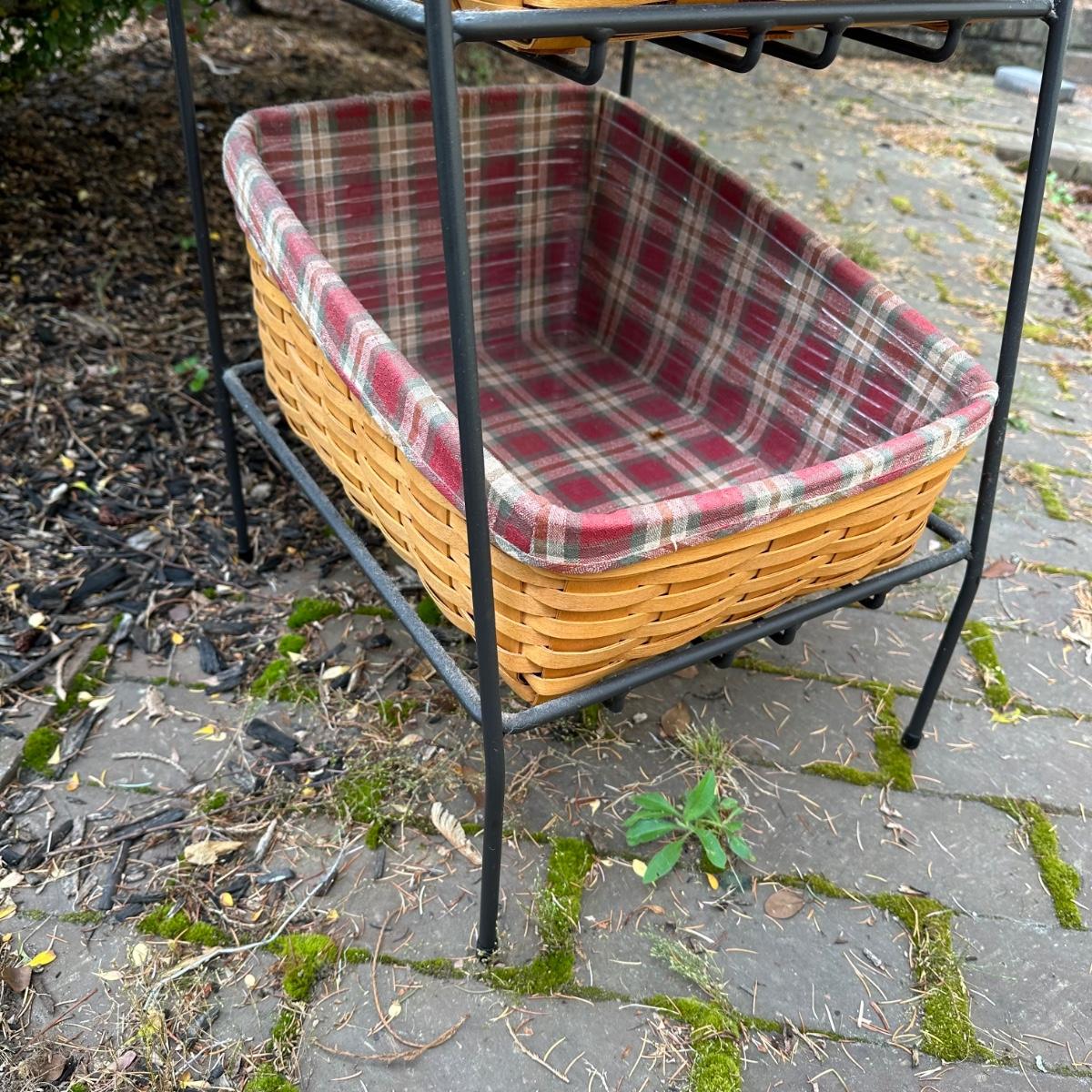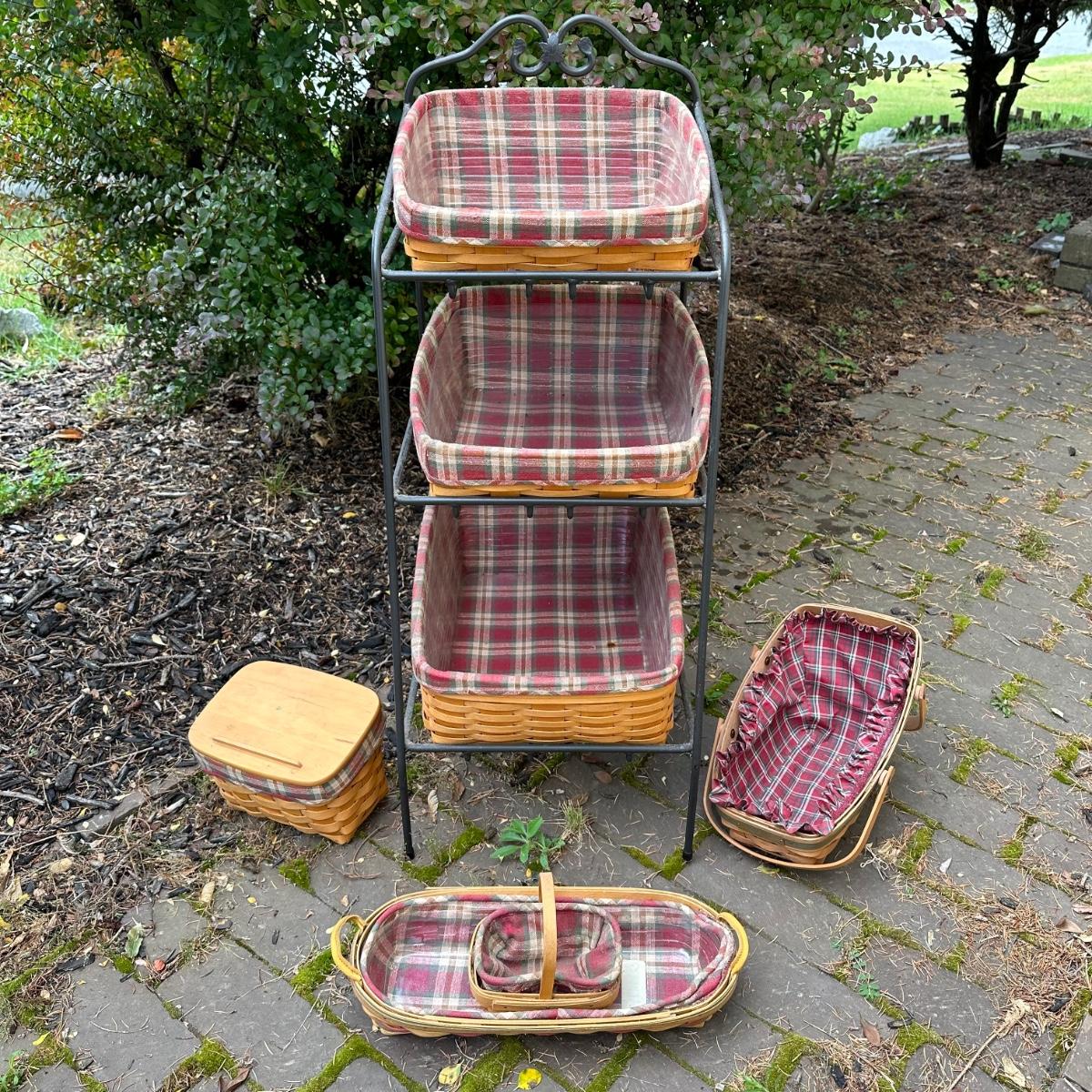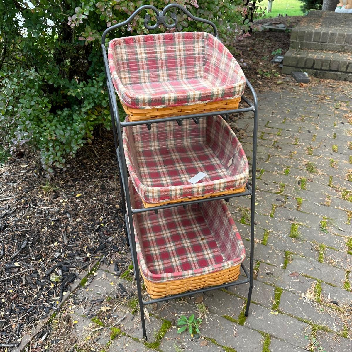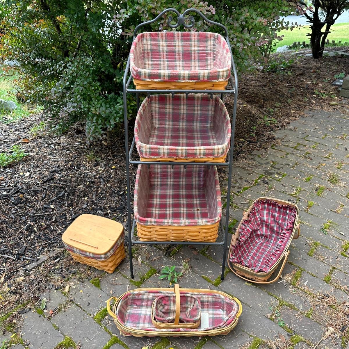 LOT 129W: Longaberger 3 Tier Wrought Iron Stand w/ Matching Longaberger Baskets