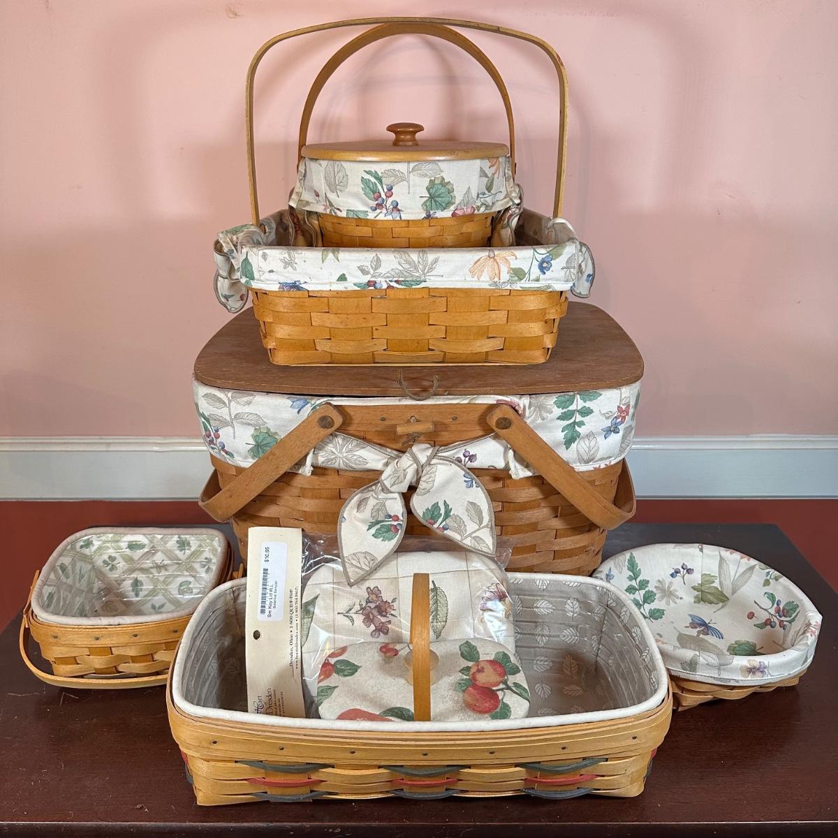 LOT 139W: White w/ Floral Longaberger Basket Collection