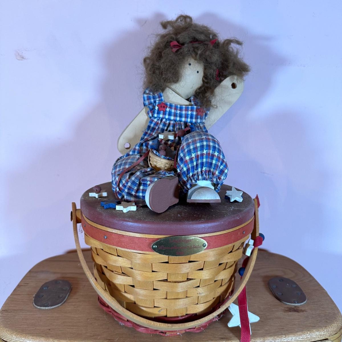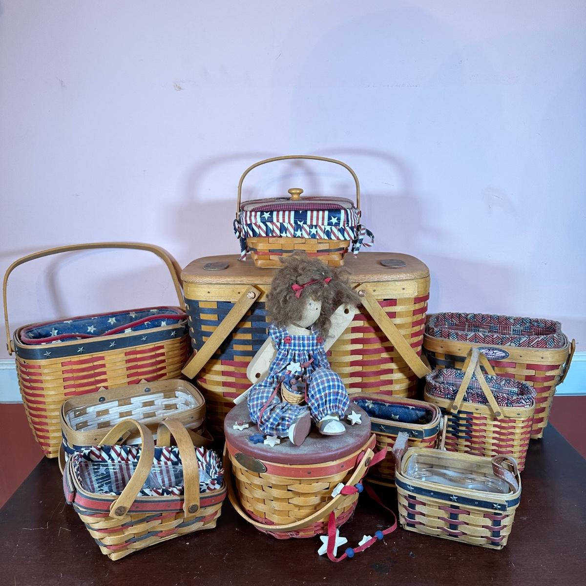 LOT 144W: Patriotic Longaberger Basket Collection w/ Lizzie High Doll Lid & More