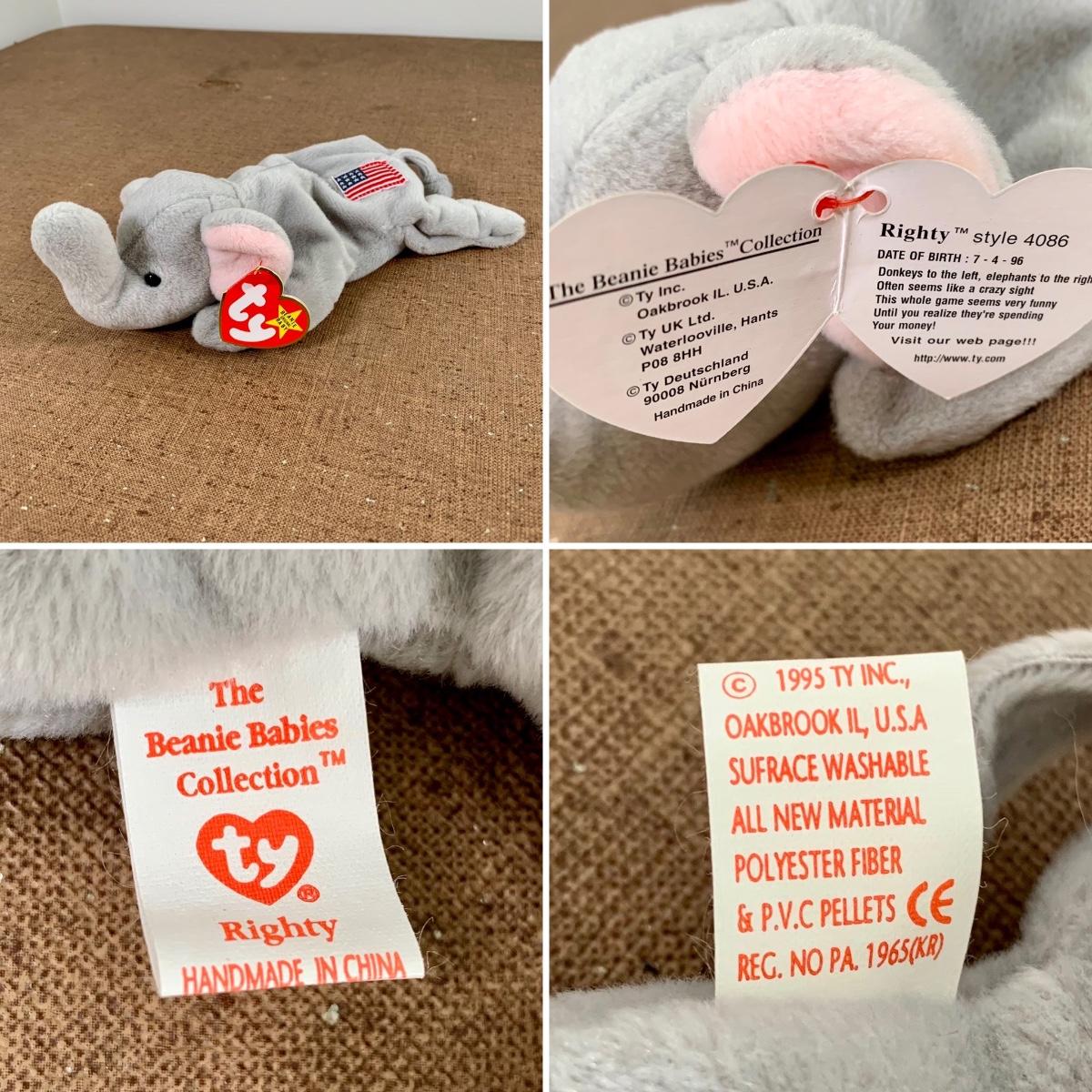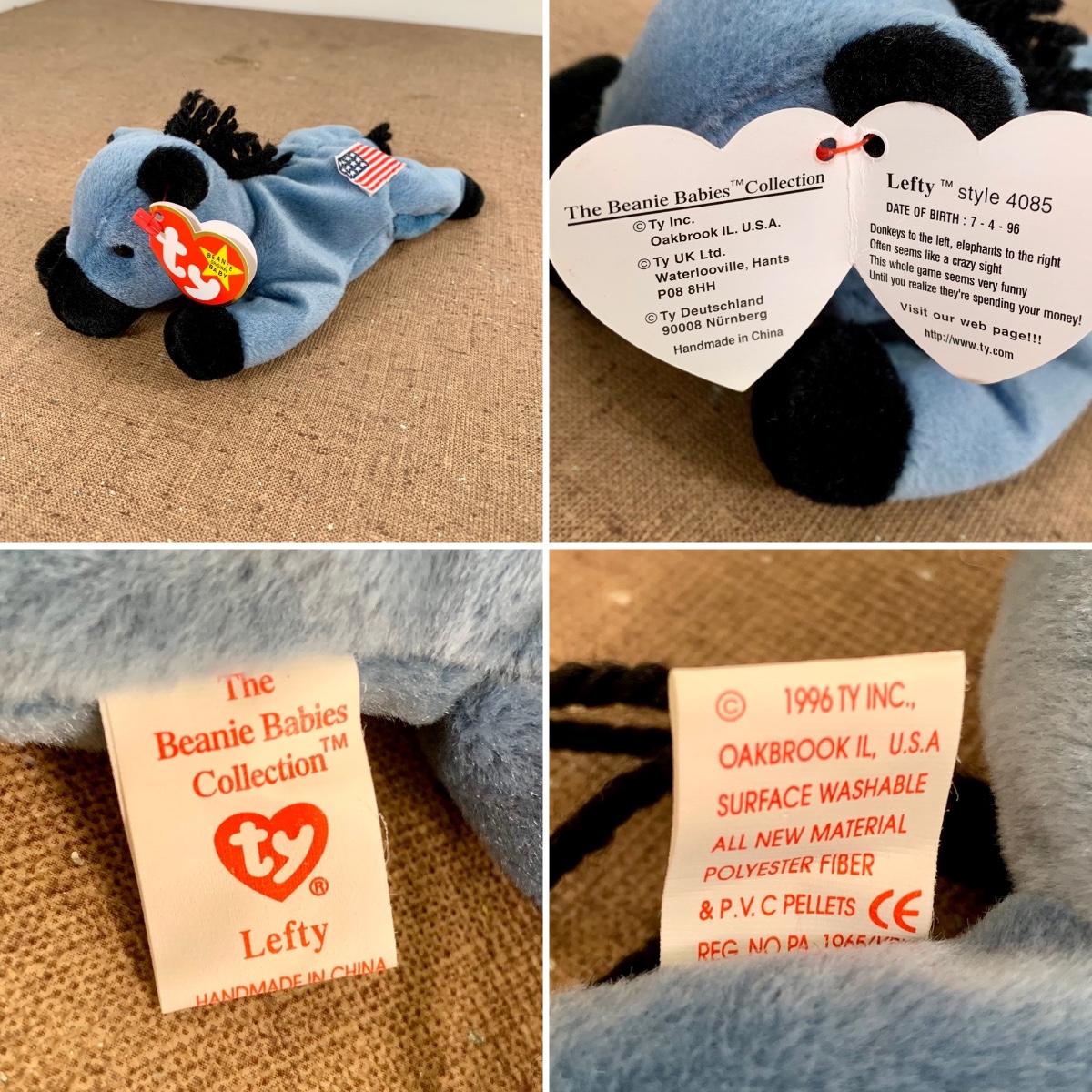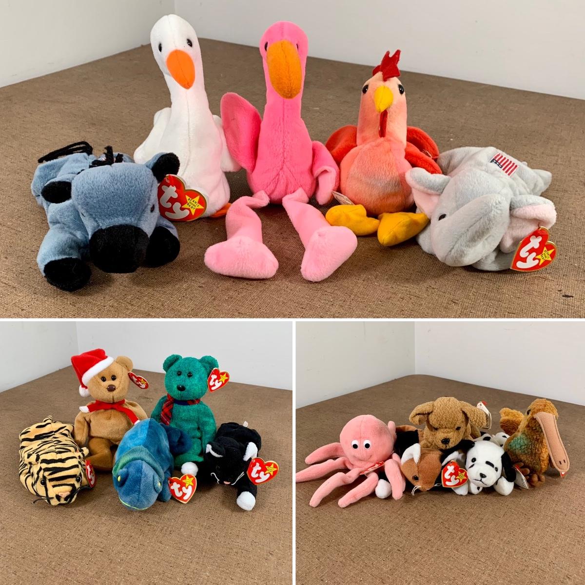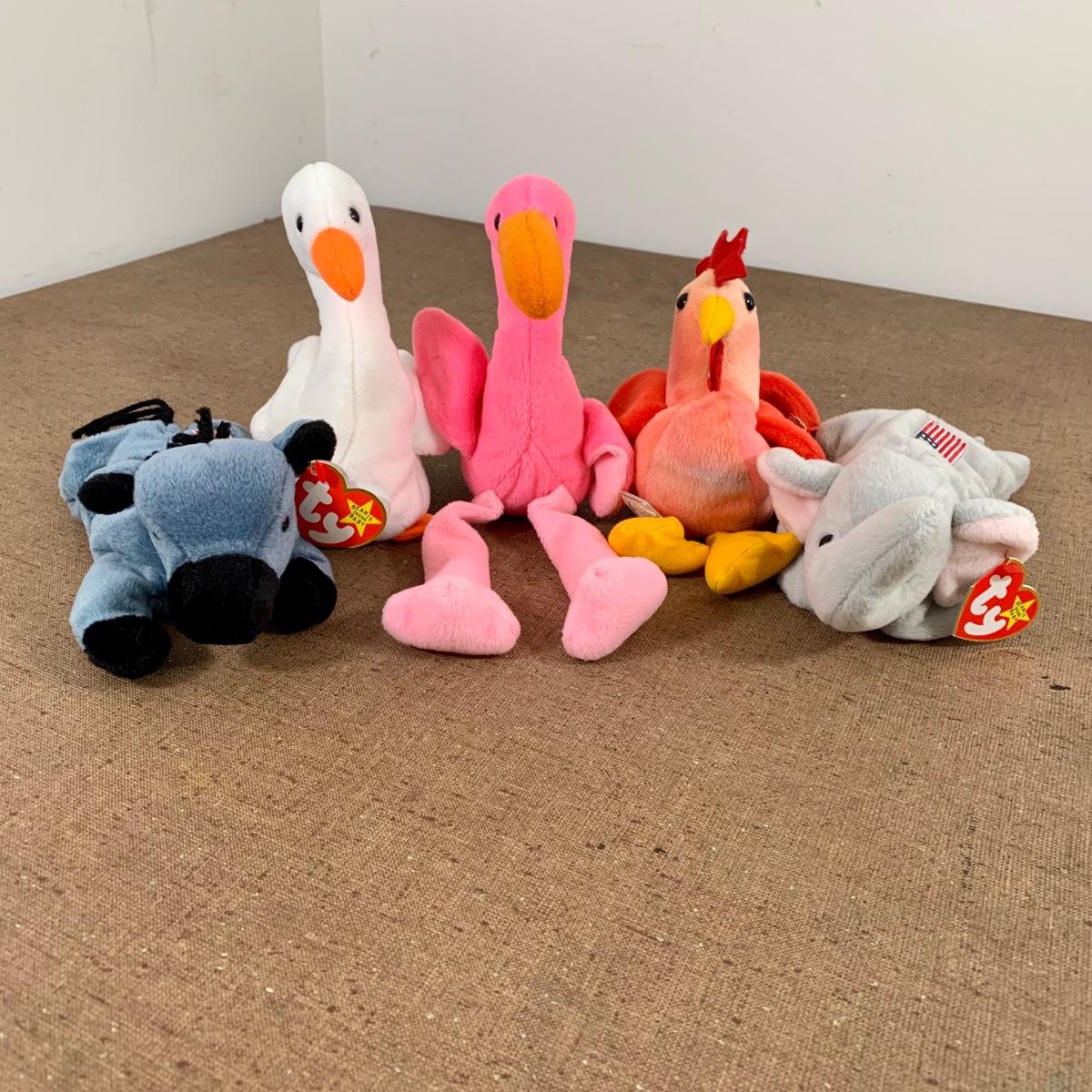 LOT 161 Y: Beanie Babies Collection: Righty the Elephant, Lefty the Donkey, Inky the Octopus, & More
