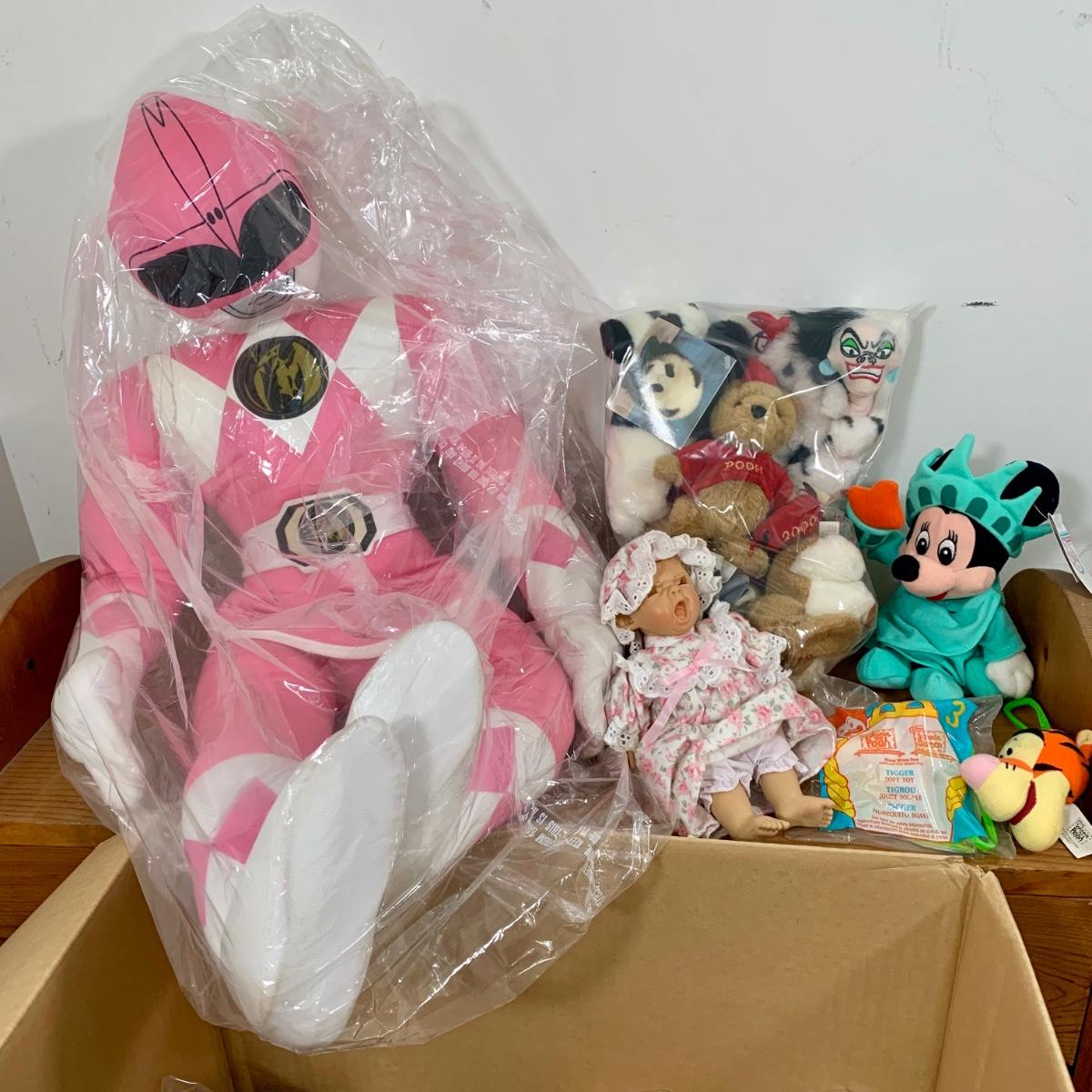 LOT 166 Y: Misc. Collection of Stuffed Animals: Large Pink Power Ranger, Winnie The Pooh McDonald’s Plush Keychains, & More