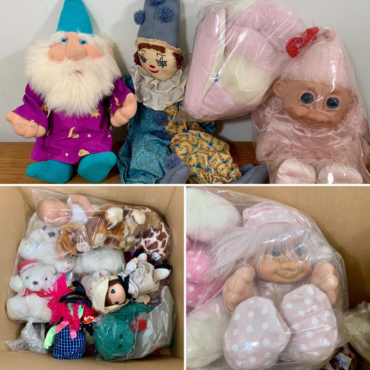 LOT 168 Y: Misc. Collection of Stuffed Animals: Large Troll Dolls, Beanie Babies & More