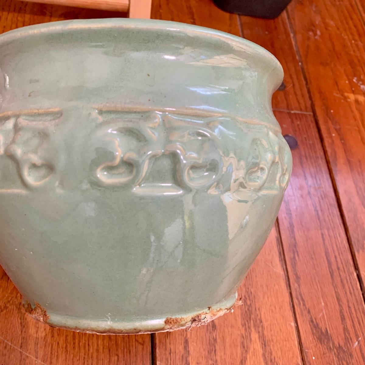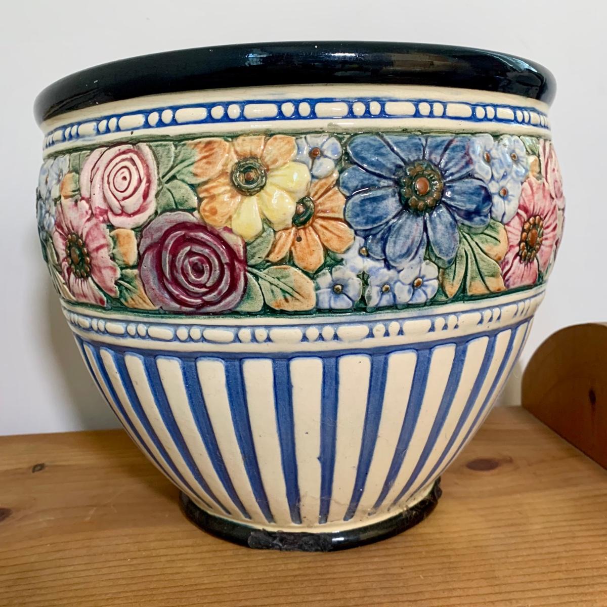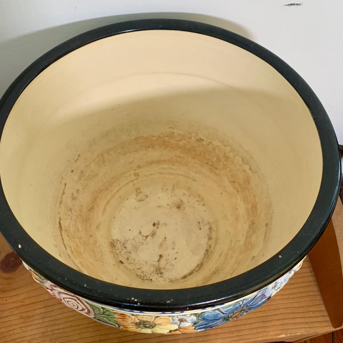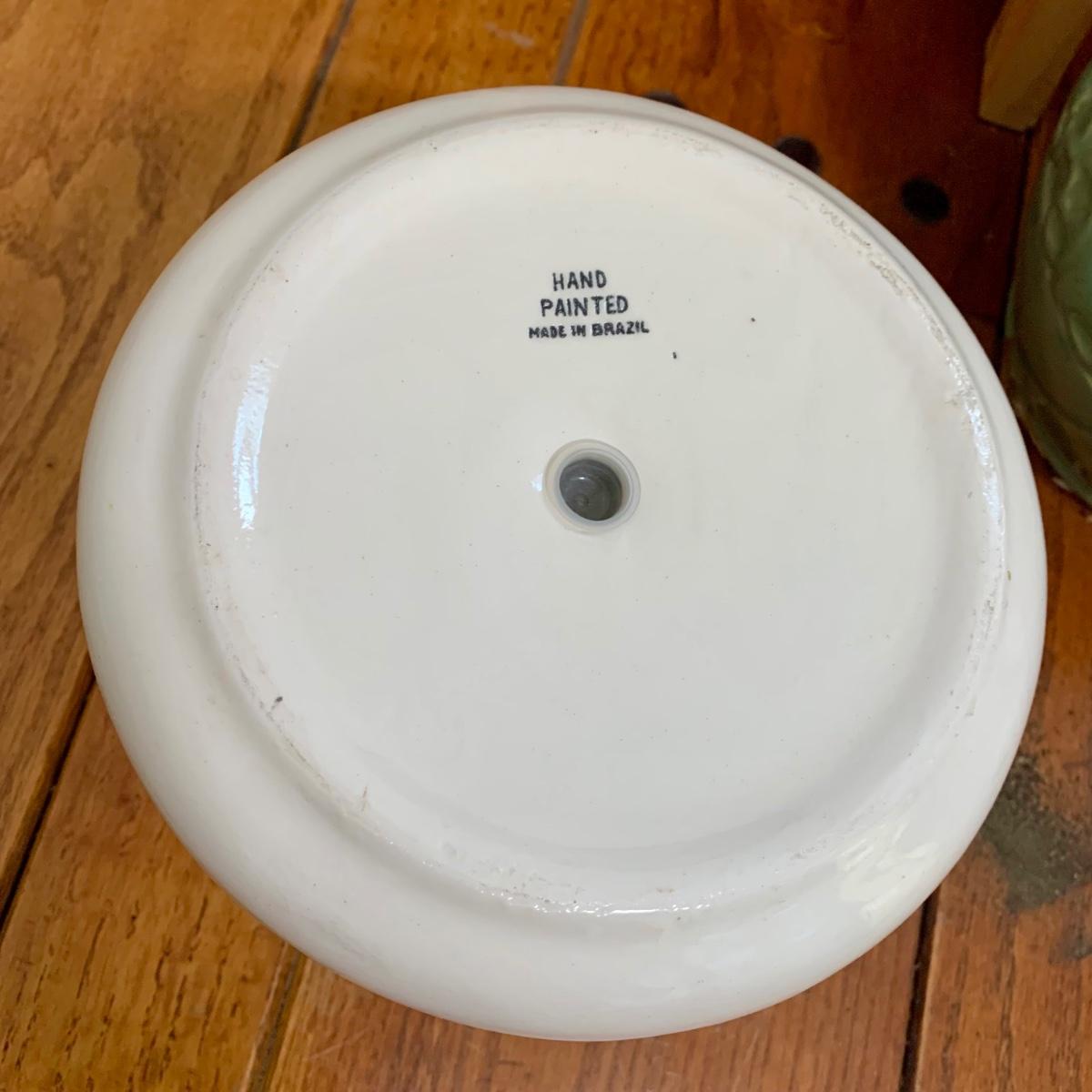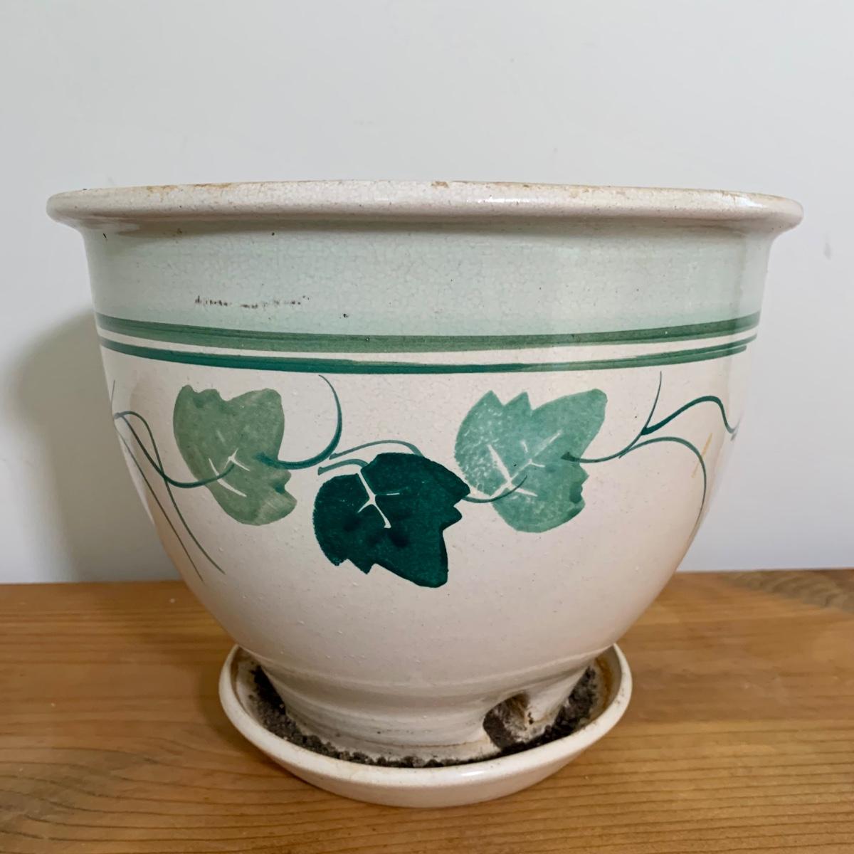 LOT 174 Y: Pretty Garden Planter Collection: Ceramic Plant Pots, Plant Stand, Small Wooden Garden Bench, Stained Glass Humming Bird Garden Decor & Plastic Plant Pots