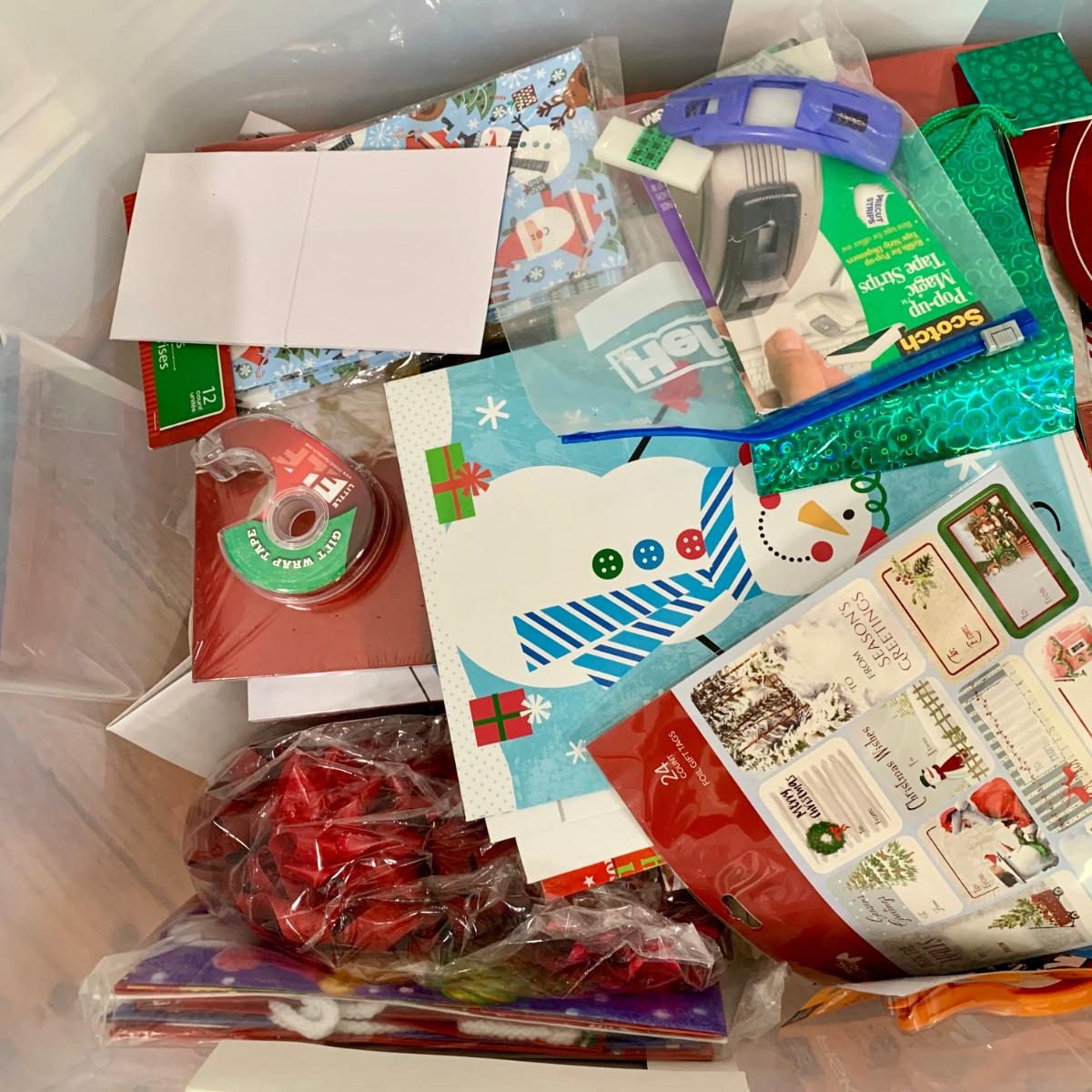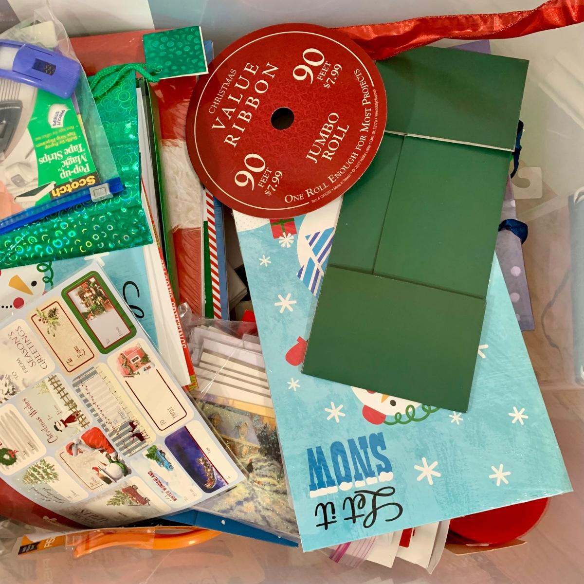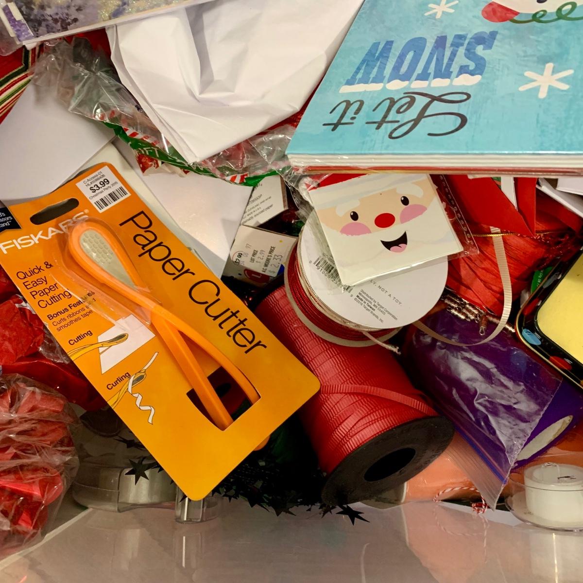 LOT 175 Y: Christmas Wrapping Collection: Wrapping Paper, Bags, Ribbon, Gift Card Tins, Paper Cutter, NIP Longaberger Village Press Wrapping Paper& More