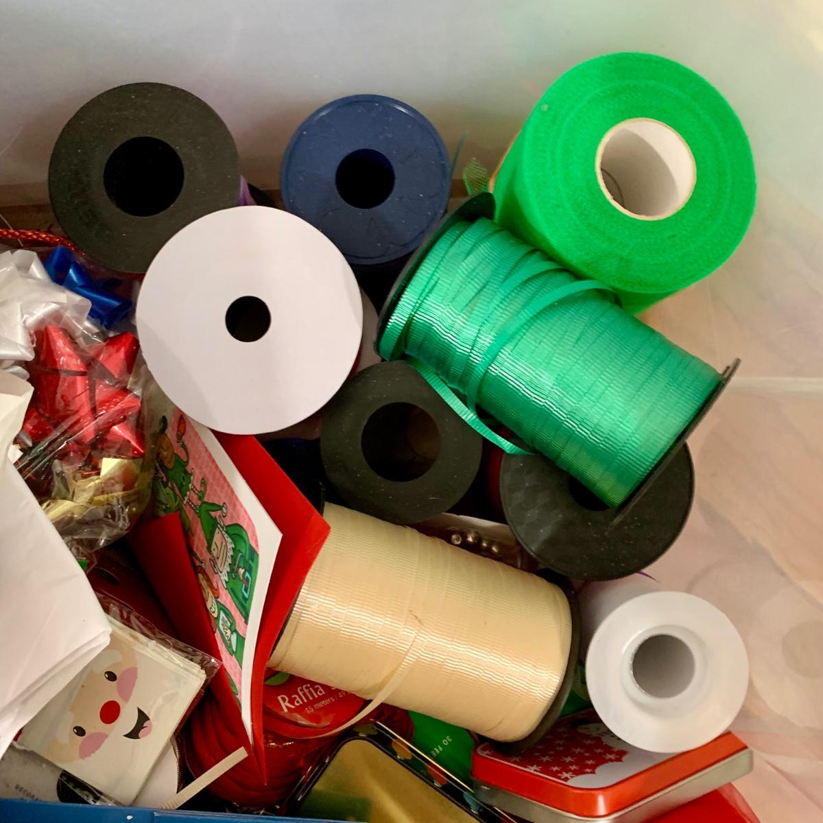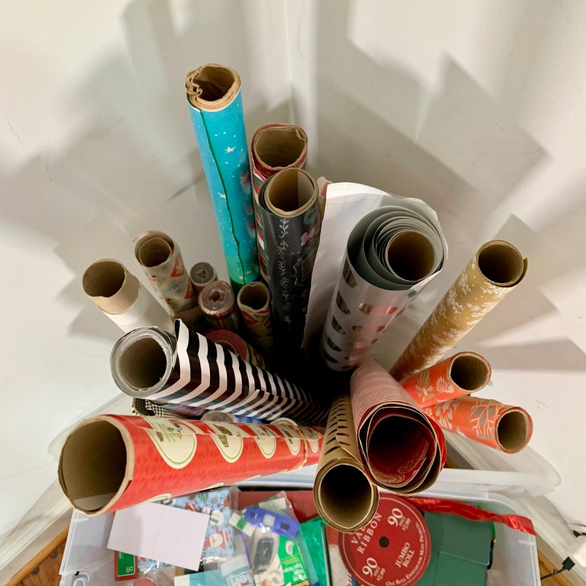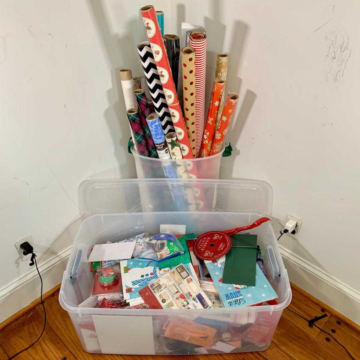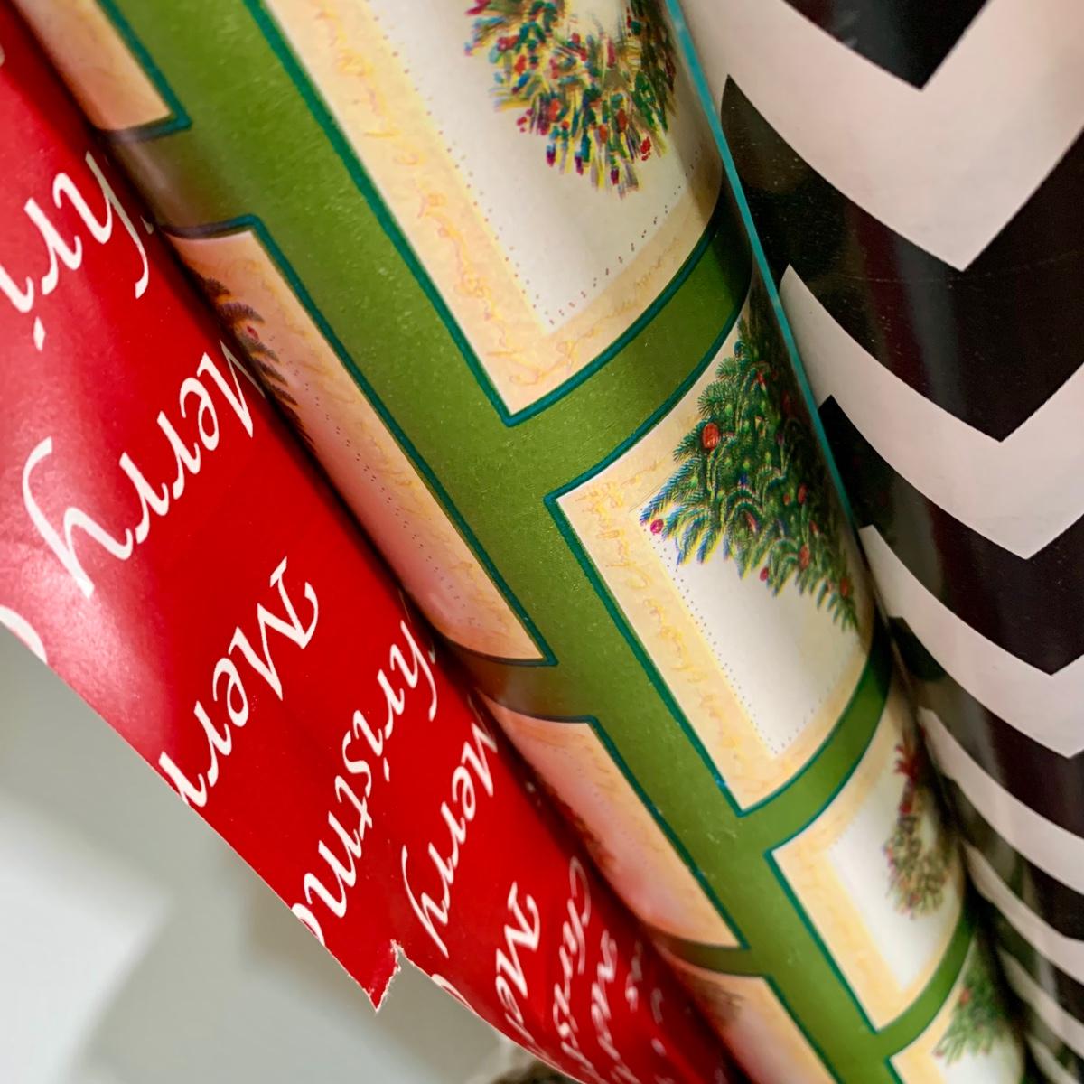 LOT 175 Y: Christmas Wrapping Collection: Wrapping Paper, Bags, Ribbon, Gift Card Tins, Paper Cutter, NIP Longaberger Village Press Wrapping Paper& More