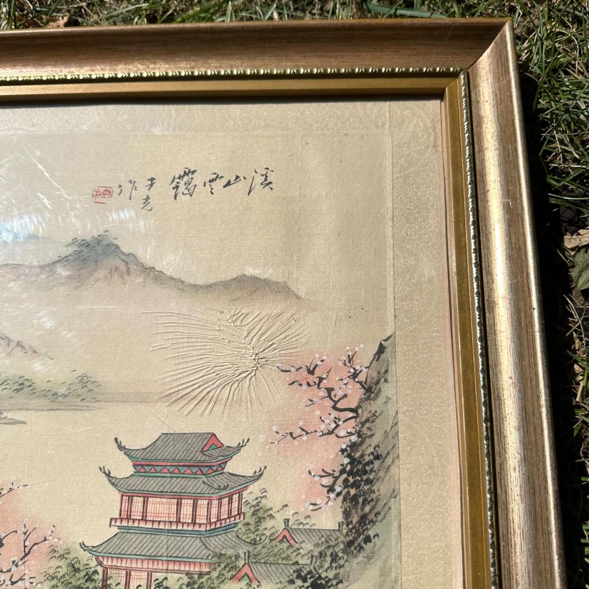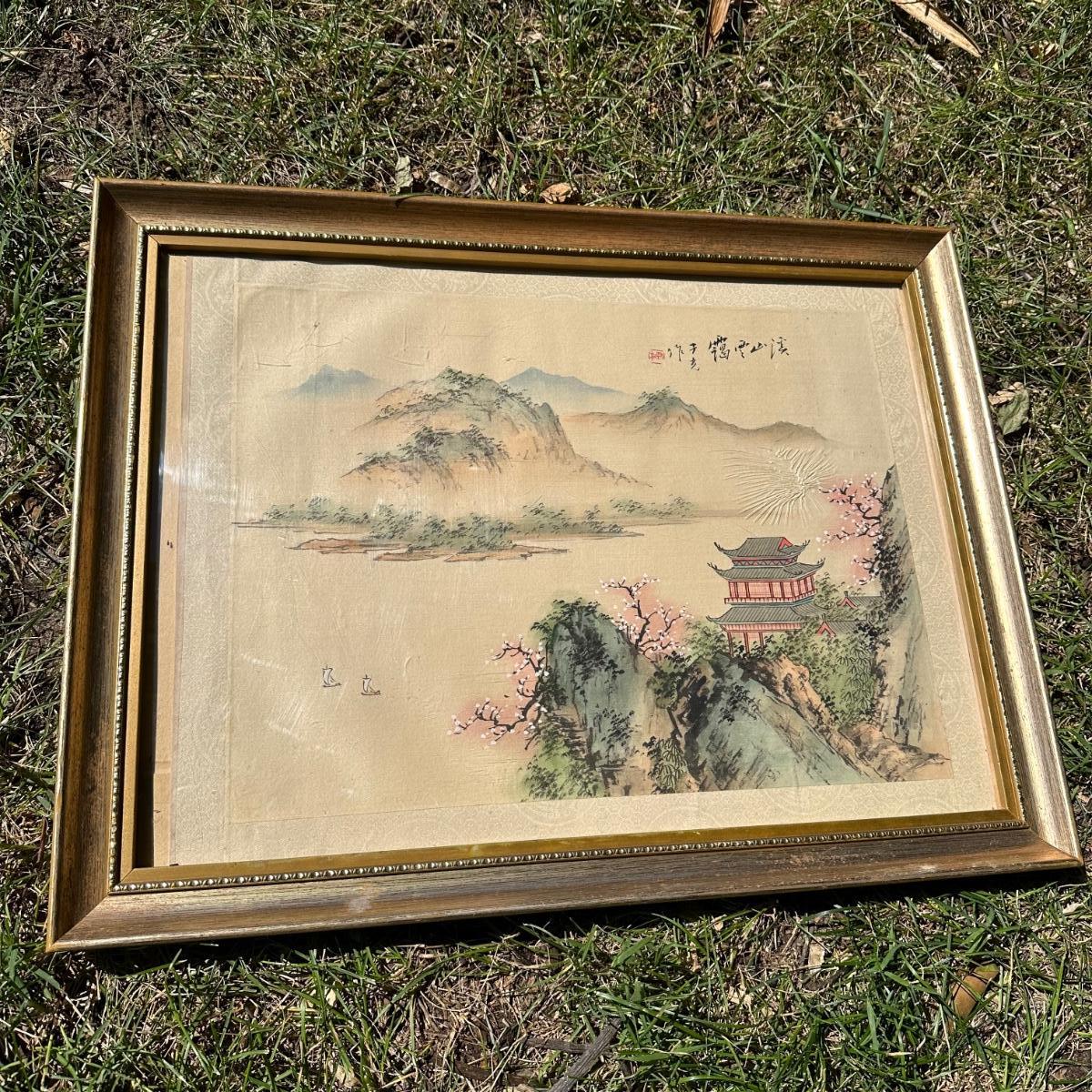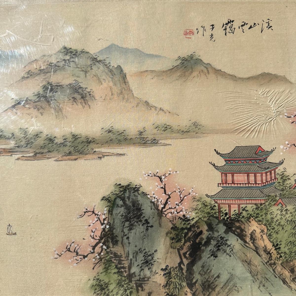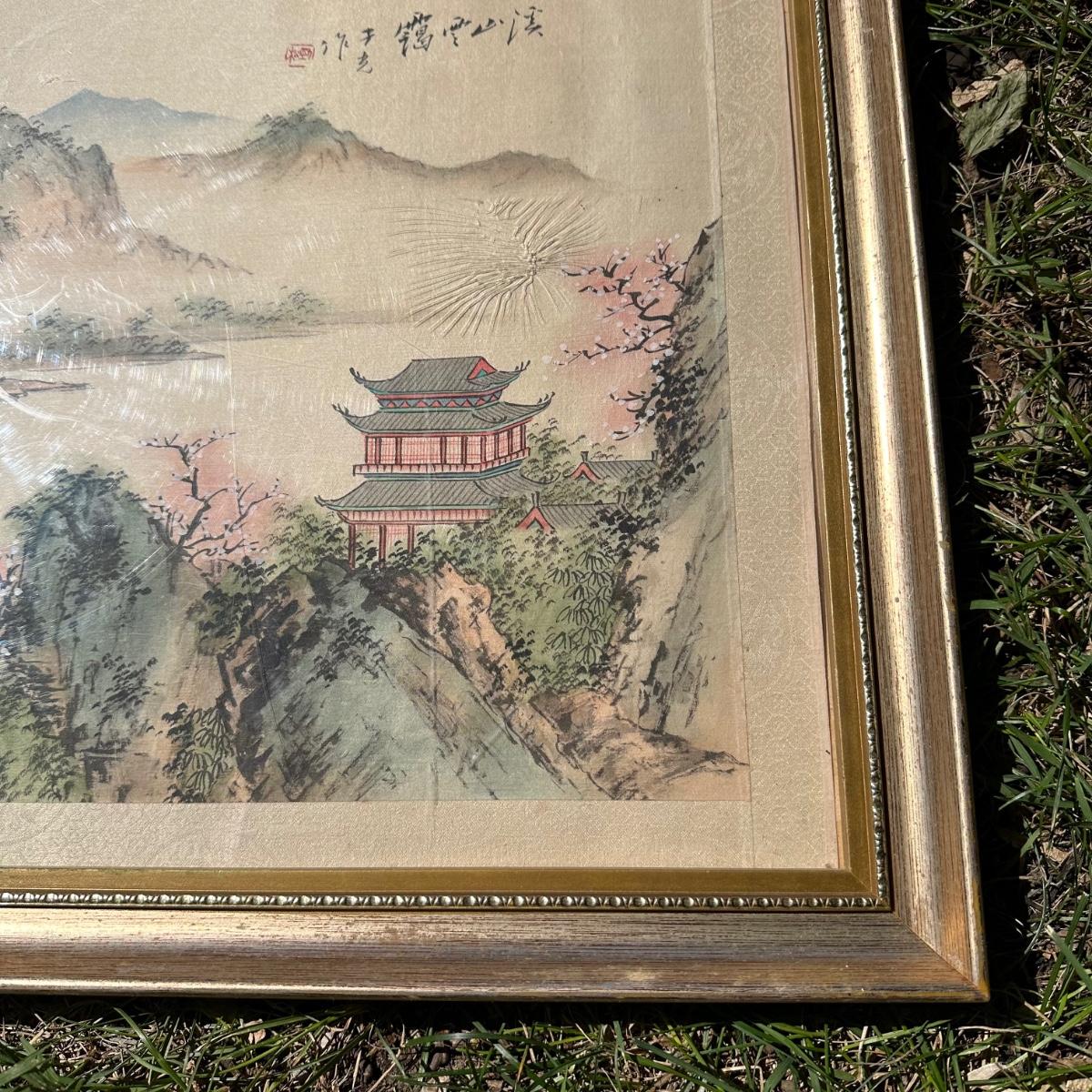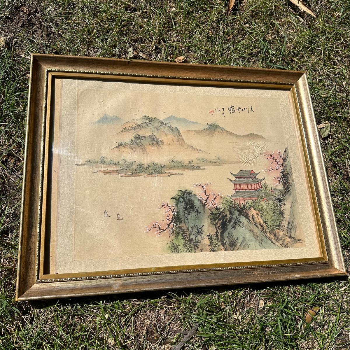 LOT 19S: Painted Asian Landscape on Framed Silk
