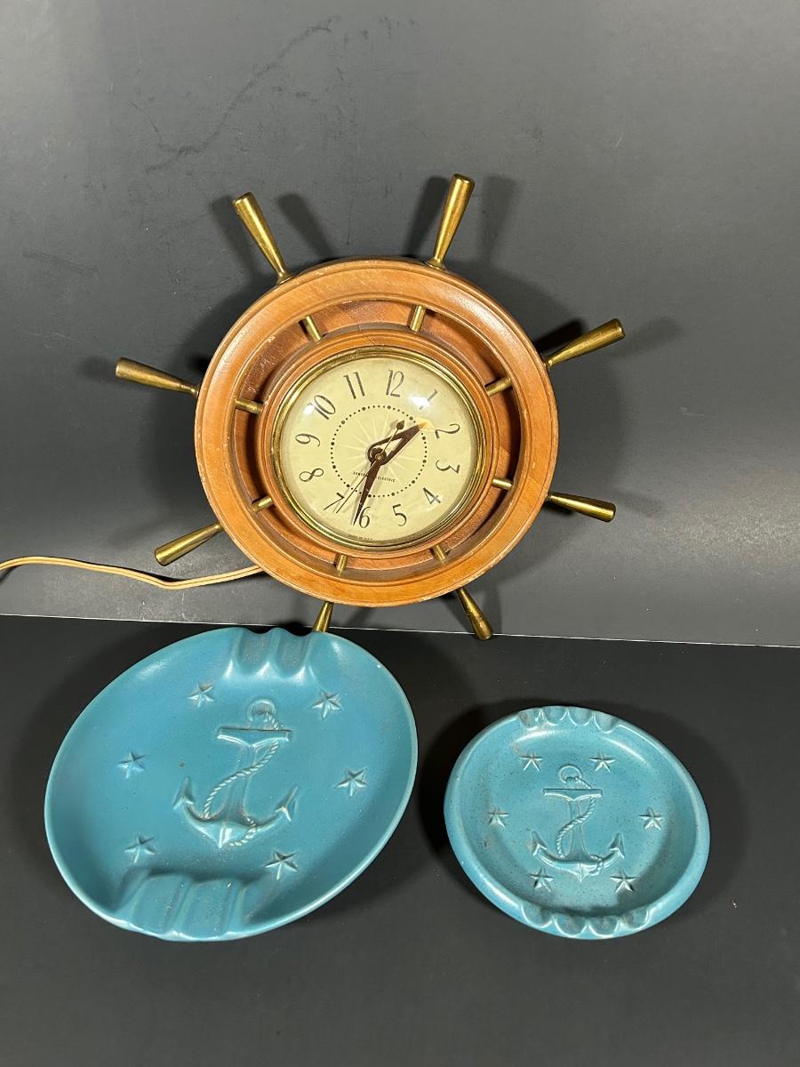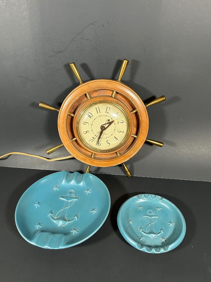LOT 35S: Nautical Ashtrays & Ship Wheel Electric Clock