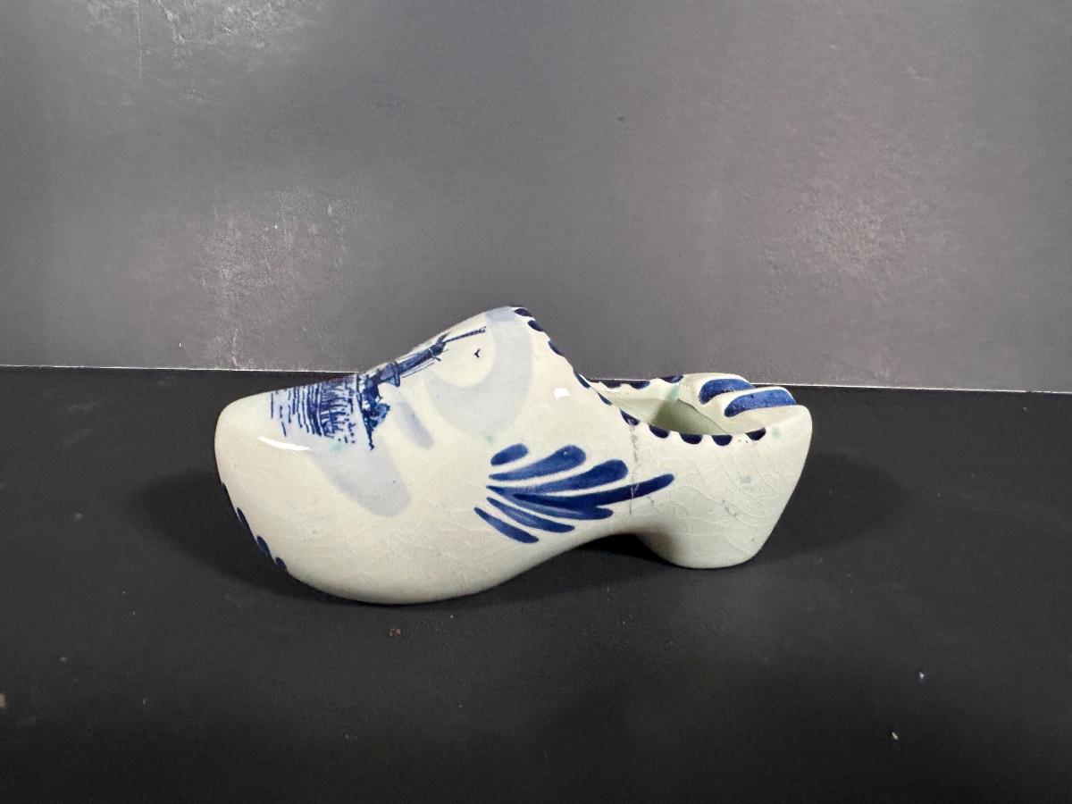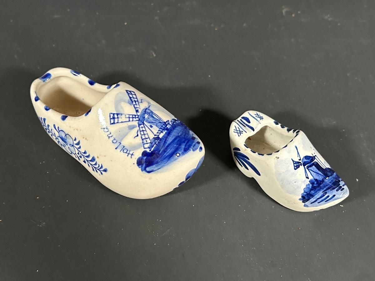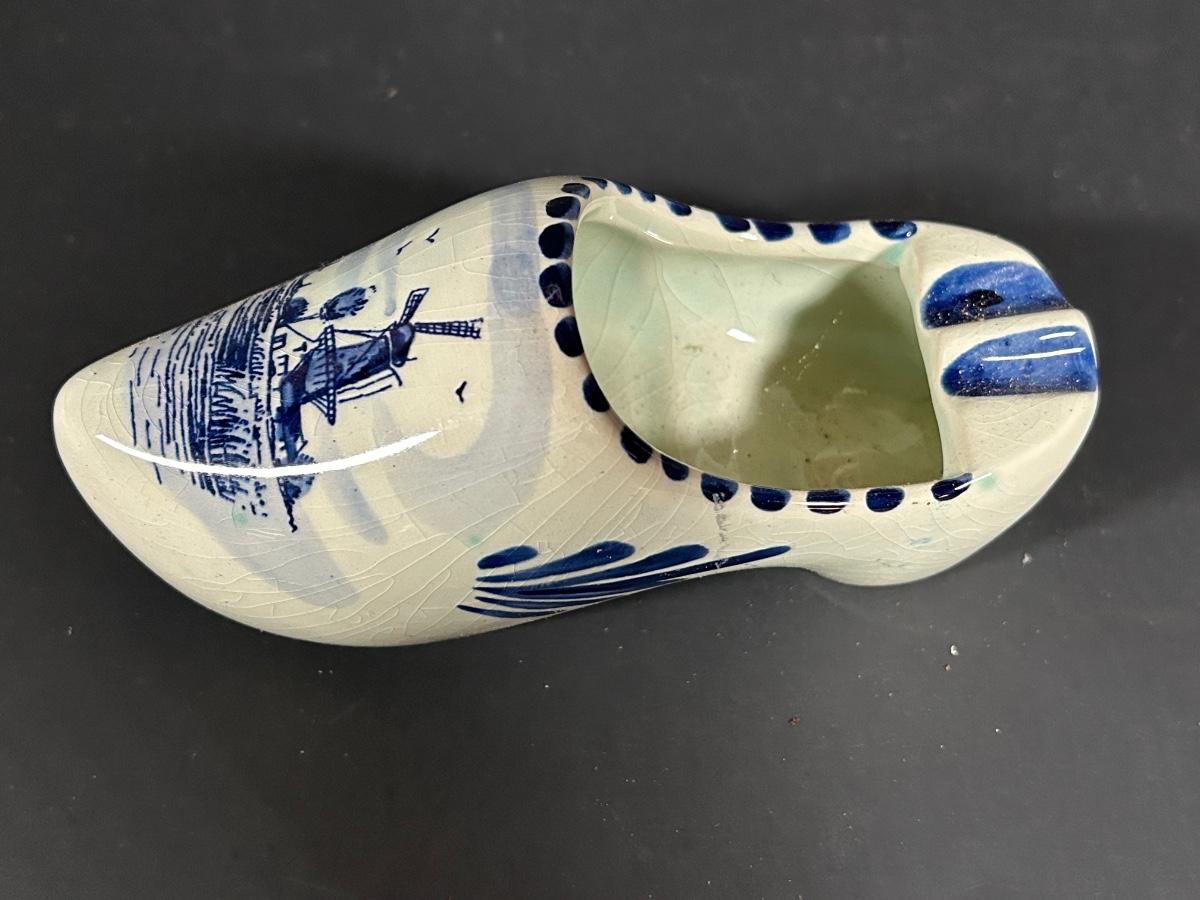 LOT 36 S: Delpts Blue Windwill Ashtray, Blue Windmill Porcelain, Lamp, and Shoes, and Other Vintage Dutch Themed Decor