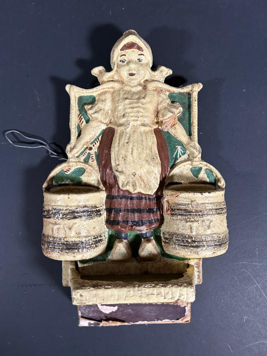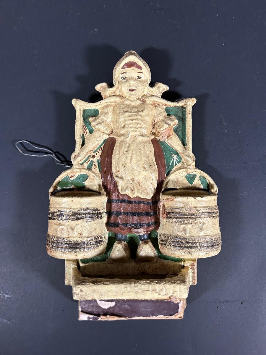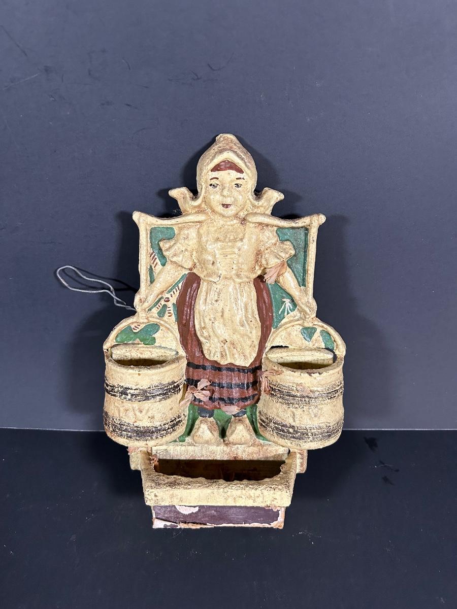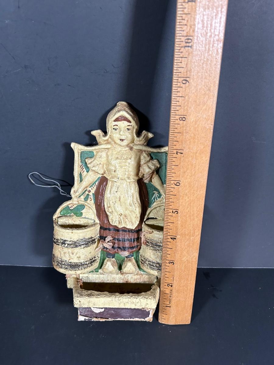 LOT 38S: Vintage Cast Iron Dutch Girl Wall Sconce / Match Holder