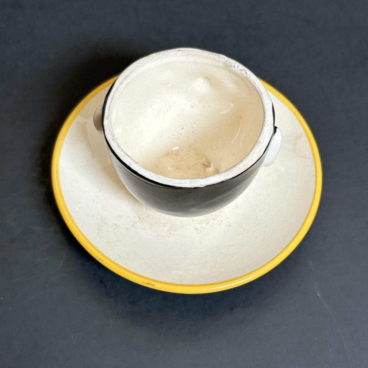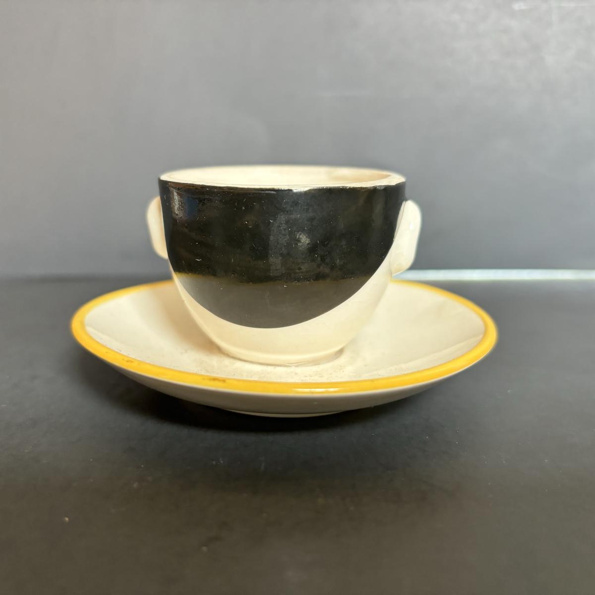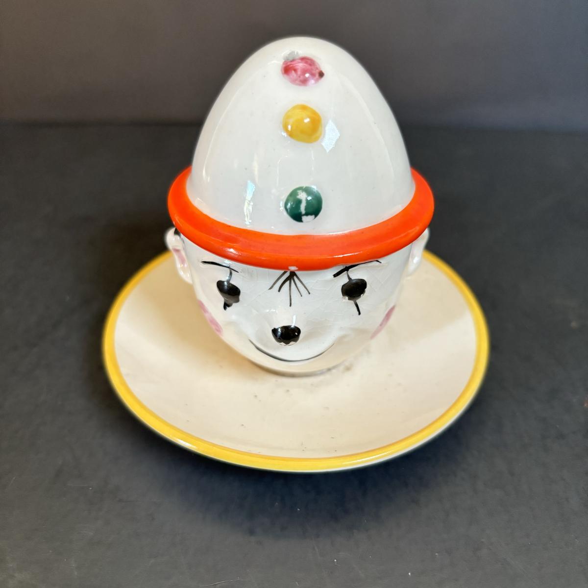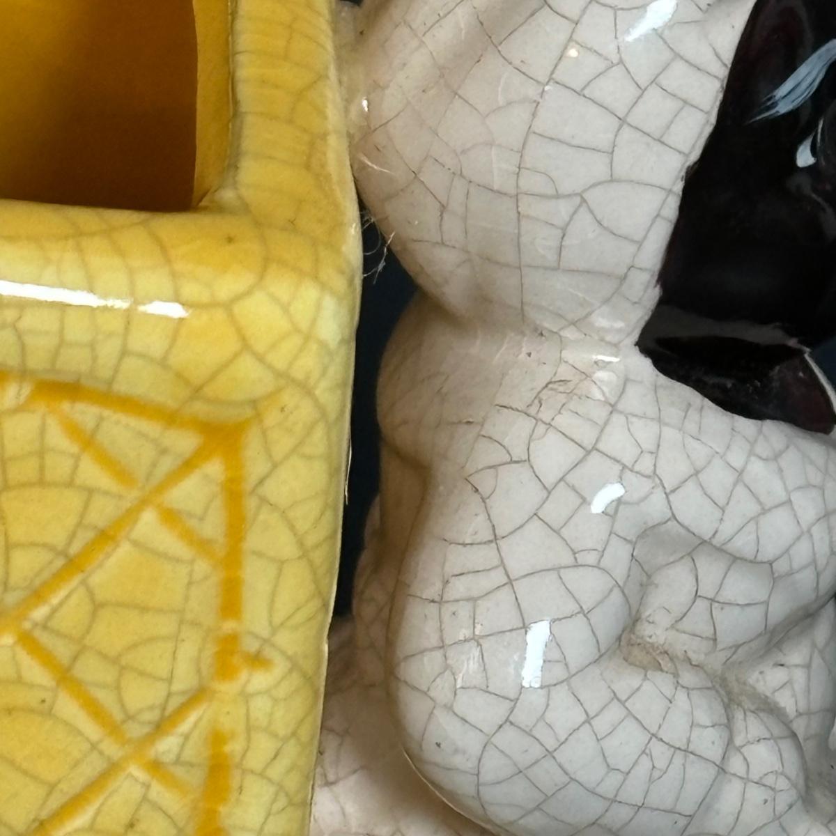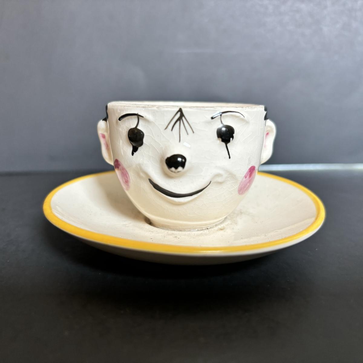 LOT 55: Vintage Black Americana Collection - McCoy Mammy Match Holder, Cast Iron Uncle Moses Hook and Stacking Clown Cup, Saucer and Shaker Lid Made in Japan