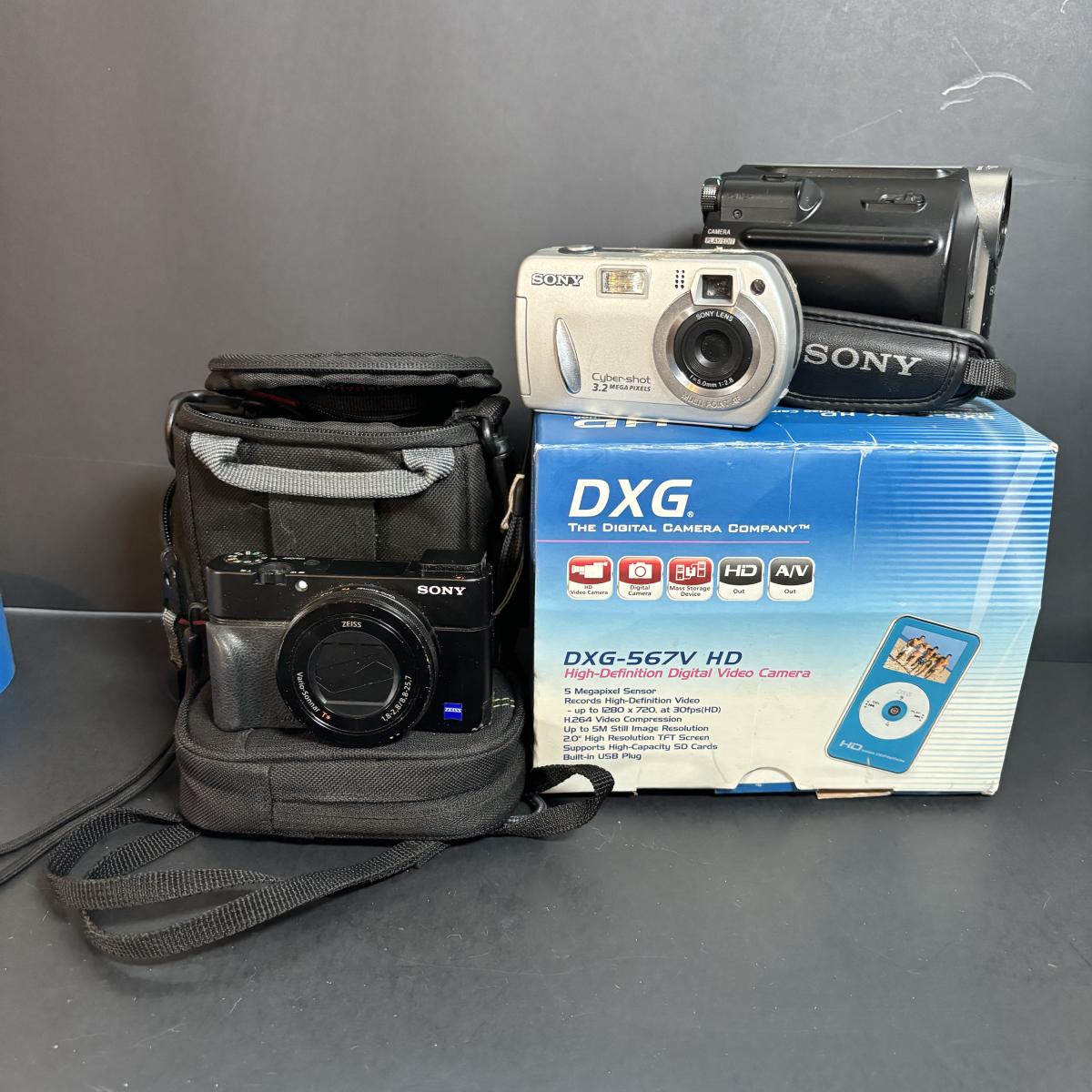 LOT 61: Collection of Sony and Other Digital Cameras and Video Recorders Including Sony Handycam Recorder, Sony Cyber-Shot, DXG HD Recorder and More
