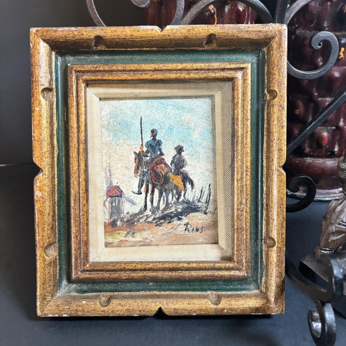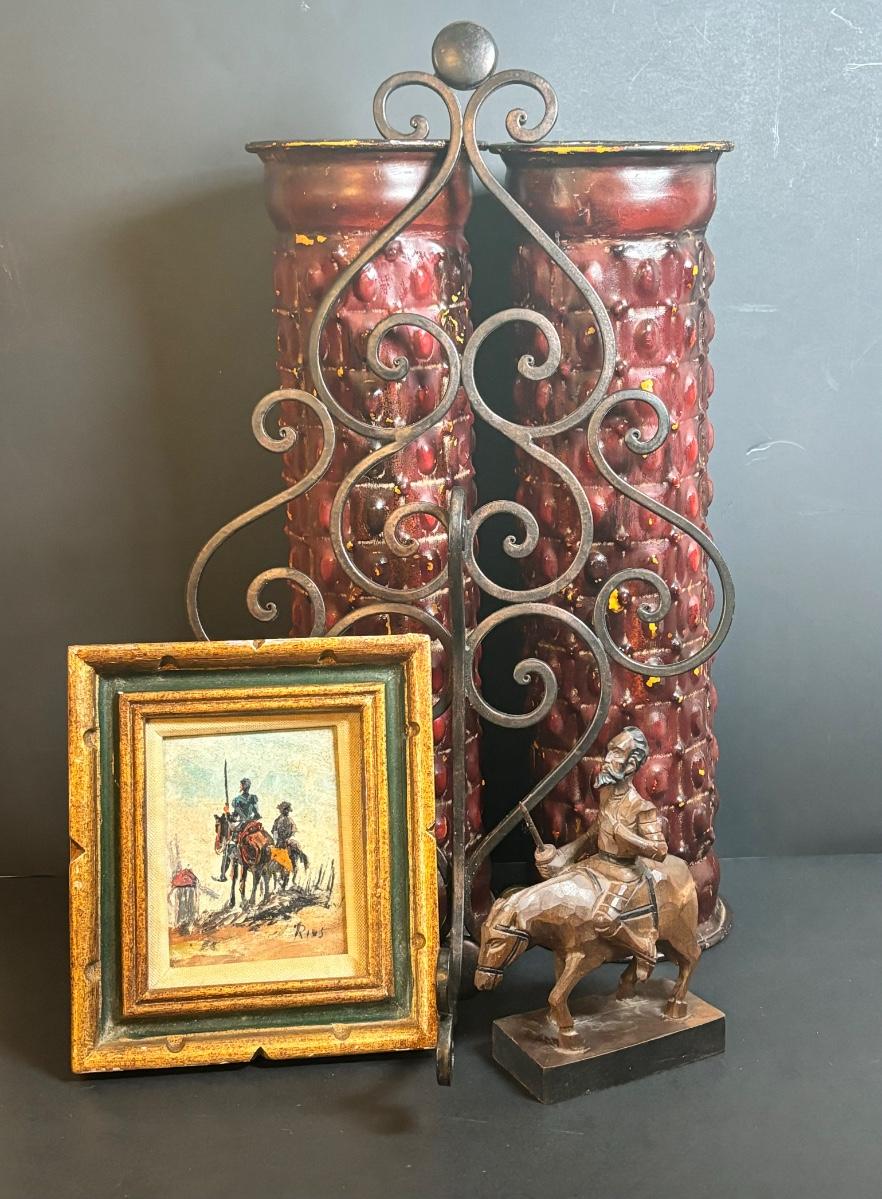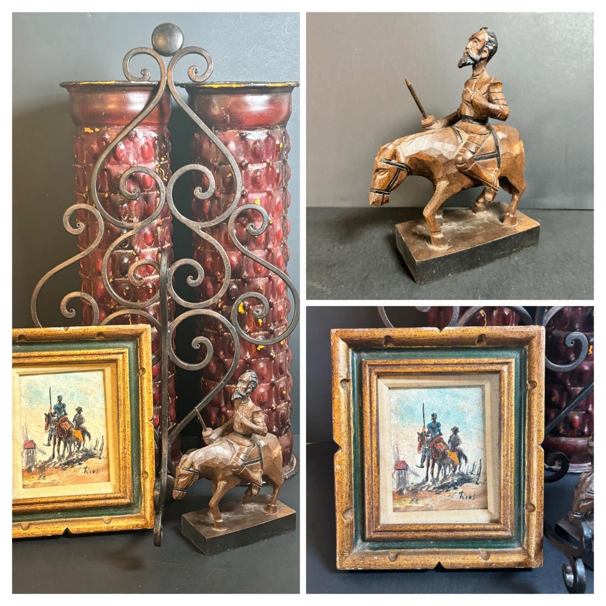 LOT 69: Vintage Framed Don Quixote Print and Ouro Artesania Carved Wooden Statue and More