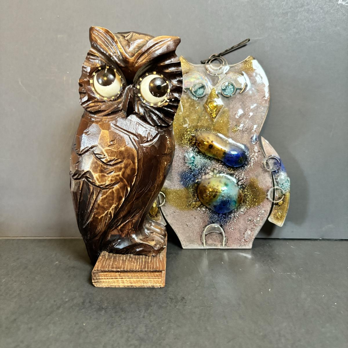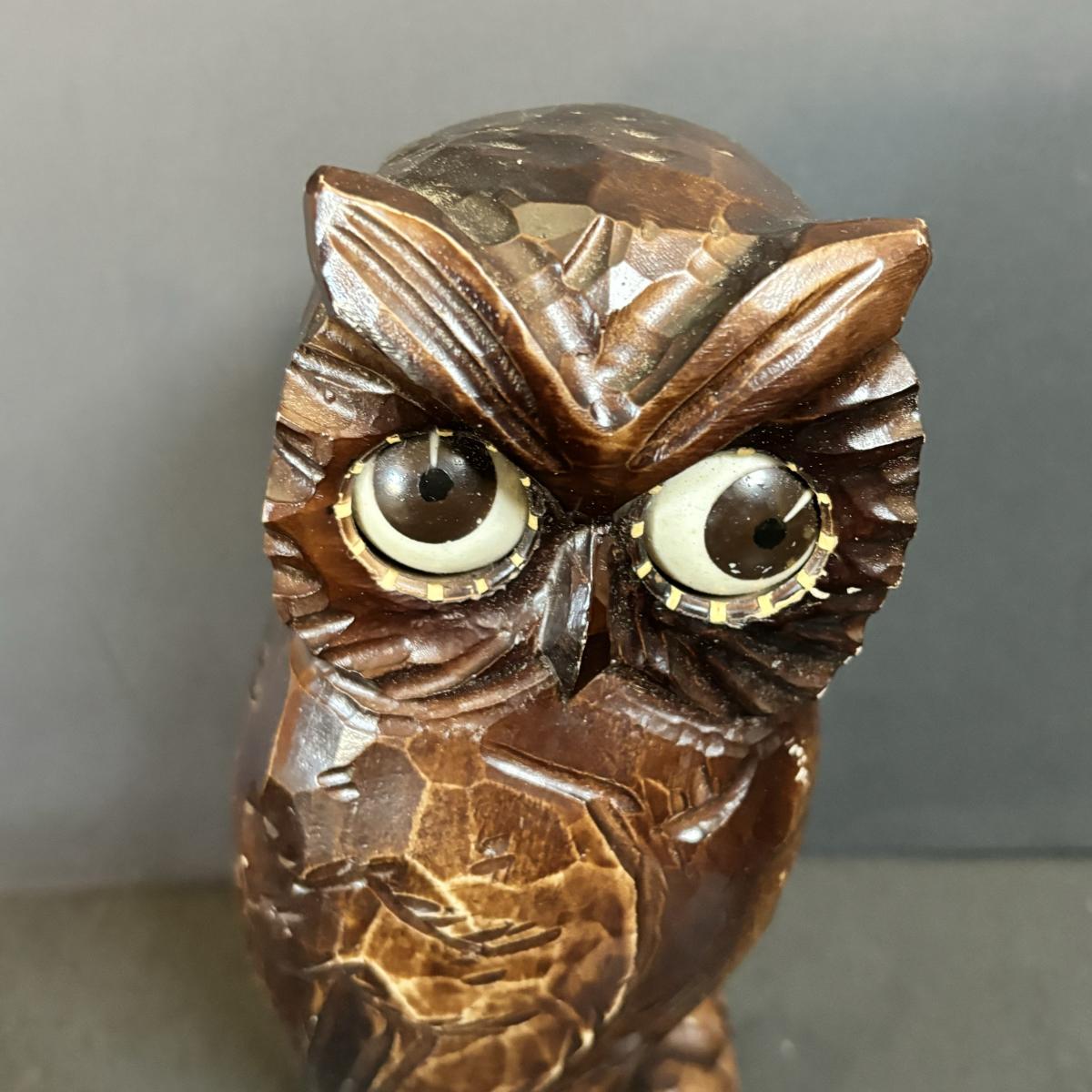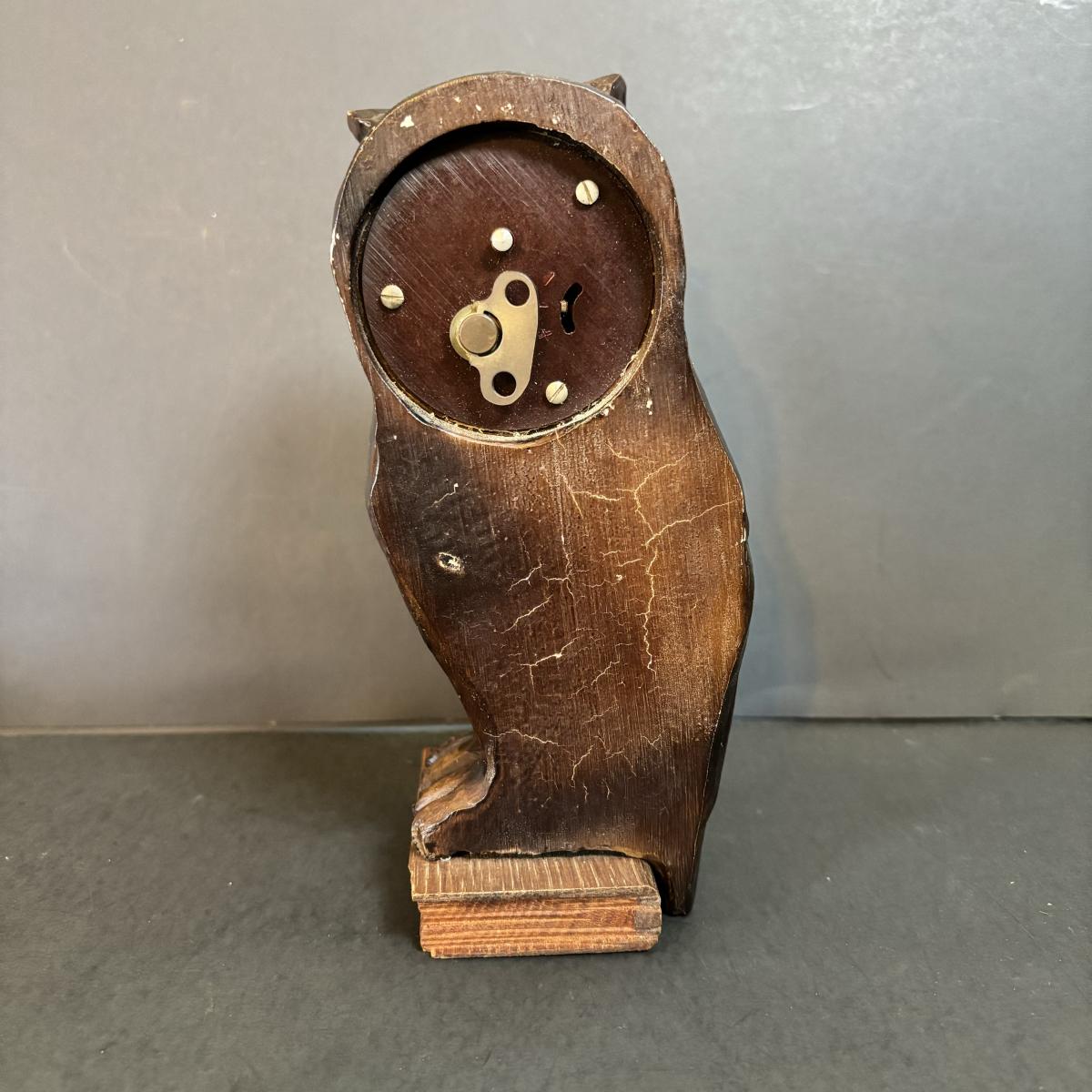 LOT 71: Antique/Vintage German Oswald Style Owl Google Eye Hand Carved Wooden Clock and Owl Wall Art