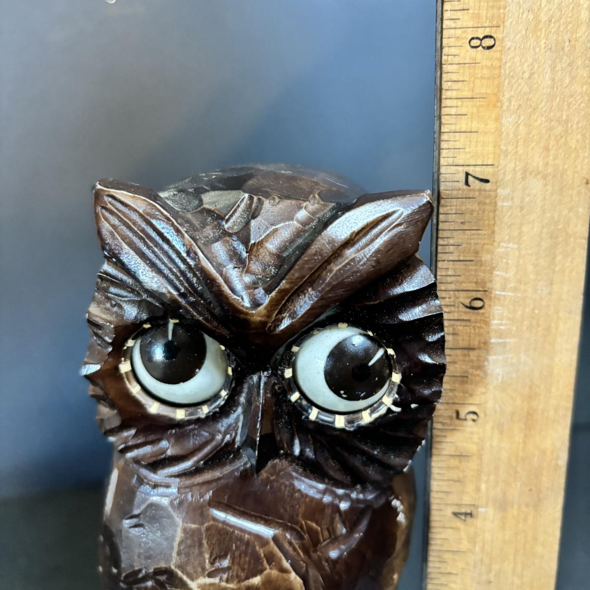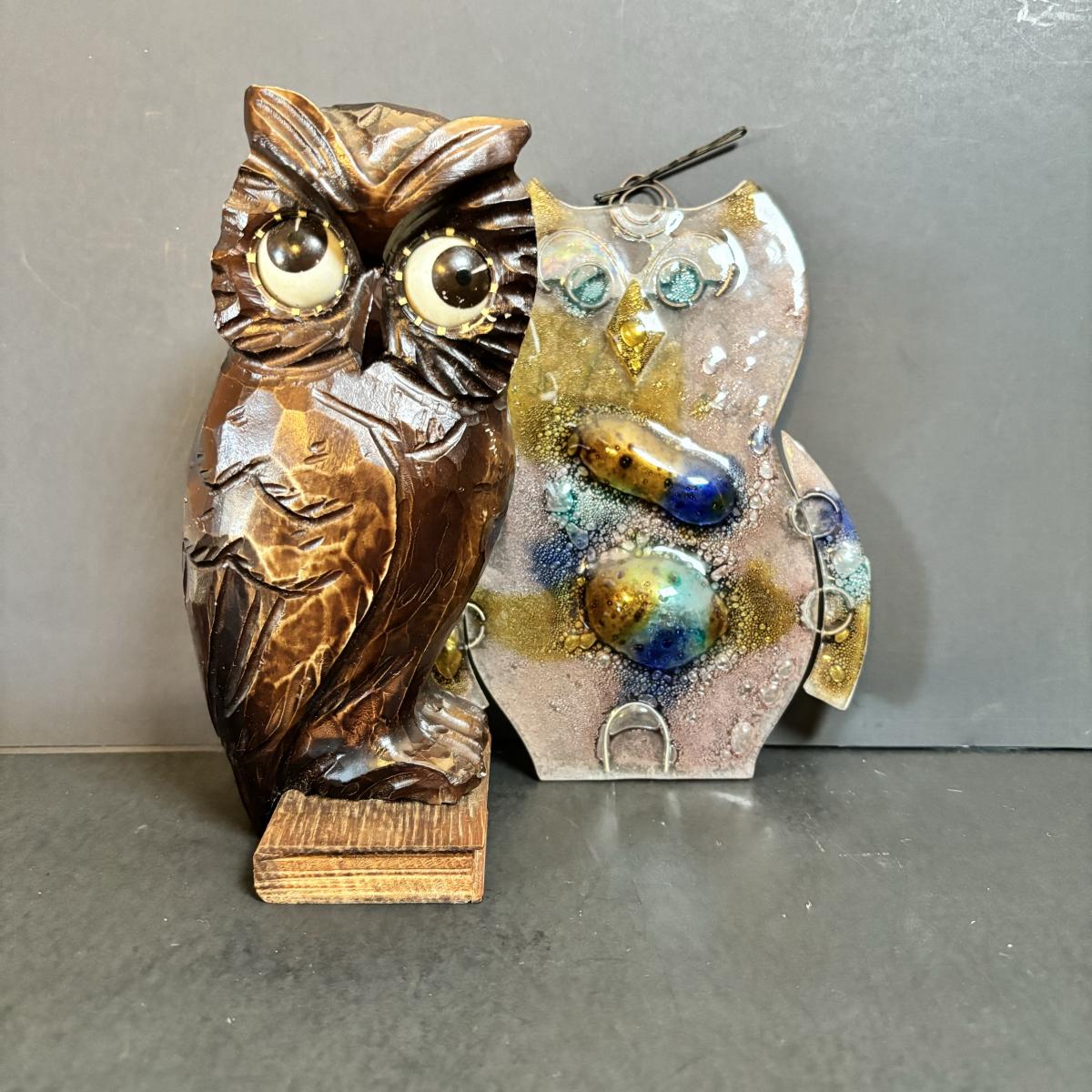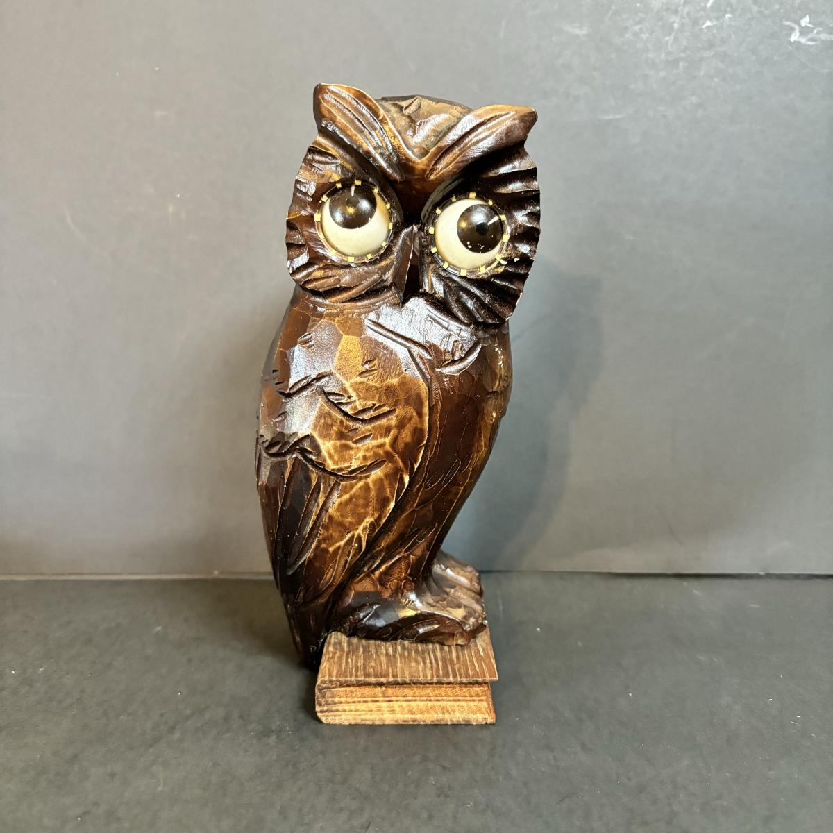 LOT 71: Antique/Vintage German Oswald Style Owl Google Eye Hand Carved Wooden Clock and Owl Wall Art